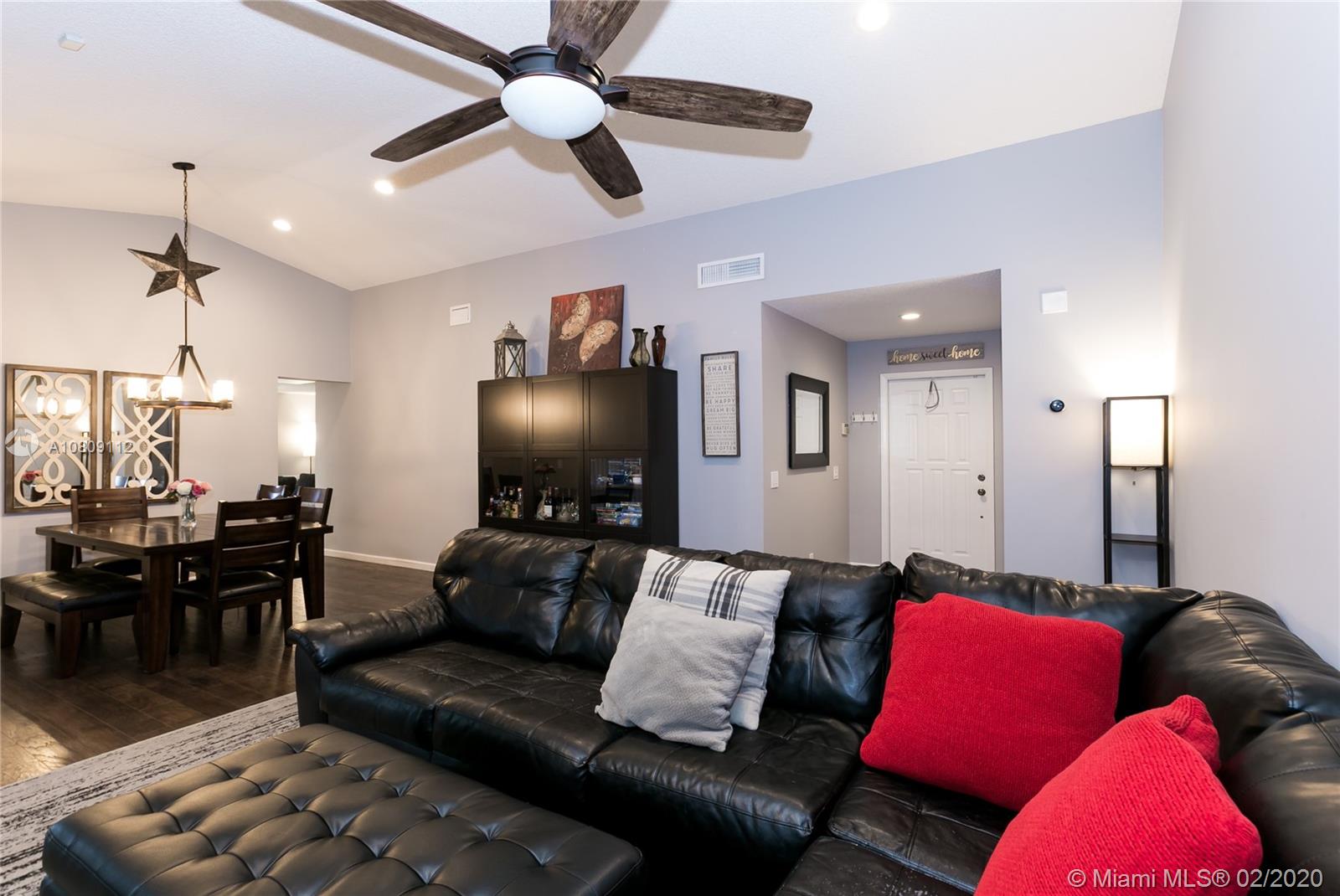 Charming 3 bedroom 2 bath one story home, set on a cul de sac street, has a spacious 500 sq ft covered and screened patio perfect for enhancing your outdoor Florida living experience. The recently updated kitchen with white shaker cabinets, granite counter tops, farmhouse sink and stainless steel appliances features a center island which overlooks the family room. Additional features include newer wood flooring throughout the house, updated fixtures, vaulted ceilings and split bedroom plan. Hot tub and fenced side yard complete the outside. Roof 2013. Association fee includes lawn maintenance and sprinkler irrigation. Steps to community pool, elementary school and shopping.