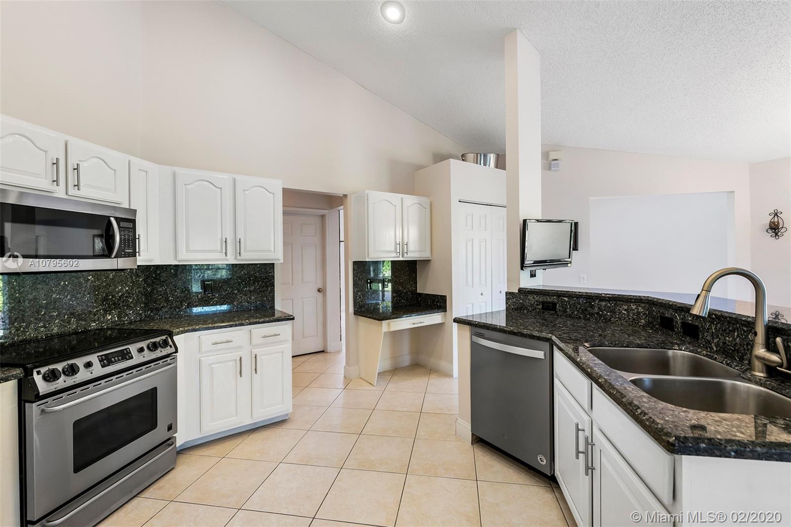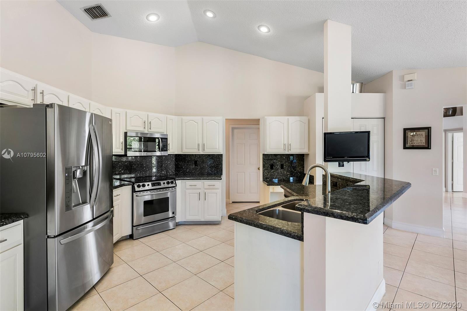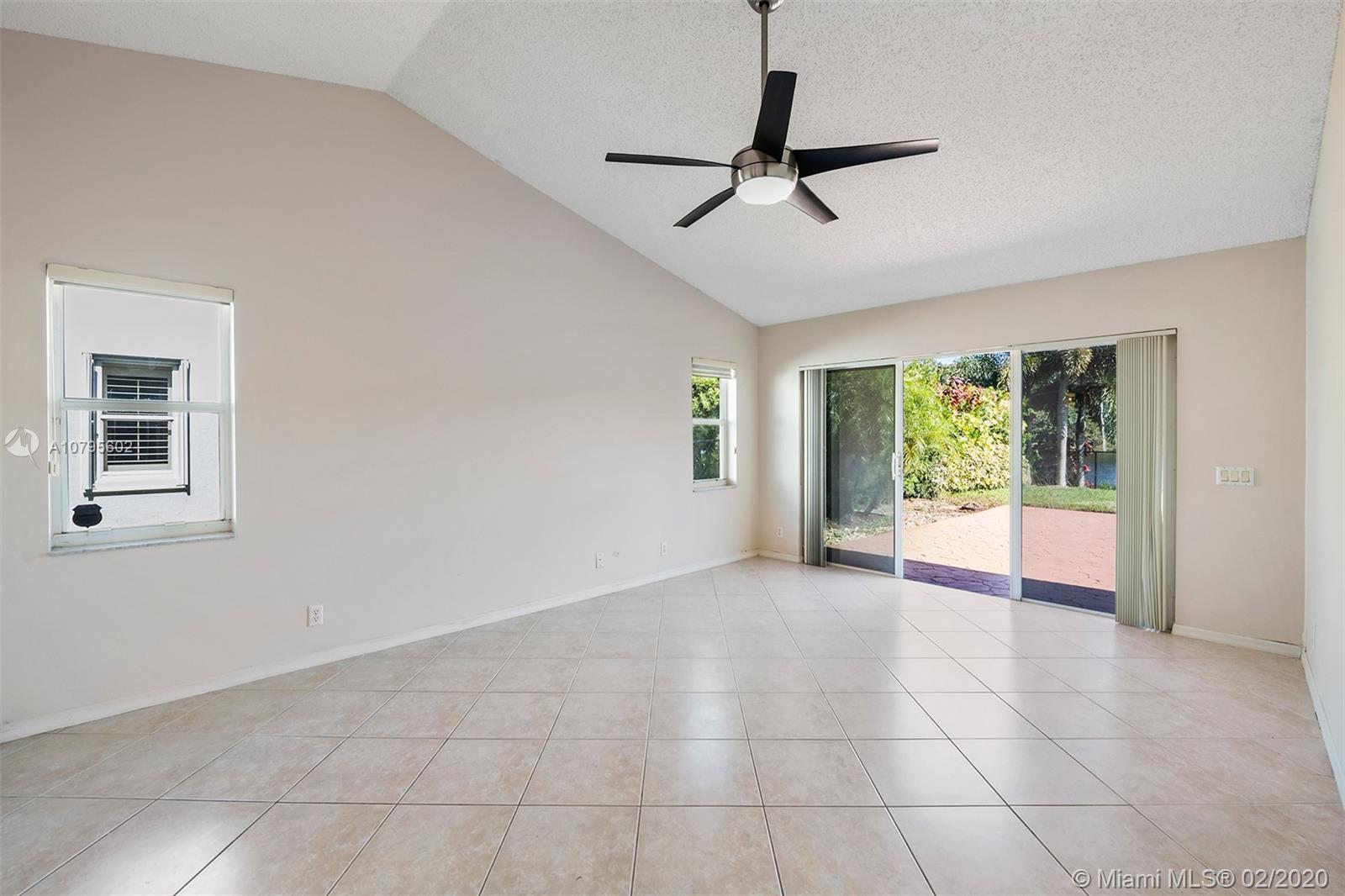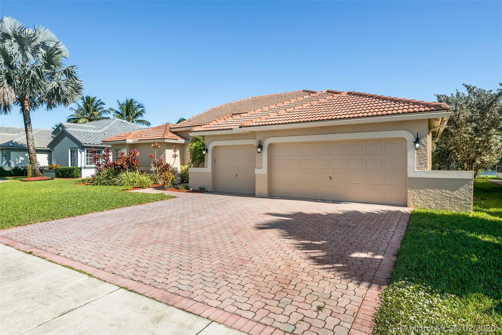 Spacious waterfront home in The Ridge on Nob Hill features 4BR (triple-split), 3BA, 3 car-garage, with tranquil and water and preserve views. Open-style floor plan w/ lots of natural lighting, formal living & dining areas, architectural niches, volume ceilings, upgraded kitchen w/ granite, stainless steel appliances, breakfast bar and area, open to Family Room. Master suite features 2 walk-in closets w/ built-ins, vaulted ceiling, sliding door access to private patio area, and an on-suite with spa-tub, dual sinks, and separate shower. Tile throughout, hurricane shutters, impact Cabana Bathroom door, fully fenced yard, community pool, walking trails, near Tree Tops Park, Westridge Open Space Preserve, Pine Island Ridge Natural Area, major highways and great schools.