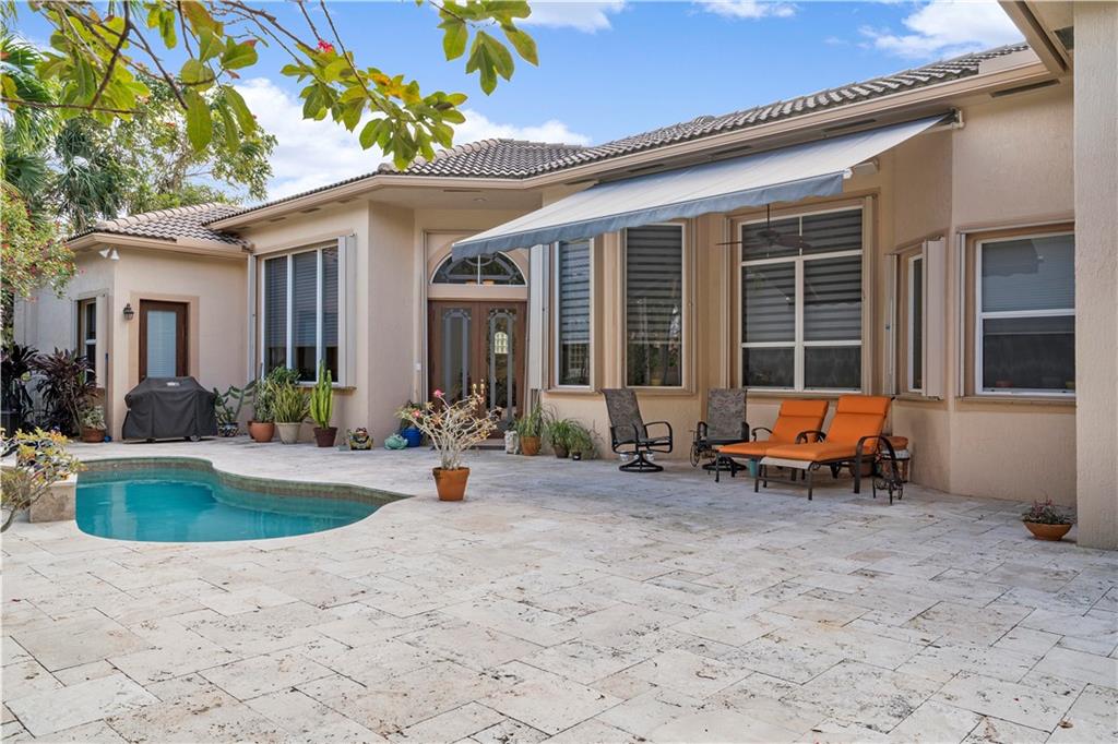 PRICED REDUCED. BEST BUY IN HERON BAY UNDER $475,000. ONE STORY 4 BEDROOM 3 BATH FULLY UPDATED COURTYARD HOME ON ONE OF THE BEST INTERIOR LOTS. THE OPEN FLOOR PLAN IS WRAPPED AROUND A LUSHLY LANDSCAPED COURTYARD FOR COMPLETE PRIVACY. FULL WHOLE HOUSE ACCORDION SHUTTERS OFFERS. NO CARPET! WOOD FLOORS IN ALL BEDROOMS. MOTORIZED AWNING OUTSIDE TO PROVIDE SHADE. FAMILY ROOM HAS SONOS HOME THEATRE SYSTEM. UPGRADED KITCHEN CABINETS AND GRANITE COUNTERS, NEW STAINLESS STEEL APPLIANCES AND SEPARATE BREAKFAST AREA. BRAND NEW A/C/ AND WATER HEATER. NEWER TRAVERTINE PAVERS IN COURTYARD. ALARM SYSTEM. WATER TREATMENT SYSTEM. ALL BEDROOMS HAVE BUILT INS. MASTER BEDROOM HAS BUILT INS IN CLOSET. ALL RESORT AMENITIES OF HERON BAY & "A" SCHOOLS . HOA INCLUDES LAWN, EXT PAINTING & MORE.