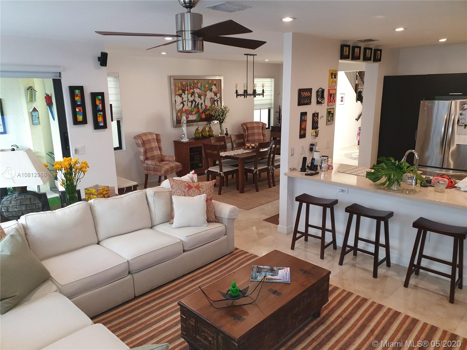 Beautiful and ready to move in 3 bedroom, 2 ½ bathrooms + den house, to include a wide variety of upgrades for your enjoyment. Upgrades include redesigned visitor bathroom, marble floors, recessed lights, stainless steel appliances, quartz top counters, wine cooler, modern blinds, wood stairs and handrails, wood floors on second floor, upgraded closets with closet system, impact windows, built-in barbecue, and an electric awning and paved floor in the terrace. Garage with cabinets and upgraded epoxy floor. Common areas include a spectacular clubhouse with pool, gym, sauna, and game room. Vintage Place is a small gated community that also provides safety with security patrols located in and excellent neighborhood that is close to shops, highways and A + schools. MOTIVATED SELLER!!!