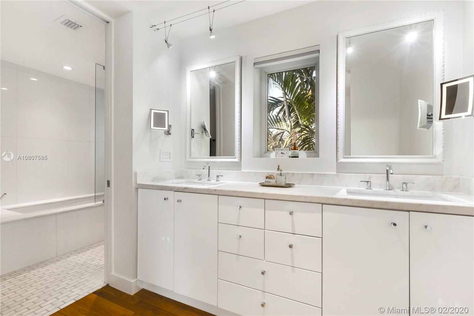 Beautifully renovated 1932 Mediterranean 2 story home in Miami Shores. Over-sized lot with mature landscaping, large salt water heated pool, patio, deck & carport. Complete smart home automation including thermostats, locks, irrigation, alarm, cameras, smoke detectors, and lighting. The main house has 3 bedrooms and 3 full baths including the master en-suite with 2 walk-in closets and a terrace. Large open living room with original working fireplace and wood beamed ceiling. Updated eat-in kitchen with great sight lines to the attached family room. Formal entryway with original staircase. The guest cottage has 1 bedroom, living space, kitchenette, full bath, large laundry room, and a workshop. Upgrades to this home include impact windows and doors, SWAT mosquito system, & outdoor lighting.