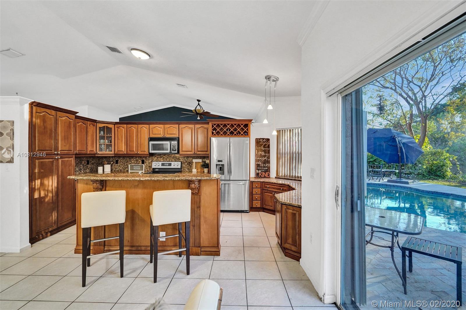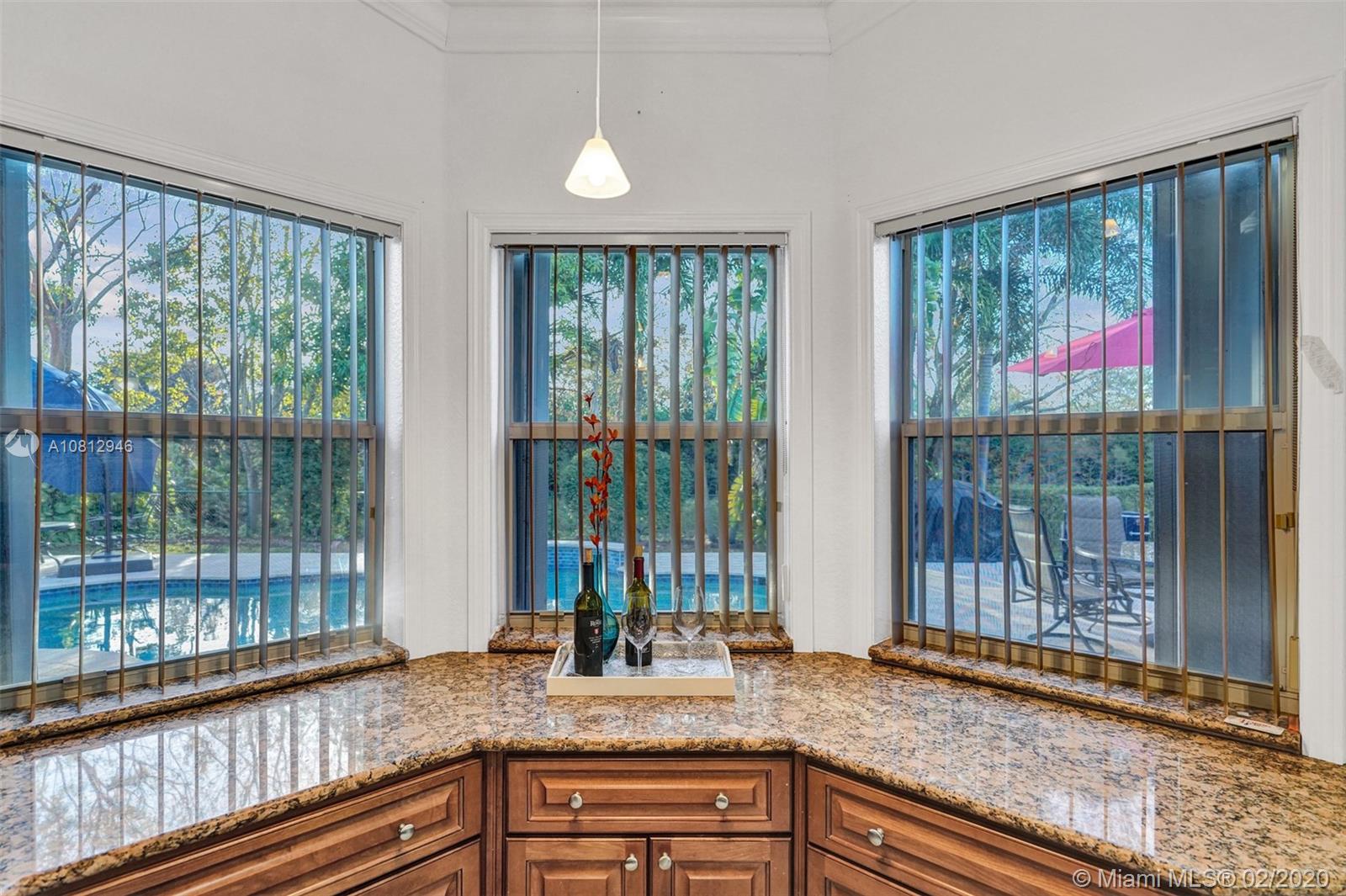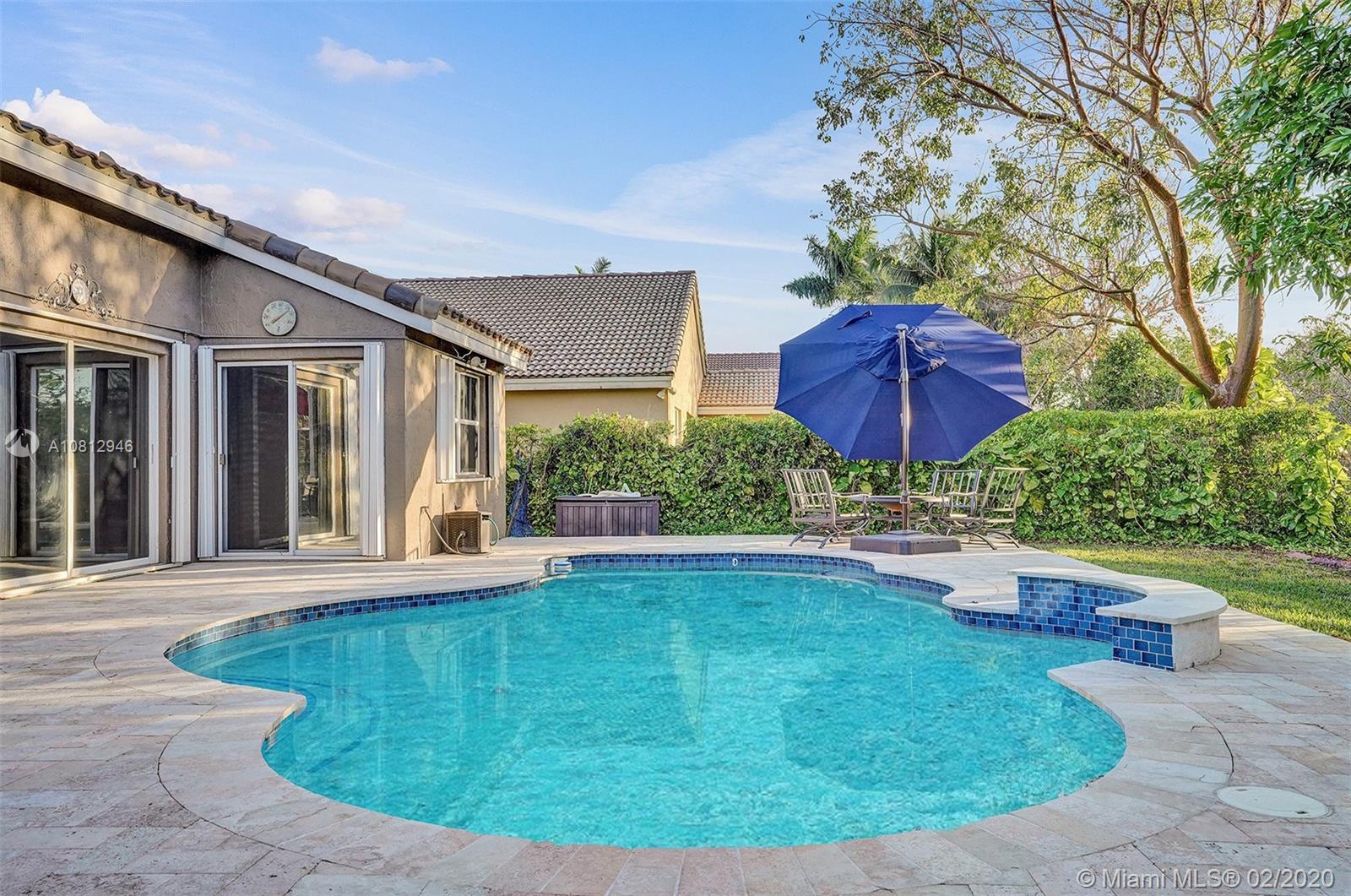 ROOF REPLACED in 2018. Beautiful pool home on a preserve (no neighbors in back) in elegant Alhambra's gated community. Split floor plan with expanded, upgraded kitchen and updated bathrooms. Neutral tile in common areas and laminate flooring in bedrooms. Gorgeous travertine patio out back with large free-form pool and attractive pavers in the front. Spacious lot - almost 8000 sf. Accordion shutters. Hurricane-rated garage door. Newer washing machine. Newer dishwasher. Newer A/C ducts.