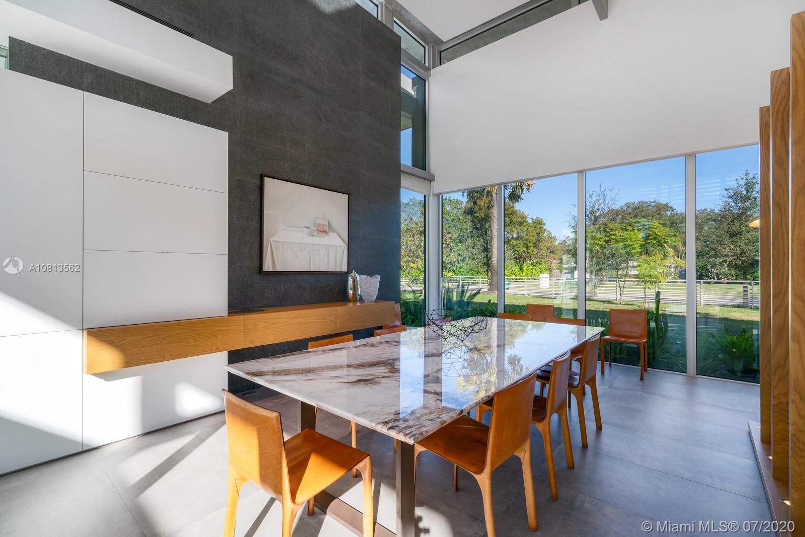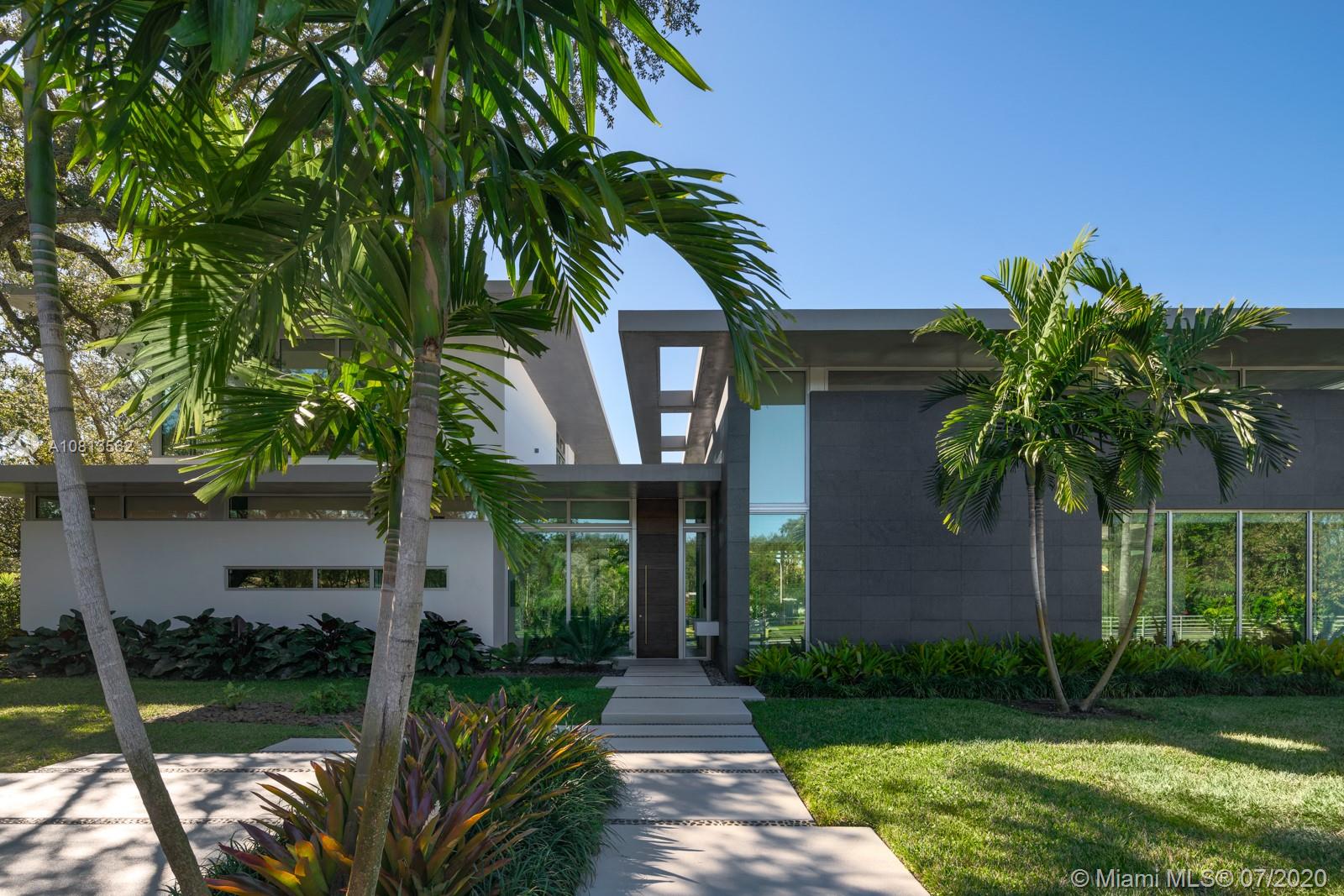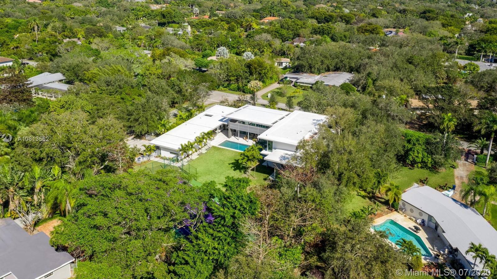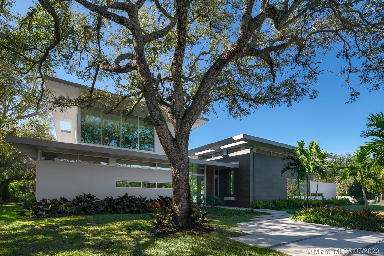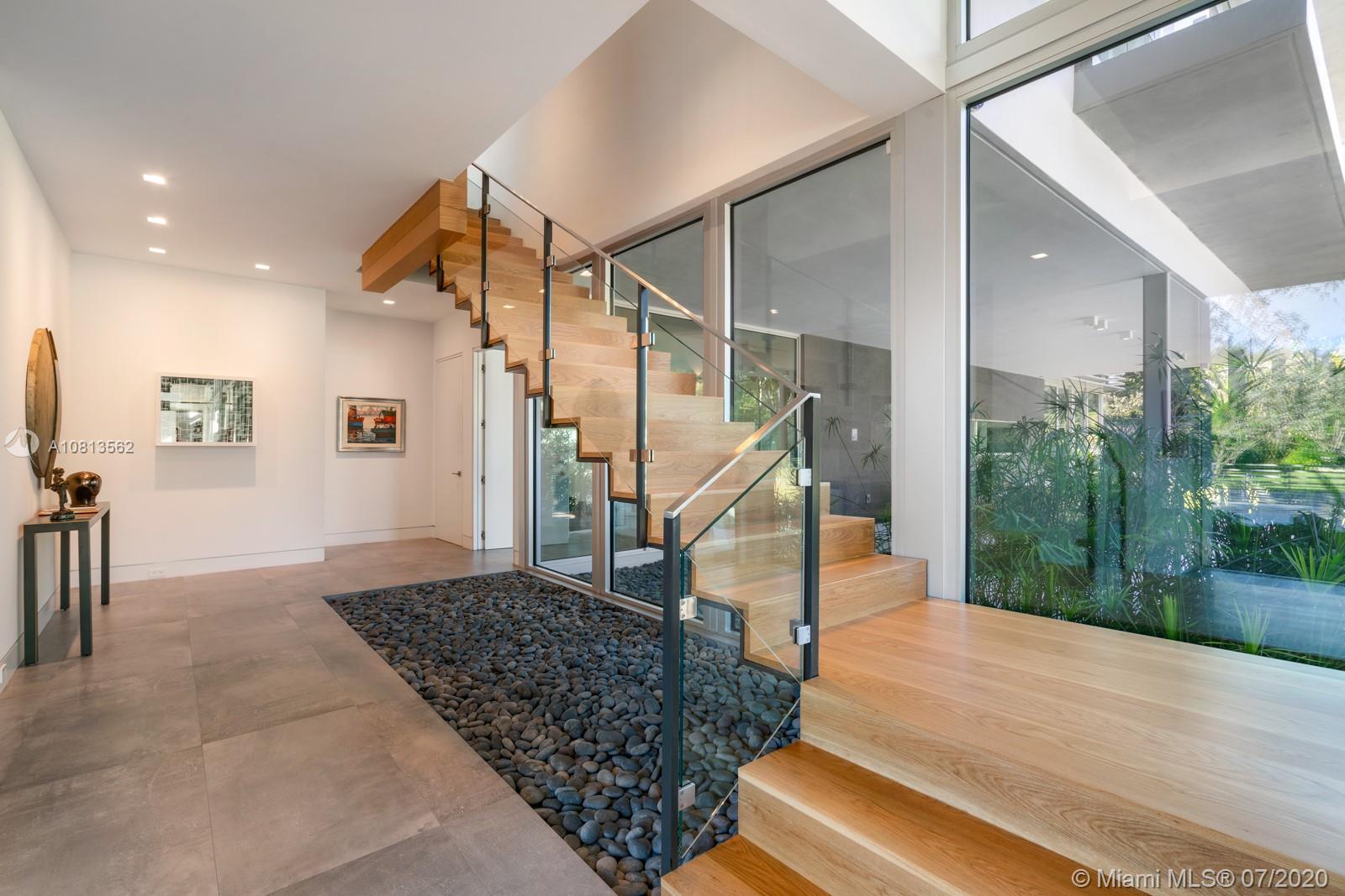 Modern and Mid-Century marvel of custom architecture and engineering, flawlessly executed. Designed by KZ Architecture, discover new wonders at every view: soaring ceilings, natural elements, glass framed views combine for a design that is anything but “white box.” Imagine yourself living in a work of art, enjoying your first floor master wing with, spa bath, private gated corner acre, reflection and heated pool and N/S tennis court. Home features poured in place cement roof with ceilings floating on beams, sculptural floating wood and glass staircase, LED lighting, and custom cabinetry. Great family/guest floor plan with upstairs loft and 3 suites. Staff room. Gym and office conv to bedroomms. More attached.