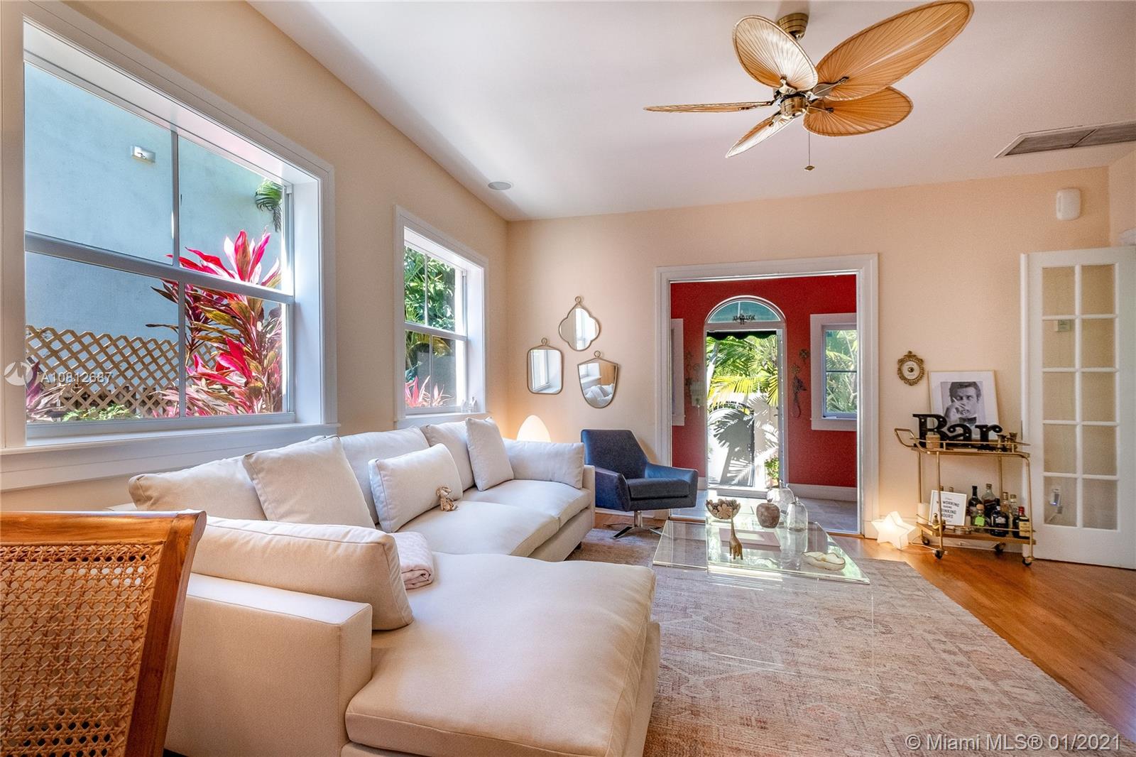 Sited on a prime corner lot in the highly desirable, close-in North Grove, this 1920s Spanish-style home has been completely updated & reimagined w/much of its original character retained. The expanded 3/2.5 boasts oak plank floors & 2,245 SF of delightful living space, including a light-filled dining/sunroom. The graciously scaled Master features an en suite bath & walk-in closet. Cook & entertain w/ease from the centrally placed kitchen w/bright white cabinets & gorgeous granite counters. Classic French doors open to the large pool & spacious stone patio. Impact windows/doors thruout; covered, gated parking and a brand new roof in 2020. A distinctive arched entry welcomes visitors to this gated tropical oasis located just 5 minutes from Brickell/Downtown. Picture-perfect SoFla living!