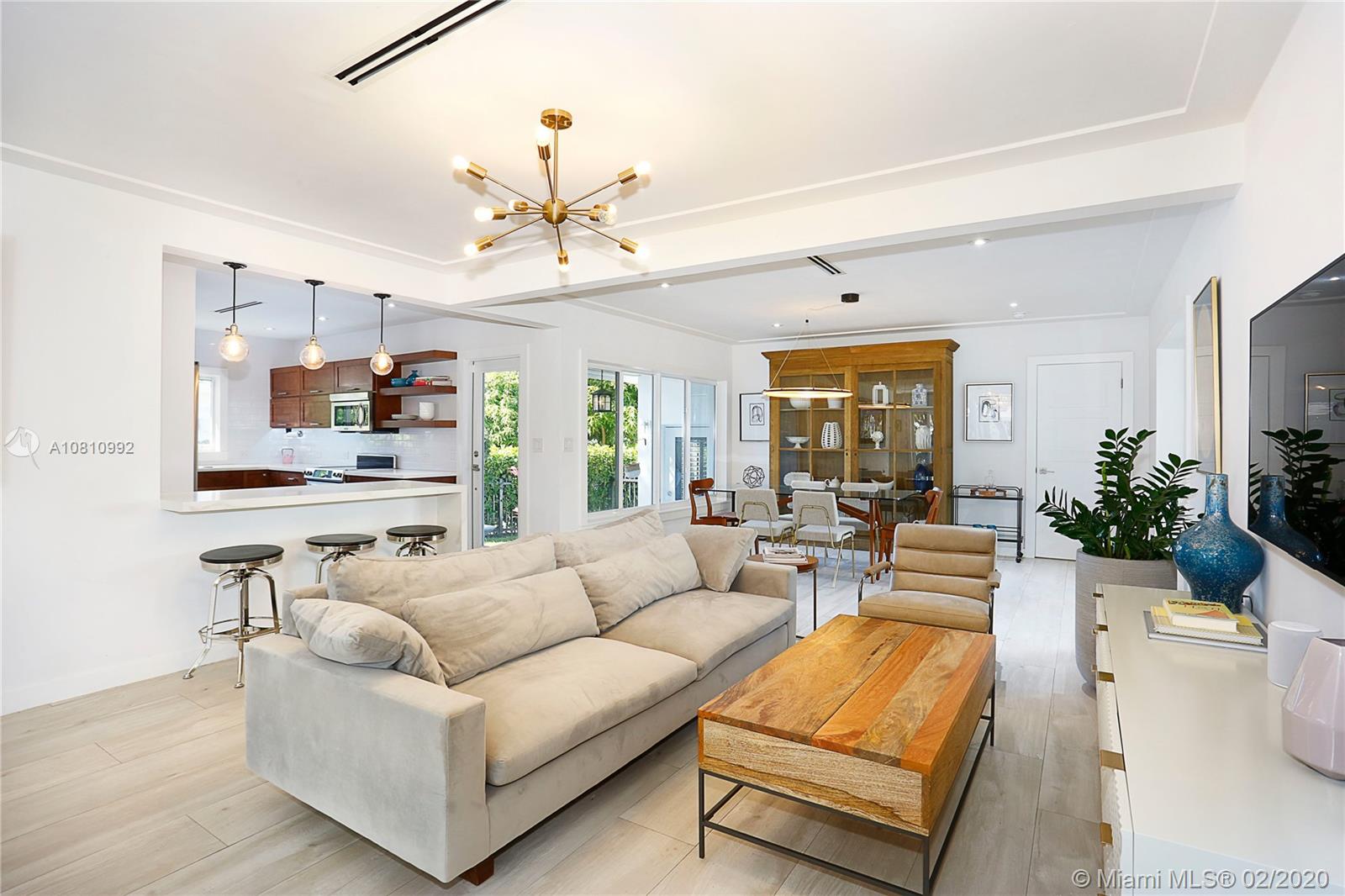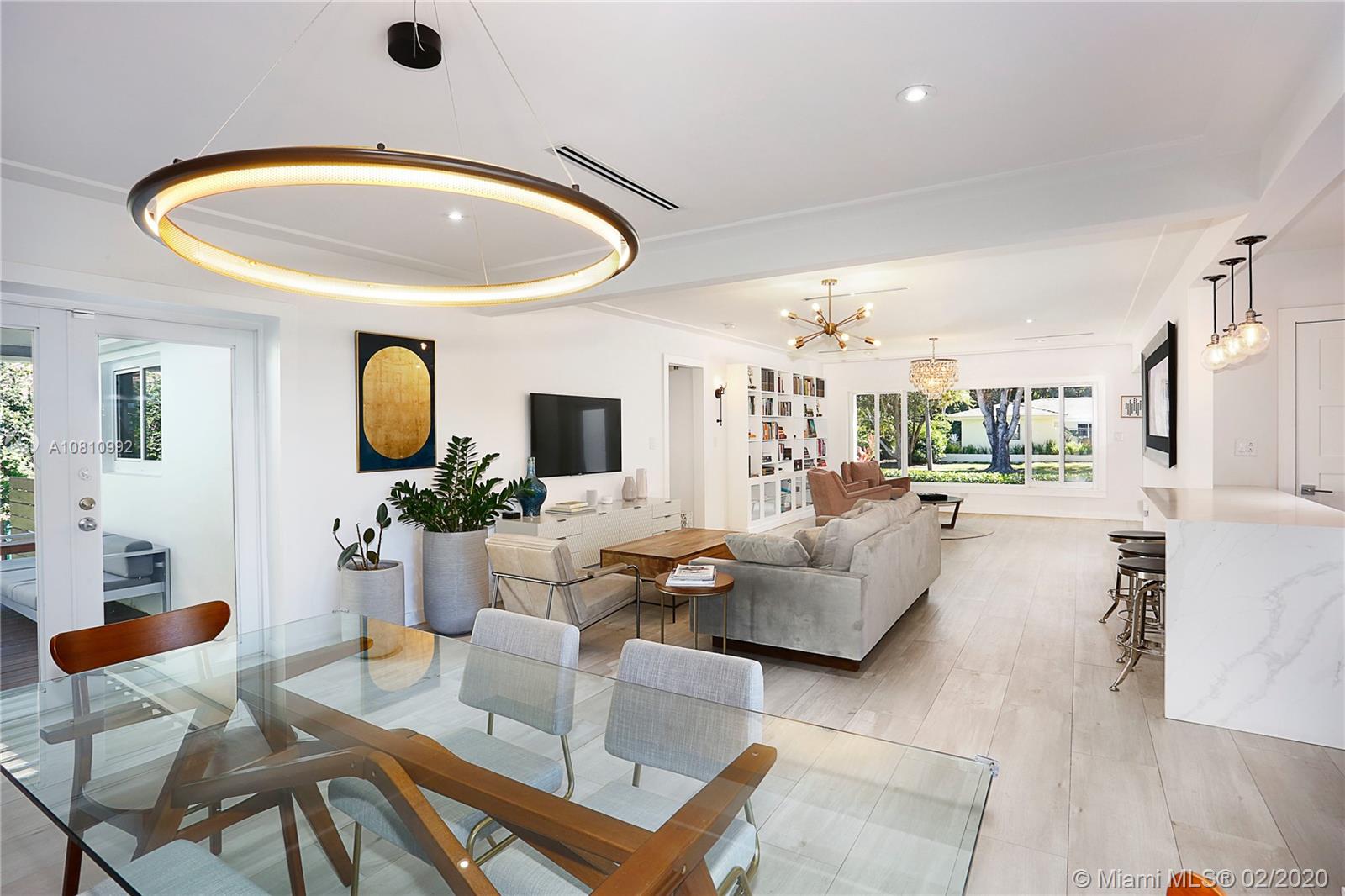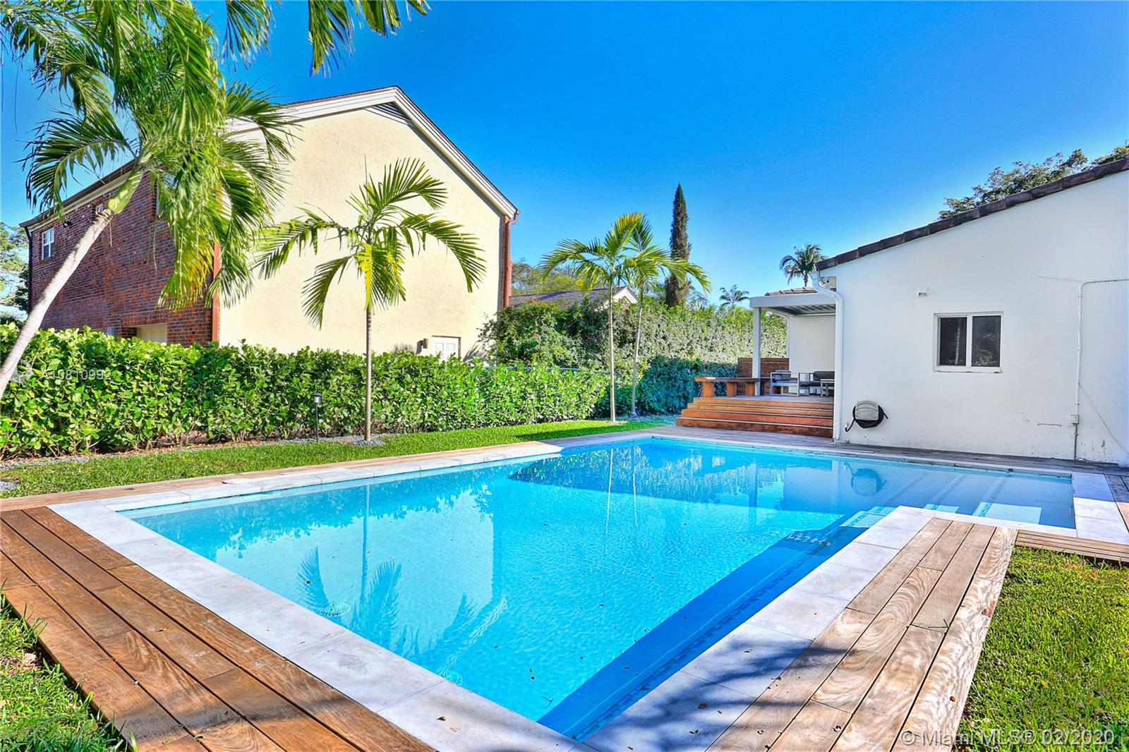 MASTERPIECE!!! Welcome to one of the most SPECTACULAR pool homes in Miami Shores! This exquisite MIMO 4 beds, 3 baths has been completely renovated w/no expenses spared. Features include a spacious floor plan, Italian porcelain & wood floors, high-end open gourmet kitchen w/SS appliances, all impact windows & doors, new plumbing, electric & AC. Located on one of Miami Shores most beautiful streets, this is the perfect place to call HOME! Addtl. features include remodeled bathrooms, walk-in closets, tons of natural light, a new septic system, brand new poured concrete driveway & sidewalk. With a magical backyard featuring a brand new private tropical swimming pool and a covered Ipe wood deck, this freshly landscaped lush PRIVATE OASIS is a MUST SEE! No flood insurance required.Easy to show.