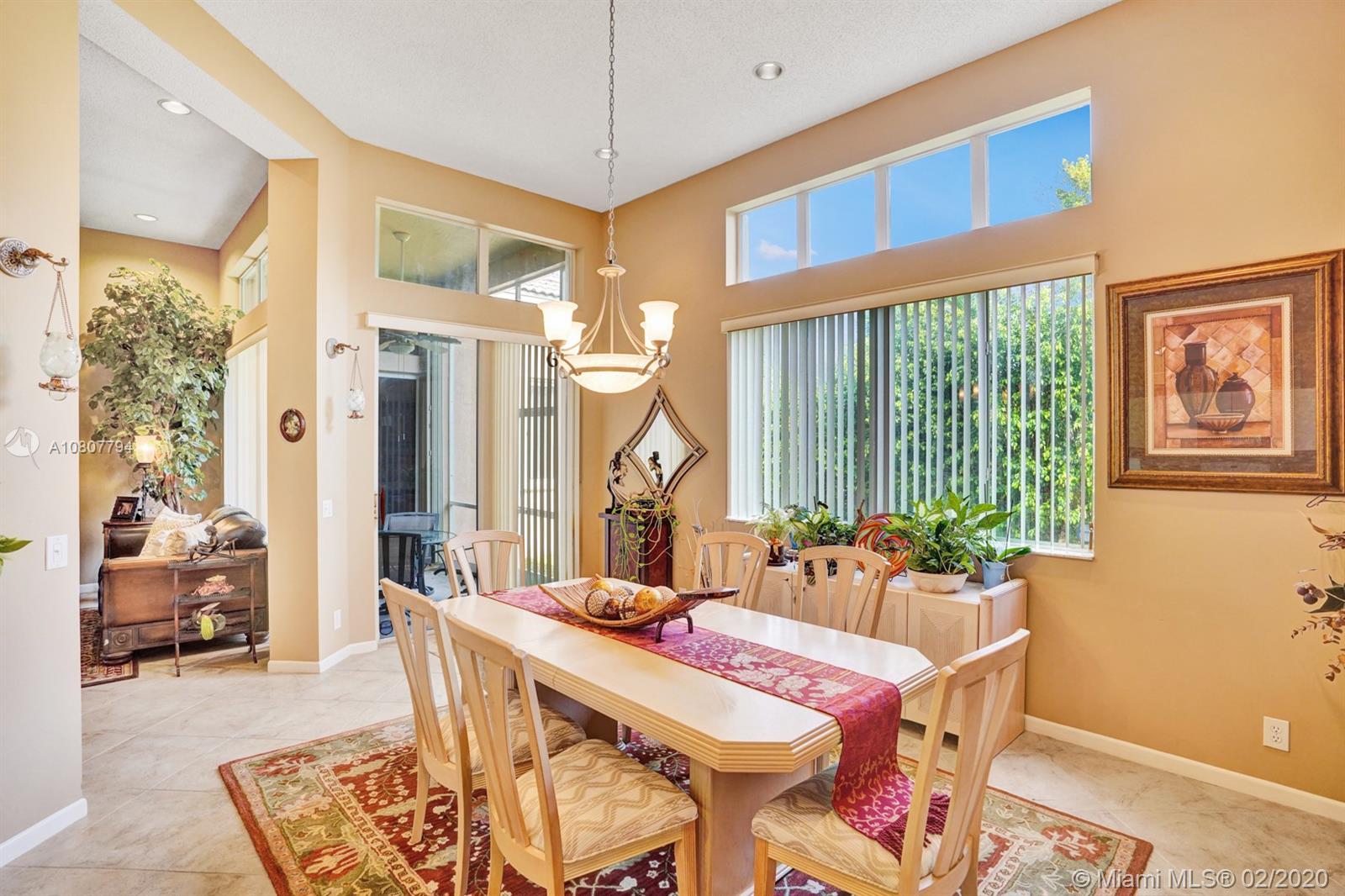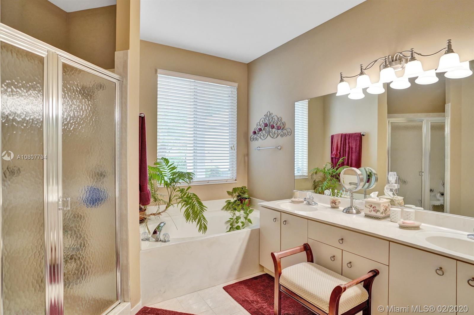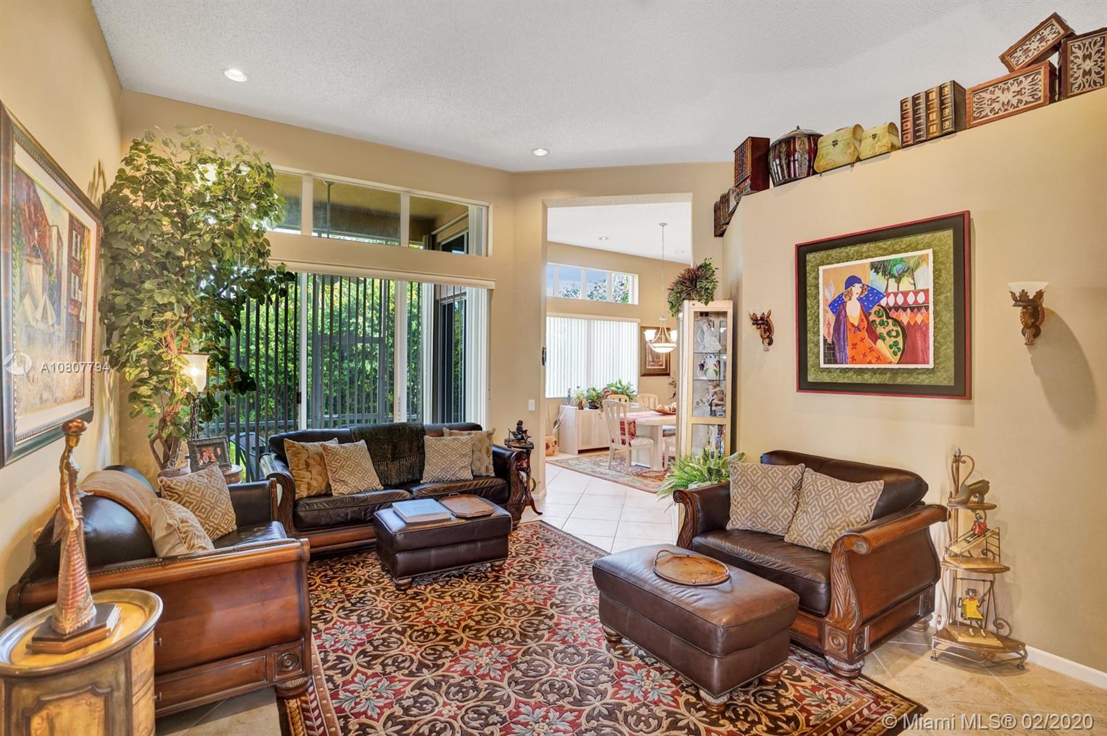 Pristine & beautifully maintained 3 Bed 2.5 Bath single story home w/covered patio (freshly pressure cleaned), located in desirable Camellia Island community. Home offers Spacious floor plan (see attached), with high ceilings & recessed lighting throughout. Open kitchen concept with breakfast bar & eat-in kitchen area meticulously maintained & clean. Master has large walk-in closets and spacious master bathroom including shower and tub. Other features include full accordion shutters, Brand new hot water heater, updated washer/dryer, updated AC, & more. Low quarterly HOA includes guard gate, securing community, Child play area, Basketball court, sand volleyball court. Close to Weston Town Center with restaurants, shopping & more. A+ schools! Seller is leaving home warranty as a bonus.