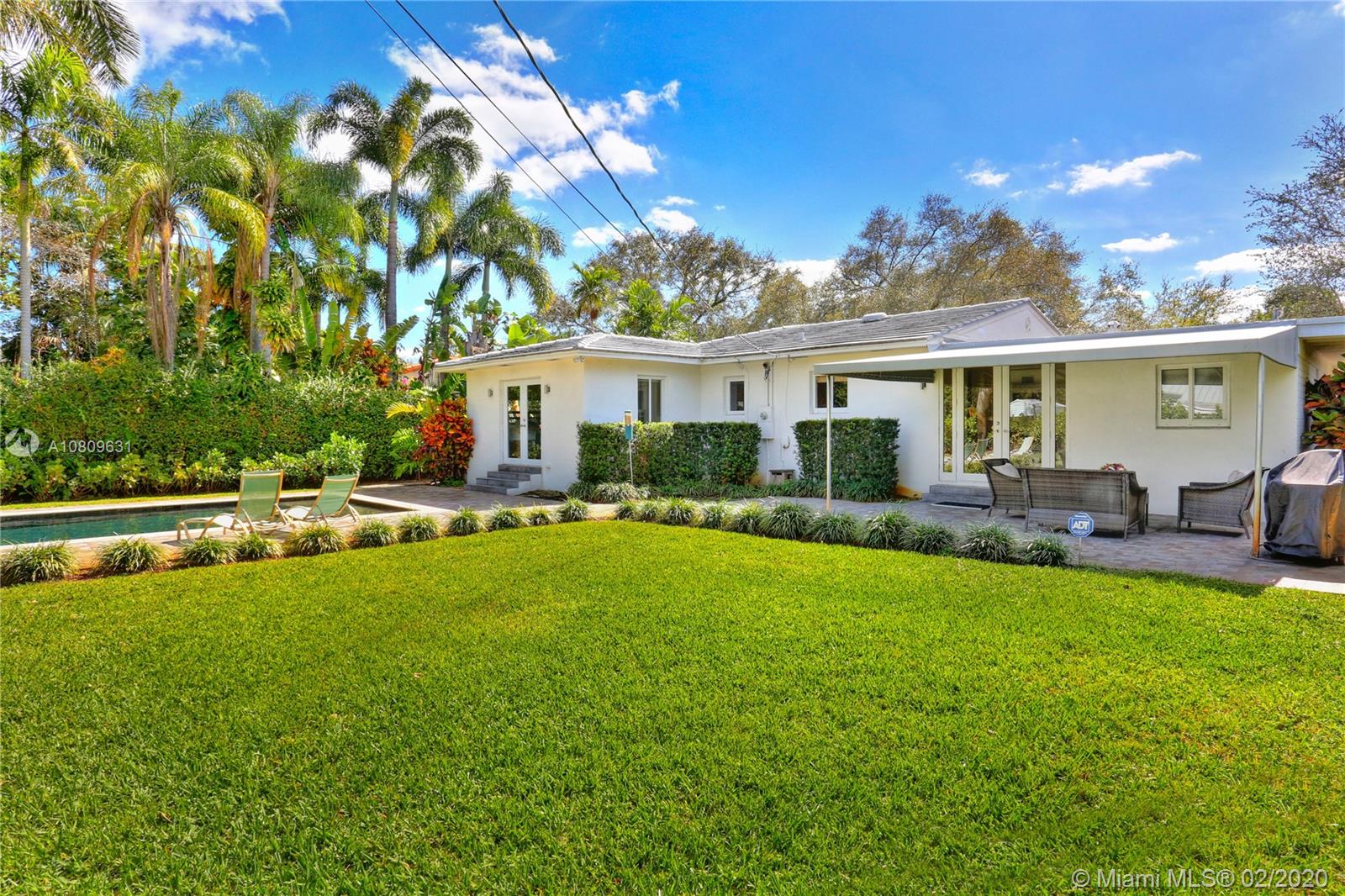 DRIPPING IN CHARM! Welcome to one of the most charming pool homes in Miami Shores! This adorable Mid Century 3 beds & 2 baths features a large living & dining area w/ tons of natural light, beautiful kitchen w/ & SS appliances that overlooks the backyard. Additional features include hurricane impact windows and doors, remodeled bathrooms, new AC units and all new electric, hardwood & tile floors and much more. Located on a 9,225 Sq. Ft. lot on a lovely Miami Shores street lined with mature oak trees, it has a large backyard that is meticulously landscaped featuring a gorgeous pool & covered tile patio that is PERFECT for a beautiful afternoon with friends or to host a nice family gathering . A MUST SEE! Easy to show.