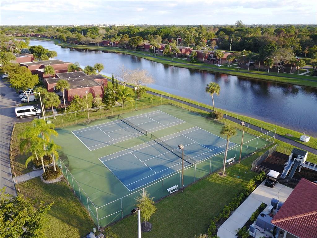 Nestled in the back of the this manicured & well maintained community this CORNER 3 bedroom 2.5 bath townhome is COMPLETELY UPDATED!! Kitchen with new custom cabinetry, soft close drawers, granite counters & stainless steel appliances. Beautiful oversized porcelain tile throughout the entire home. 1 BEDROOM DOWNSTAIRS, master bedroom & second bedroom upstairs. ALL BATHROOMS ARE UPDATED. Master Bath with roman tub, separate shower with frameless glass doors, dual sinks and spacious vanity. Balcony from master bedroom & second bedroom. Master bedroom with 2 WALK-IN CLOSETS. Fenced Courtyard patio with covered area great for entertaining. NEW CLUBHOUSE, COMMUNITY POOL & TENNIS COURTS. Hammock Pointe Elementary right outside community, close to shops & easy access to main roads. SEE 3D TOUR!