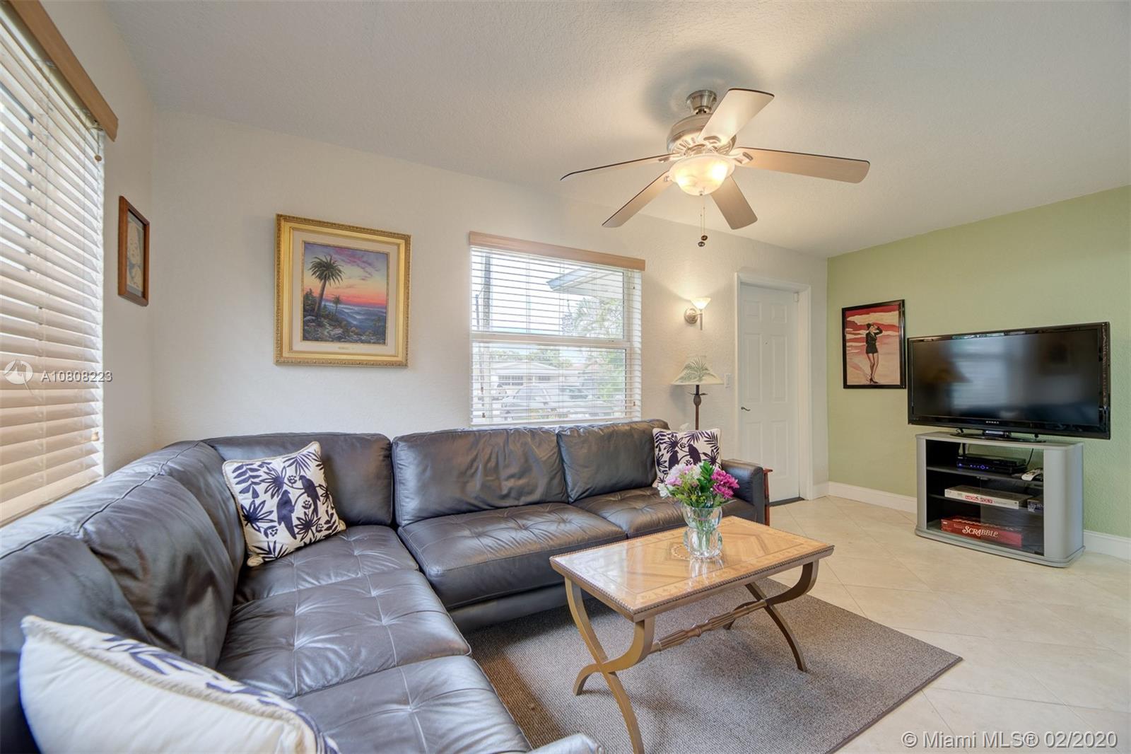 Cozy single family home located in a family oriented neighborhood with great neighbors. The home has 2 bedrooms, one bathroom and a bonus room which can be used as an office. Includes Central AC, and all appliances (microwave, range/oven, refrigerator, dishwasher, and washer/dryer). Very nice kitchen with open layout concept and high hat recessed lighting. Diamond cut tiles and textured walls throughout, fans and custom blinds in all rooms. Beautiful large fenced-in yard with fruit trees and a paver patio with walkways. Upgrades include hurricane impact rated windows with screens, roof gutter system and driveway. Close to major shopping center, highways and just seven miles from the famous Hollywood beach and boardwalk.