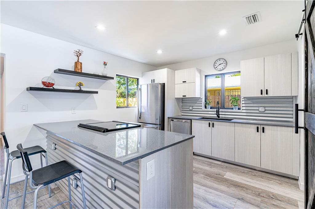 PROFESSIONALLY DESIGNED LARGE 2/2. INDUSTRIAL OPEN CONCEPT. HOME FULLY REMODELED WITH A NEW EUROPEAN KITCHEN CABINETS, QUARTZ COUNTERTOPS & NEW SS APPLIANCES. WATERPROOF AND PET FRIENDLY LAMINATE WOOD FLOORS THROUGHOUT THE HOUSE. NEW IMPACT WINDOWS, DOORS & SLIDING GLASS DOORS. LAUNDRY ROOM INSIDE WITH NEW WASHER AND DRYER. ROOF & CENTRAL A/C ARE ONLY 5 YEARS OLD. NEW BEDROOM DOORS, LARGE CLOSETS IN BOTH BEDROOMS PLUS LINEN CLOSET. BRAND NEW BATHROOM & REMODEL 2ND BATH. FRONT PORCH & BACK PATIO. HOUSE FRESHLY PAINTED INSIDE AND OUTSIDE. NEW ELECTRICAL PANEL. TANKLESS WATER HEATER. LED LIGHTING & DIMMERS IN BEDROOMS, KITCHEN AND LIVING ROOM. PLENTY OF PARKING SPACE PLUS THE CARPORT. LARGE FENCED BACK YARD. GREAT LOCATION CLOSE TO SHOPPING, RESTAURANTS, WILTON DRIVE & DOWNTOWN FT LAUDERDALE