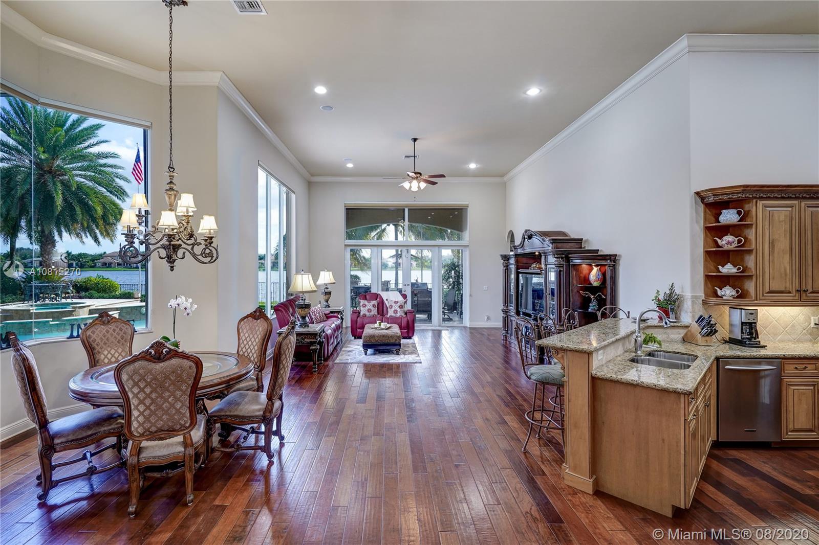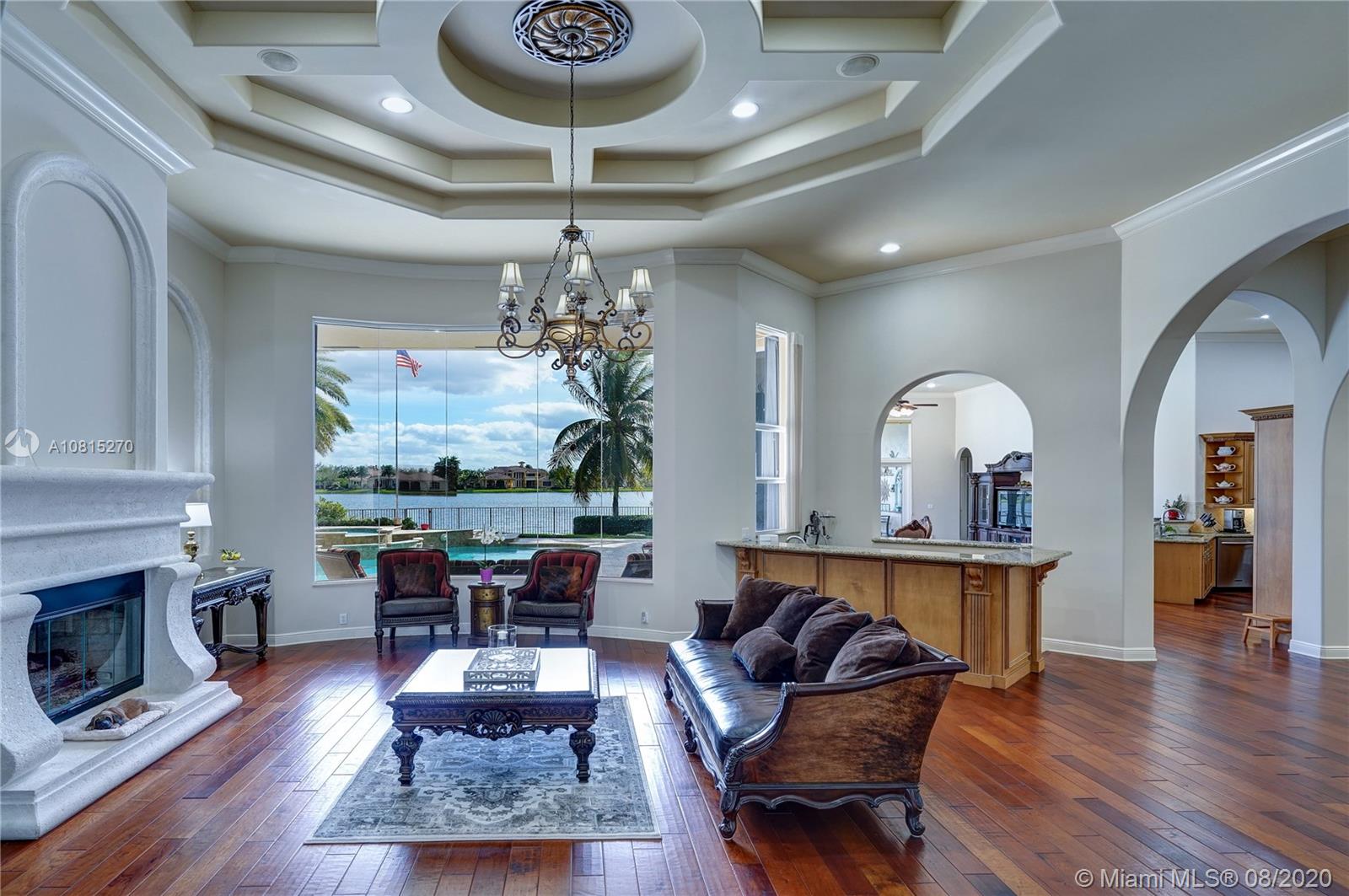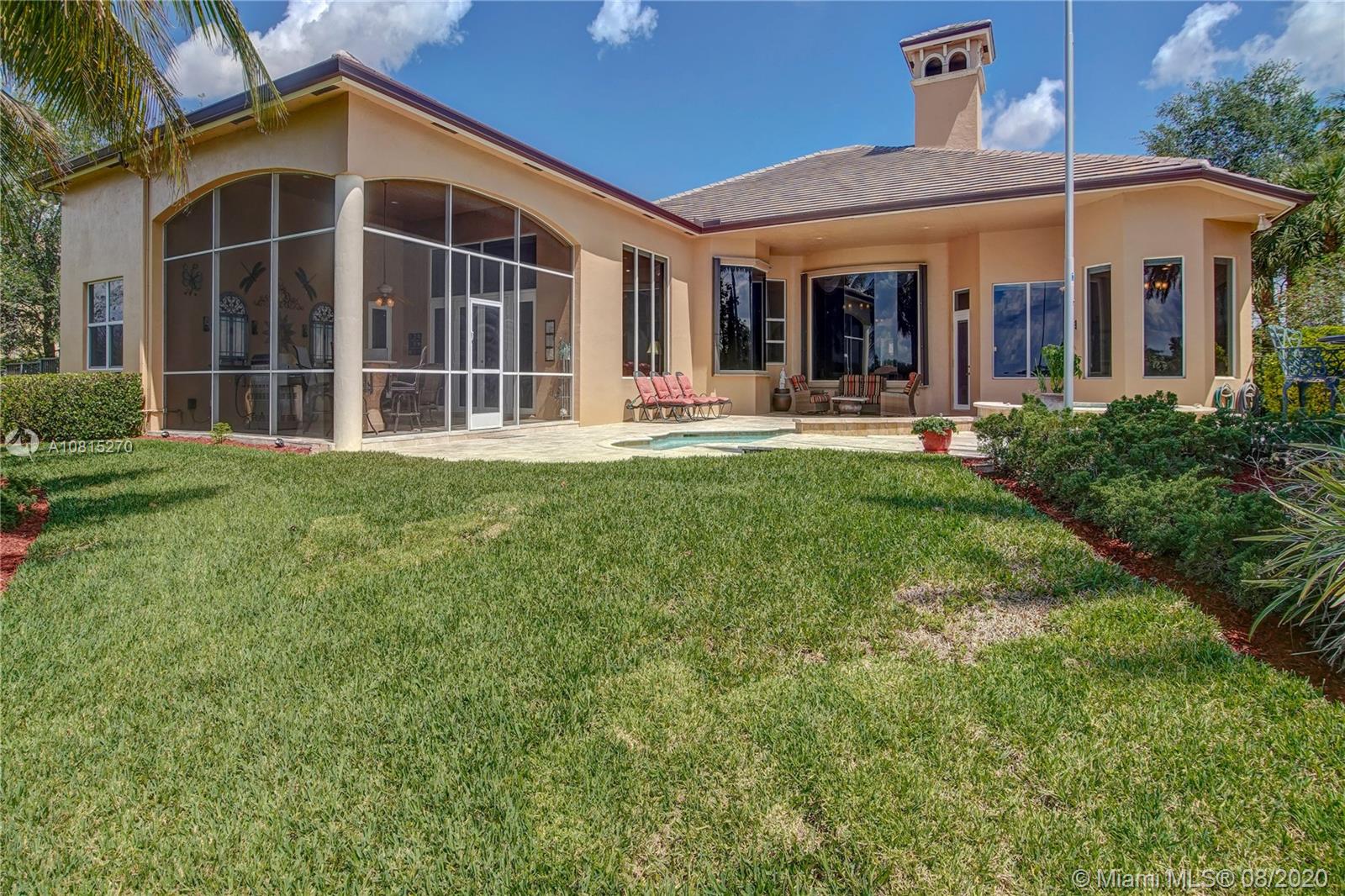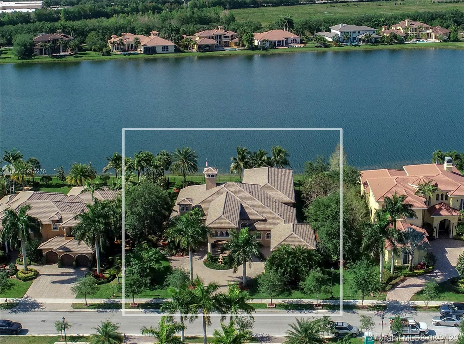 Elegant lakefront residence located in the exclusive community of Windmill Reserve! This custom home has it all! Grand porte cochere entrance with circular driveway, 5 bedrooms, 5 1/2 baths PLUS office and home theater, fantastic open floor plan with wood and marble floors, gorgeous views from every room, formal living room with gas fireplace, wet bar and wine cooler, impressive formal dining room, gourmet kitchen with gas stove and top-of-the-line appliances, all together with a spacious master wing with sitting area and luxurious bath. Enjoy the serene outdoor area with screened-in patio, newly refinished resort style pool with spa, and fenced private backyard - all with expansive lake views! Hurricane impact windows throughout and accordion shutters on bay windows. New roof!