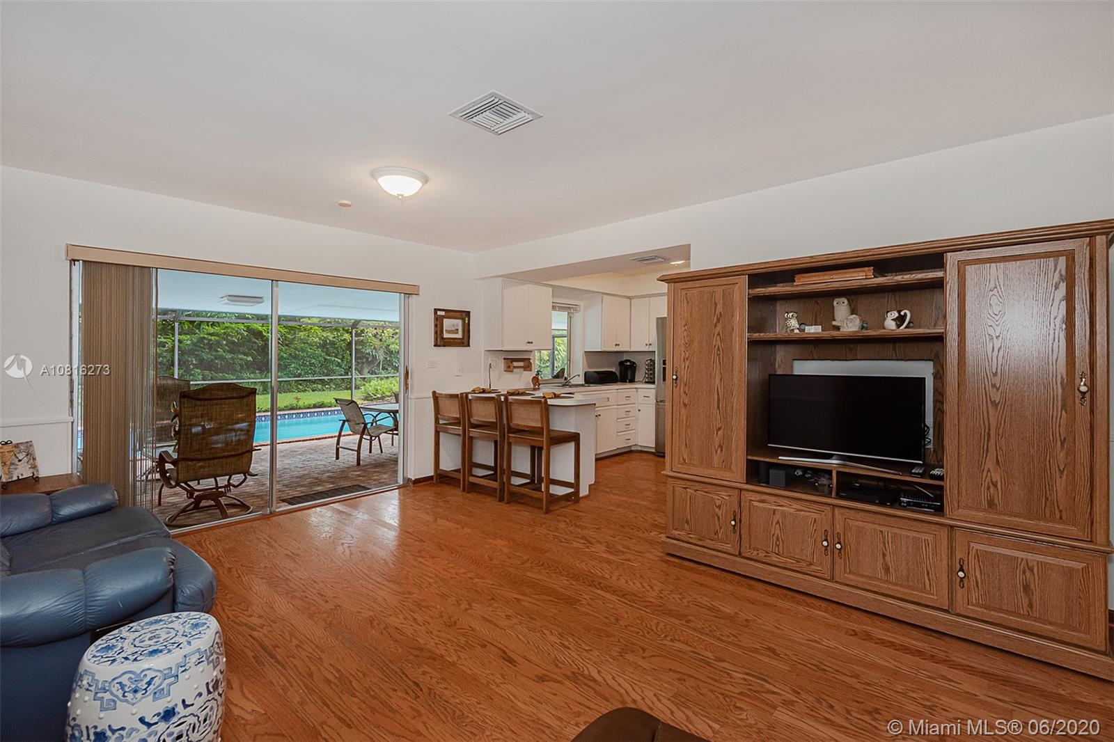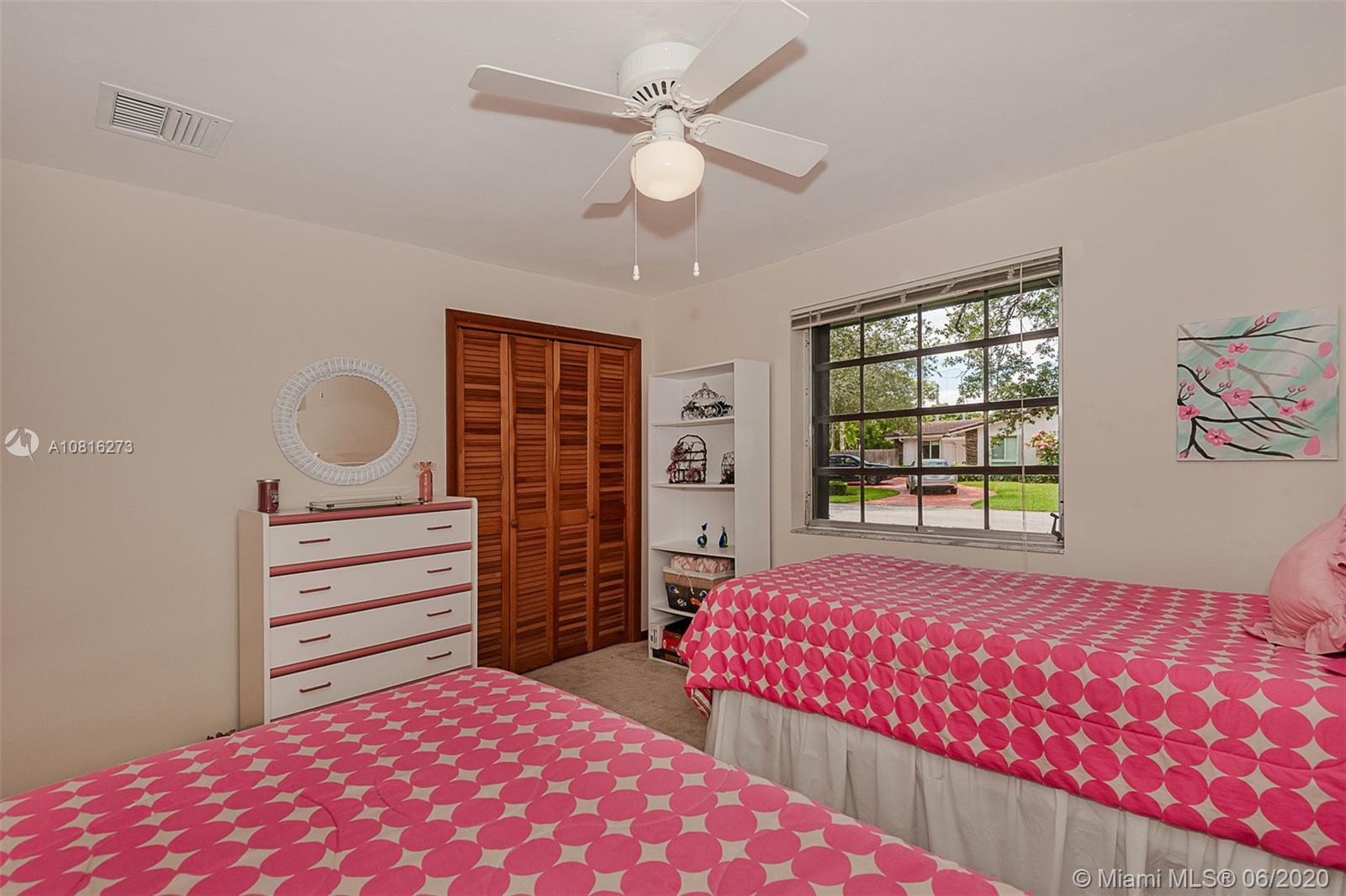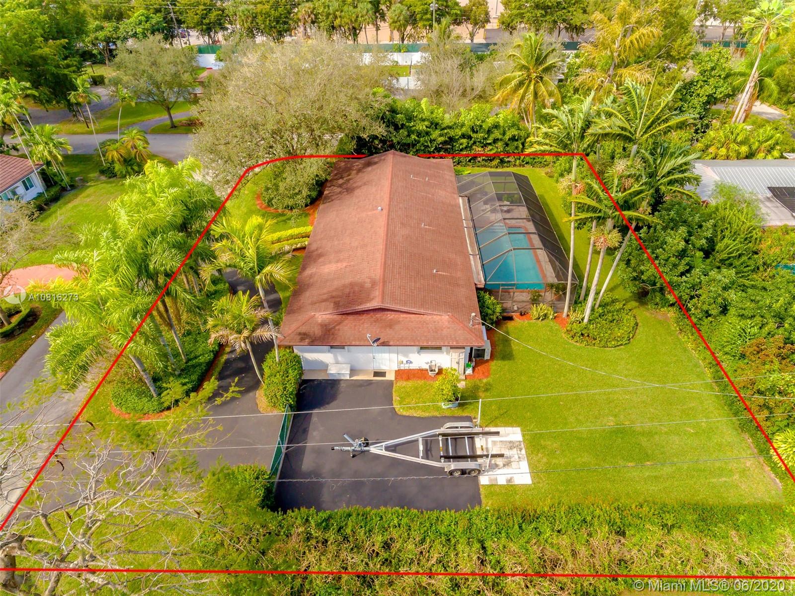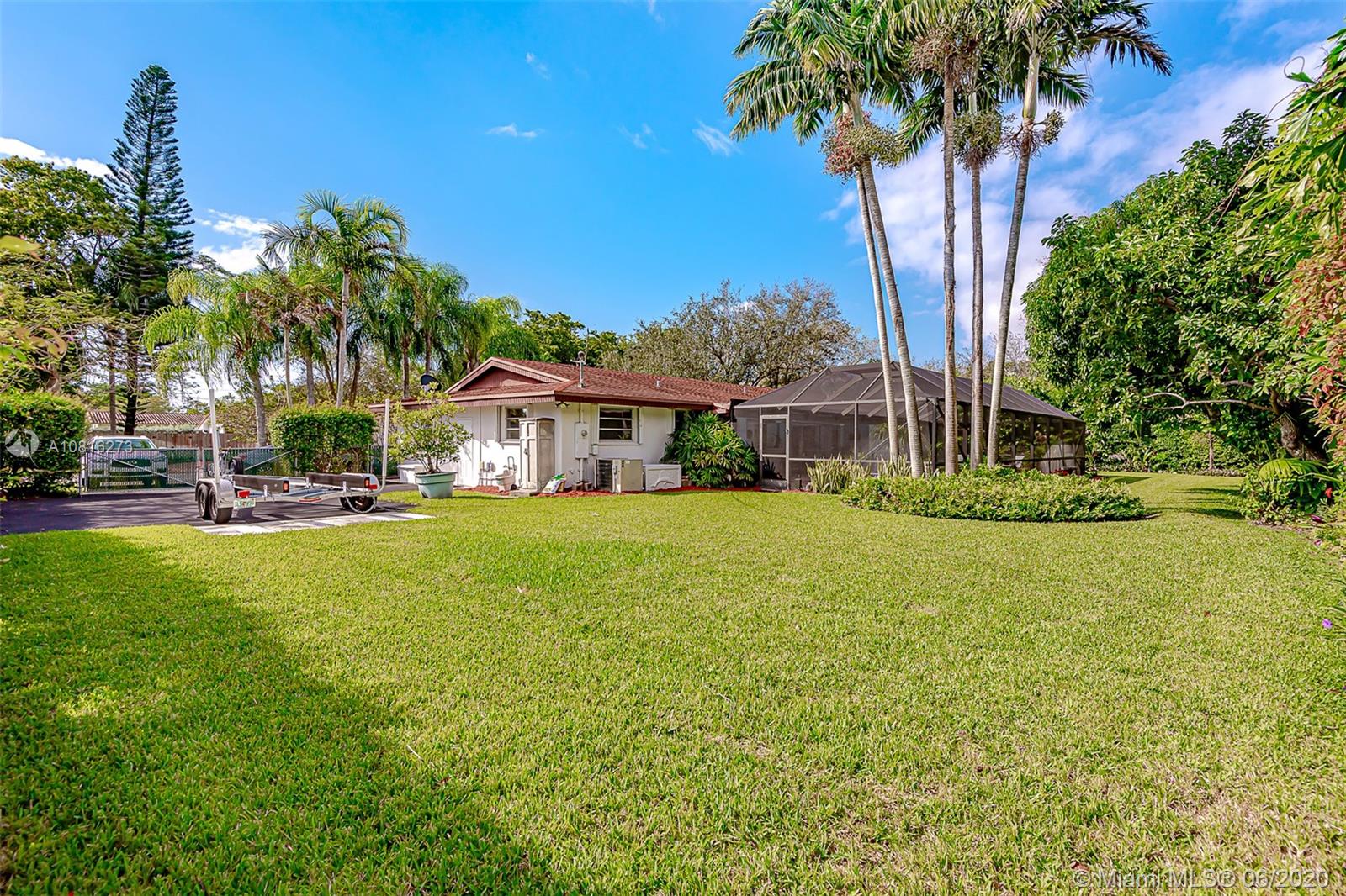 Large corner lot home on quiet street in highly desirable area of Pinecrest. Well maintained freshly painted five-bedroom, three bath split floor plan. Approximately 2,400 sq.ft. including storage and laundry room under AC. Multigenerational home with private 1/1 for in-laws, maid or adult children. Nicely adorned all white kitchen with new appliances open to family room and accessible to outdoor patio. Formal dining room and living room. 5th BR can also be a media room for casual entertainment. Expansive back yard with pool and screen enclosure; room for RV or boat trailer enclosed in well-manicured gated yard. Ideally situated to shopping, schools and accessible to Matheson and Black Point for boat lovers. Move in ready or tailor to your taste in one of Miami's finest neighborhoods.