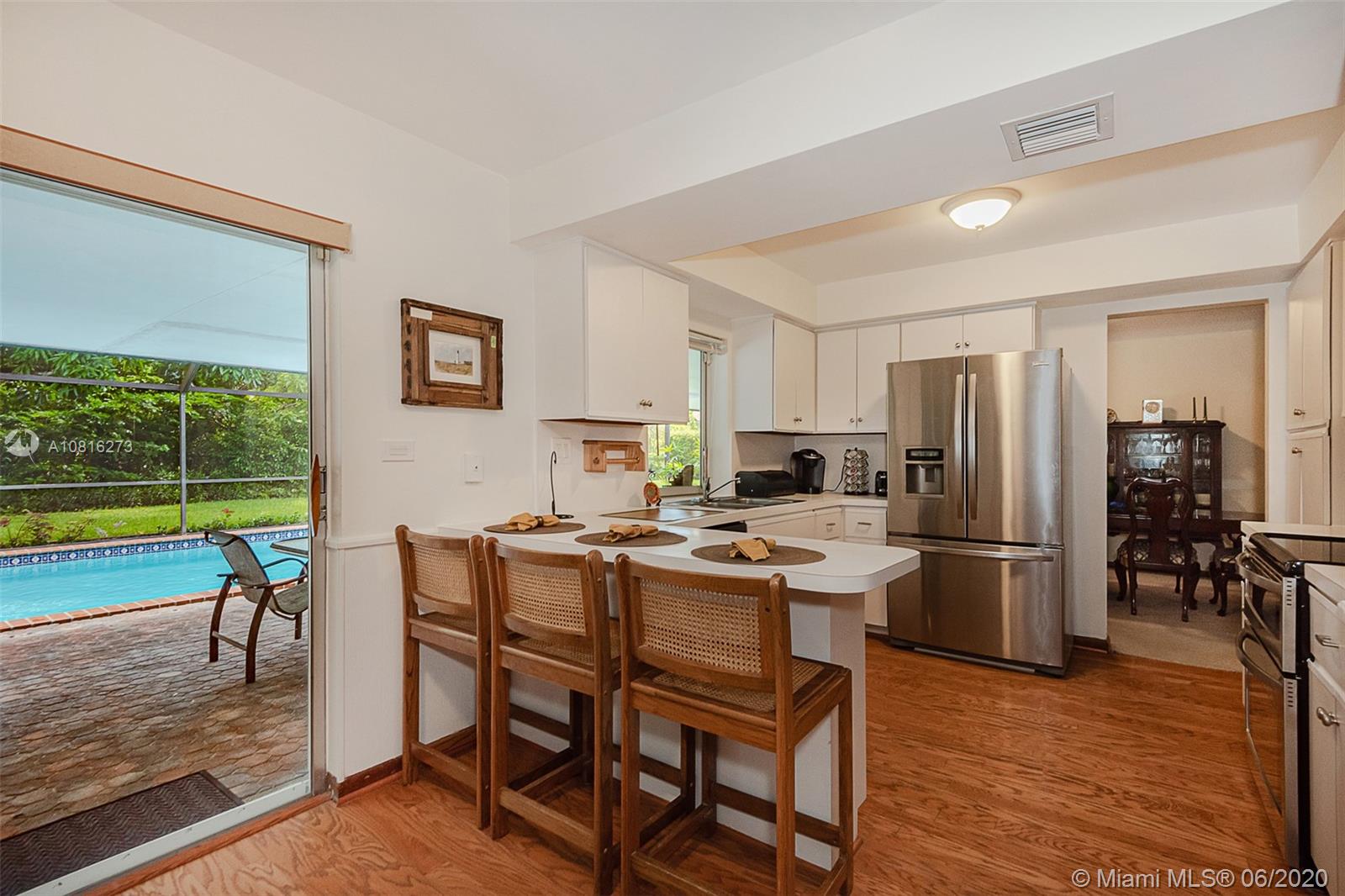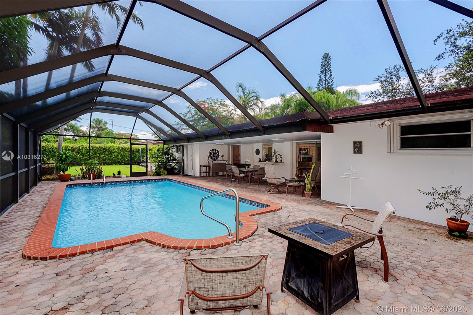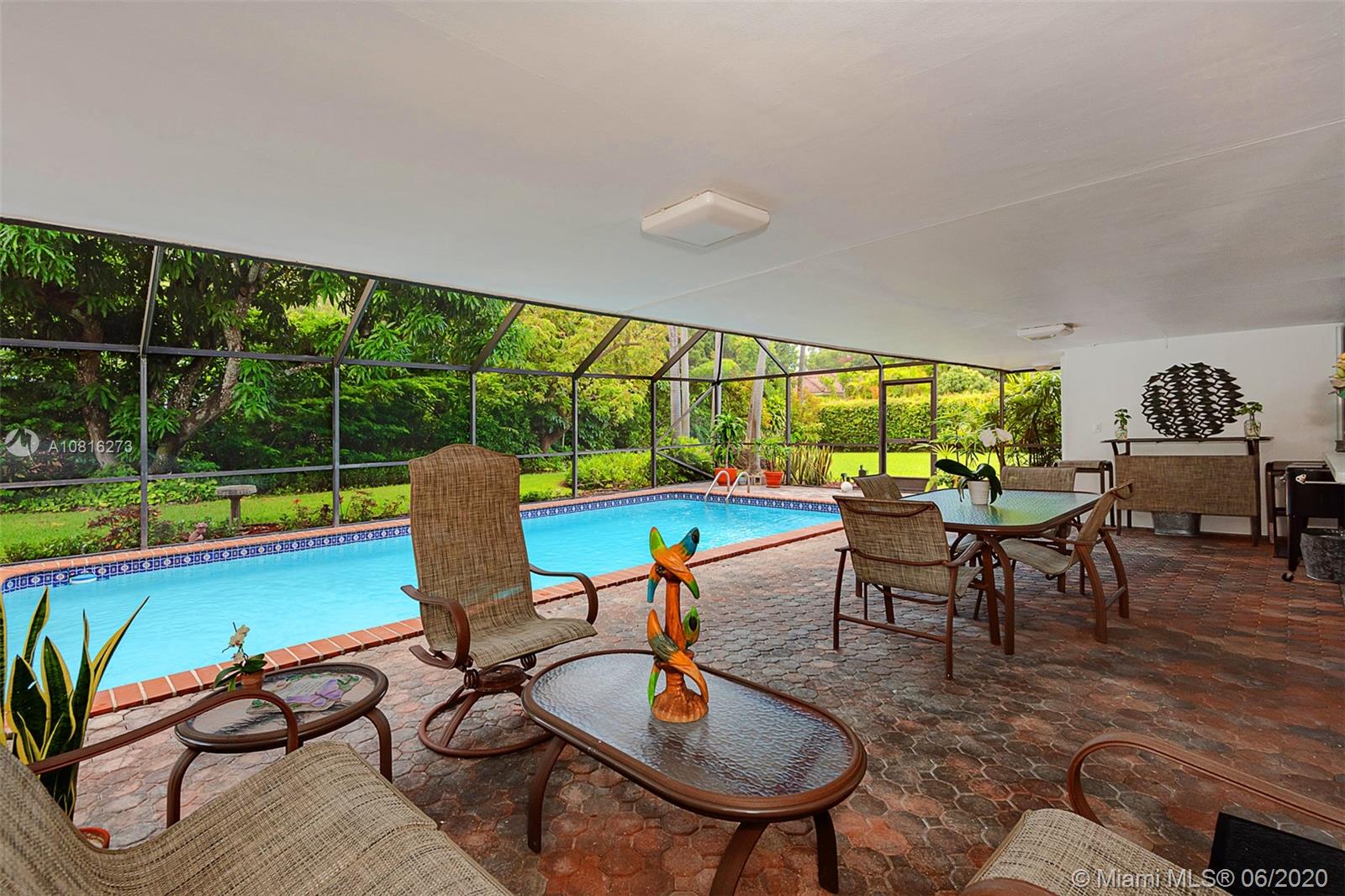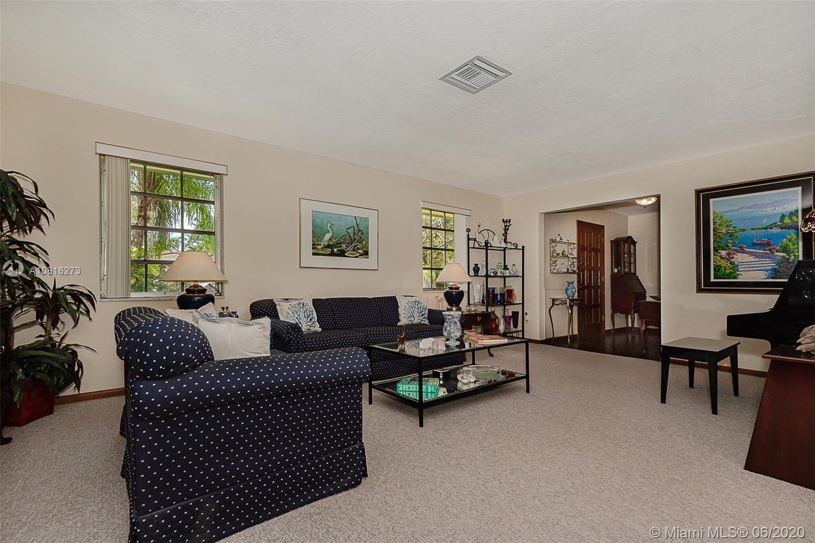 Large corner lot home on quiet street in highly desirable area of Pinecrest. Well maintained freshly painted five-bedroom, three bath split floor plan. Approximately 2,400 sq.ft. including storage and laundry room under AC. Multigenerational home with private 1/1 for in-laws, maid or adult children. Nicely adorned all white kitchen with new appliances open to family room and accessible to outdoor patio. Formal dining room and living room. 5th BR can also be a media room for casual entertainment. Expansive back yard with pool and screen enclosure; room for RV or boat trailer enclosed in well-manicured gated yard. Ideally situated to shopping, schools and accessible to Matheson and Black Point for boat lovers. Move in ready or tailor to your taste in one of Miami's finest neighborhoods.