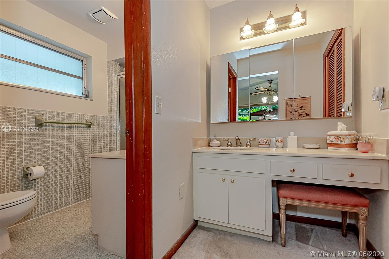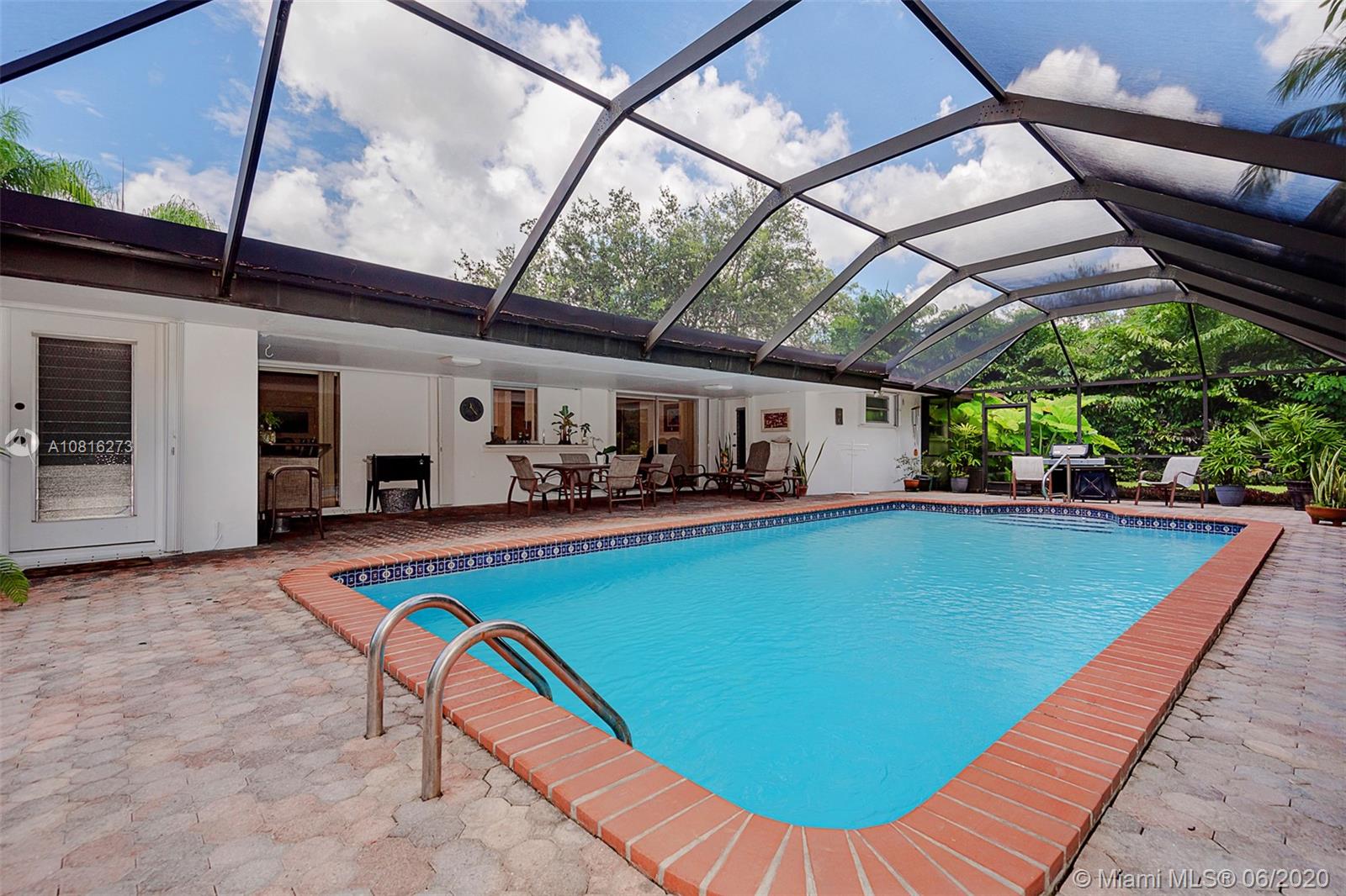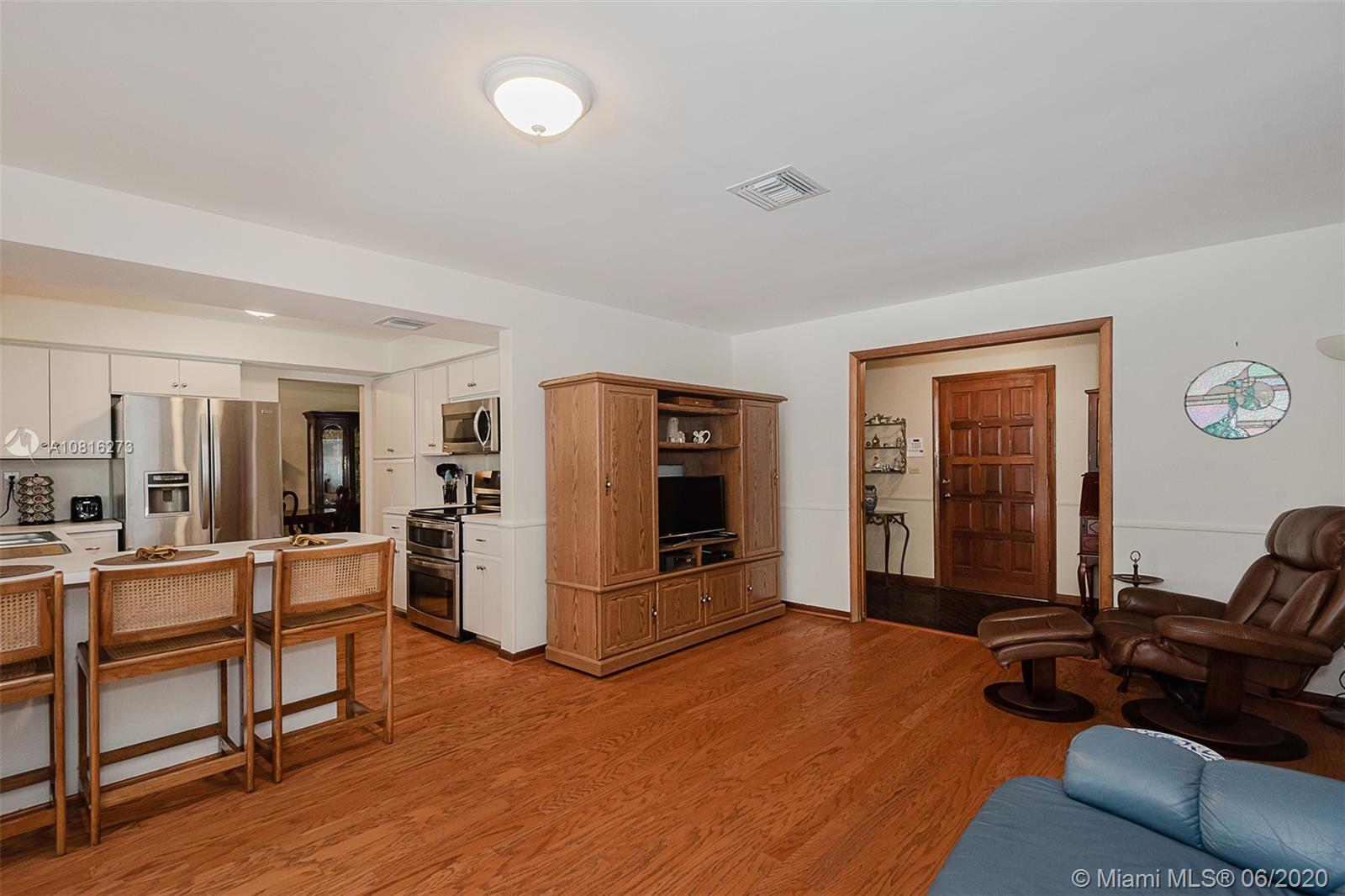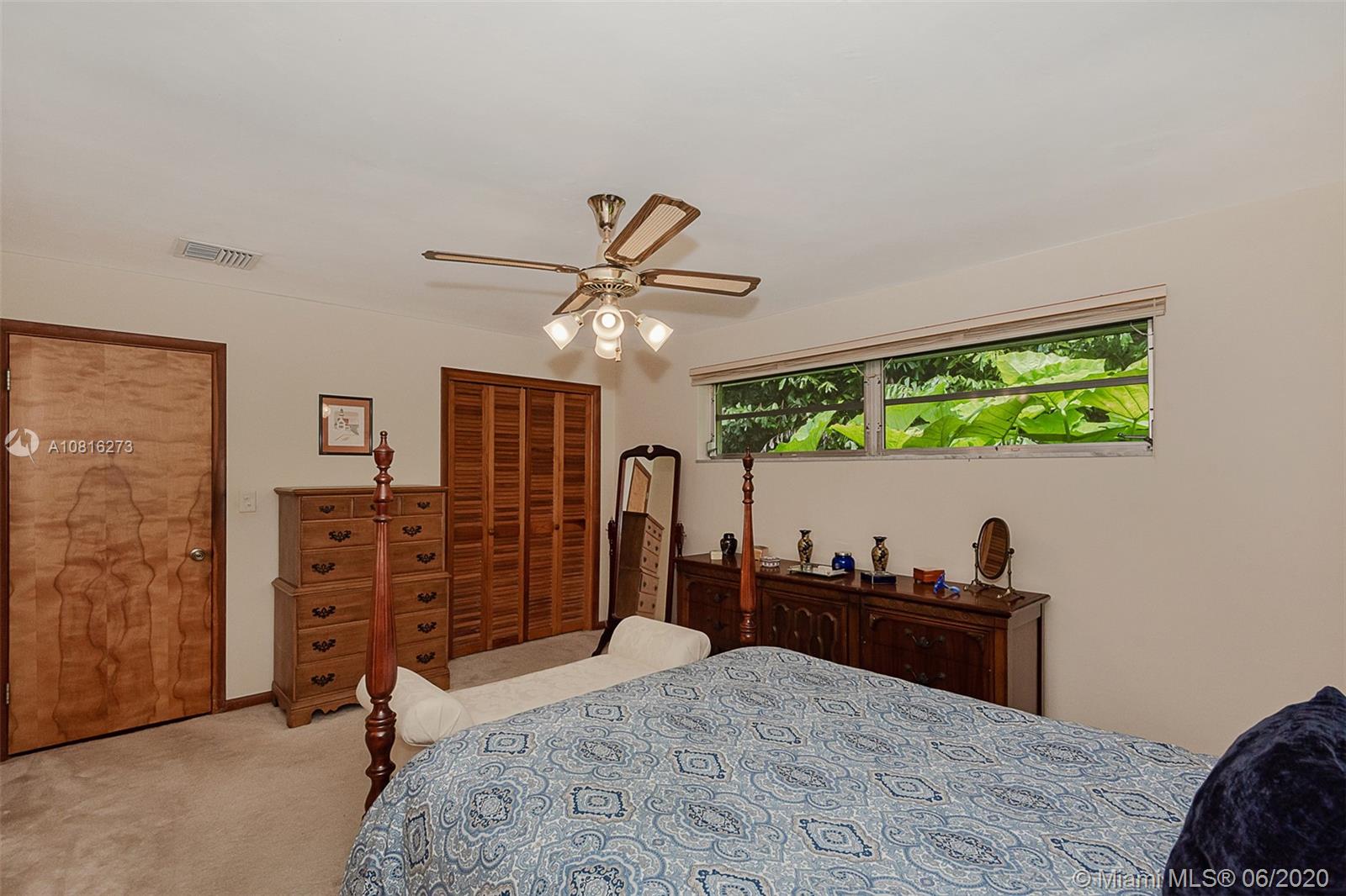 Large corner lot home on quiet street in highly desirable area of Pinecrest. Well maintained freshly painted five-bedroom, three bath split floor plan. Approximately 2,400 sq.ft. including storage and laundry room under AC. Multigenerational home with private 1/1 for in-laws, maid or adult children. Nicely adorned all white kitchen with new appliances open to family room and accessible to outdoor patio. Formal dining room and living room. 5th BR can also be a media room for casual entertainment. Expansive back yard with pool and screen enclosure; room for RV or boat trailer enclosed in well-manicured gated yard. Ideally situated to shopping, schools and accessible to Matheson and Black Point for boat lovers. Move in ready or tailor to your taste in one of Miami's finest neighborhoods.