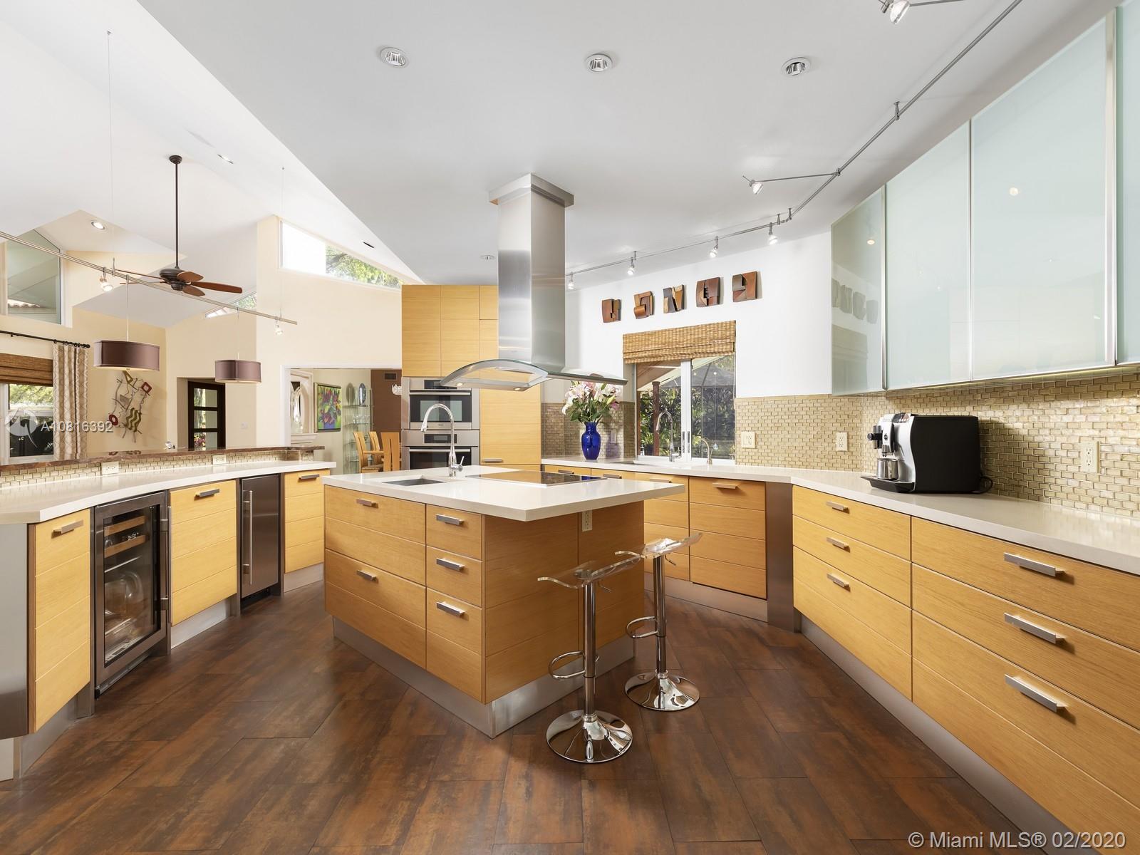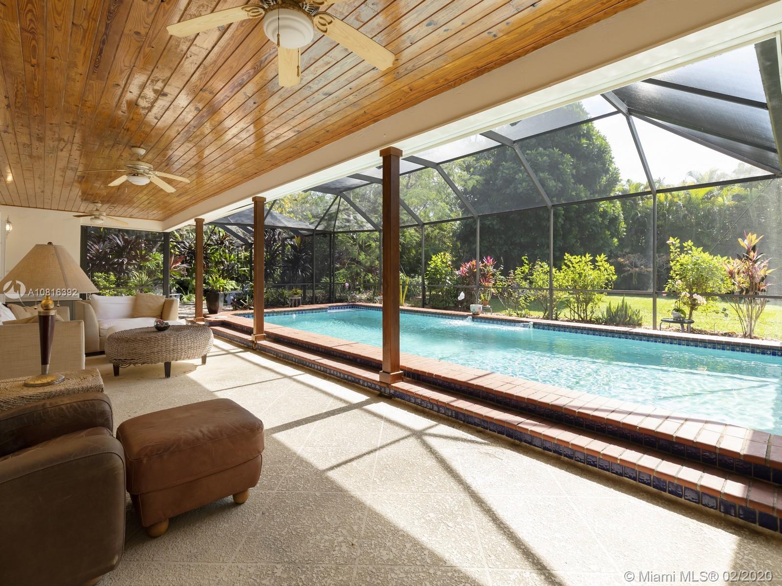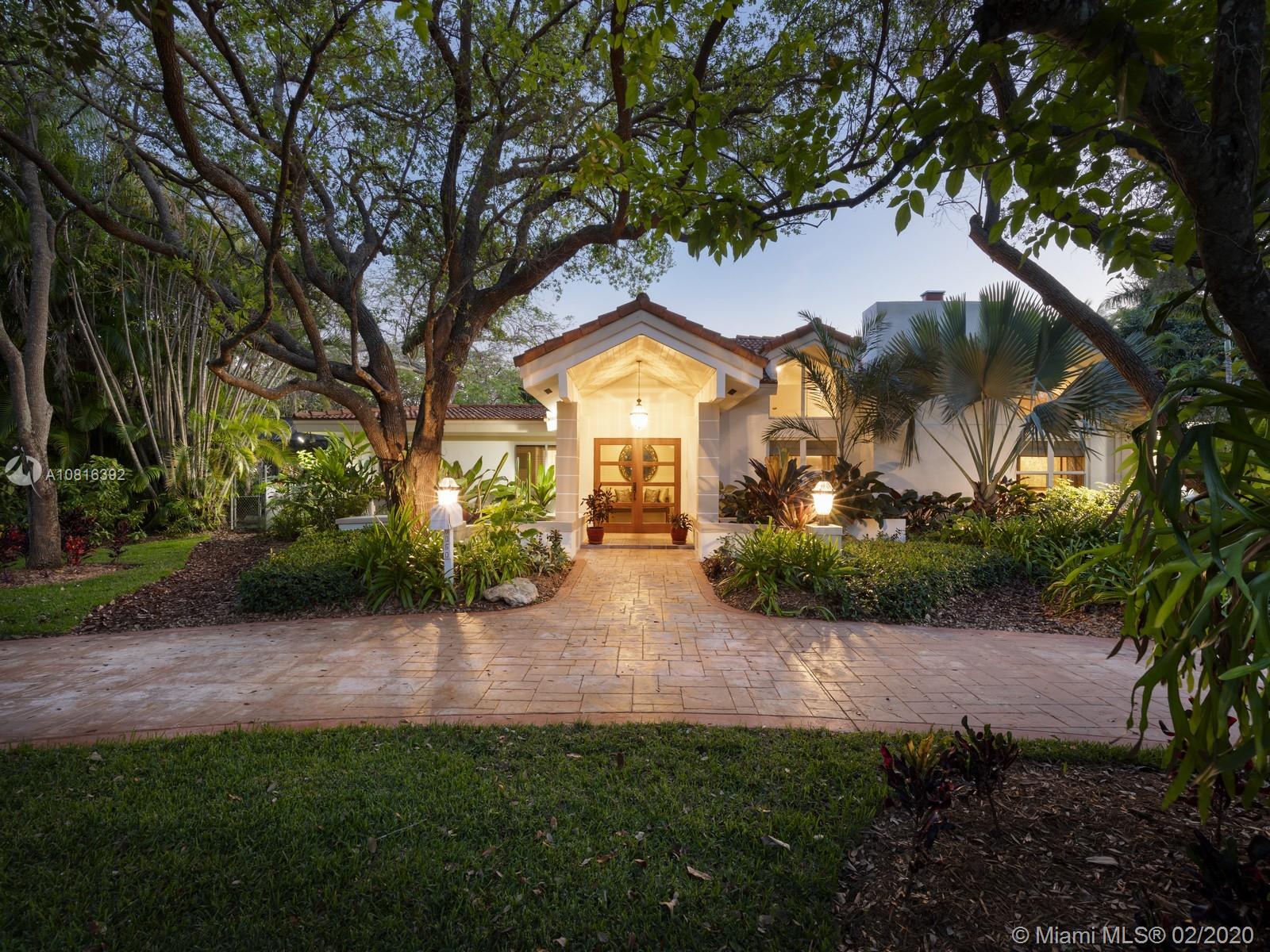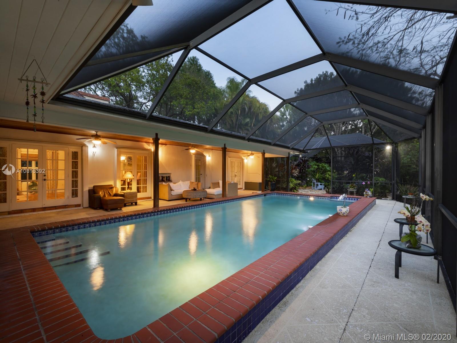 A classic family friendly home situated on the scenic backdrop of Pinecrest. Surrounded by a canopy of lush flora and grand oak trees, this updated, 4 bed and 4 bath property is idyllic for entertaining with a large covered pool and porch featuring ample lounging space, summer kitchen and tranquil koi pond. The heart and soul of the home is its fully-equipped, eat-in gourmet kitchen which incorporates into the great room with vaulted ceiling and wood-burning fireplace, presenting for a warm entrance. A new modern master-suite and spa bath offers the perfect retreat with walk-in glass enclosed shower, floating tub and vanity station. Pinecrest Elementary School is nearby. Extra features: split floor plan, Miele appliances, Sub-Zero refrigerator, full-house generator, partial-impact windows.