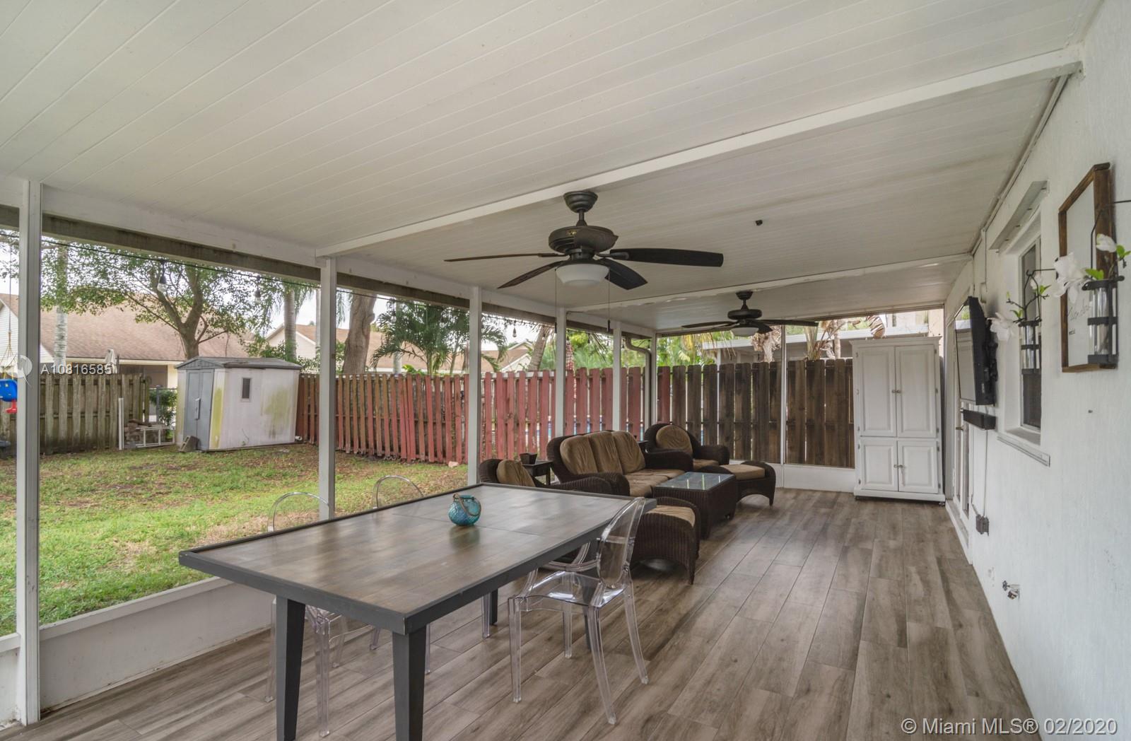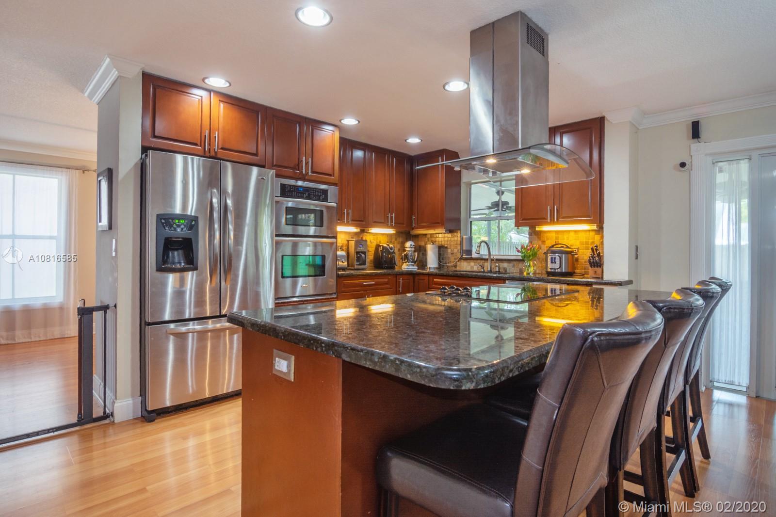 Gorgeous 3 bed, 2.5 bath home with laminate flooring throughout spacious living areas downstairs. Fully upgraded chef's kitchen with cooking island & stainless steel appliances. Upstairs, the master suite features a large walk-in closet w/built-ins and tastefully remodeled master bath. Offering outdoor living with an extended screened patio perfect for BBQ, this home is ready for entertaining! New Roof (2018), New A/C (2019) & huge fenced yard! Enjoy this beautiful light & bright home in the heart of Davie! Great location close to excellent A rated schools, shopping, dining, parks, highways & transportation!