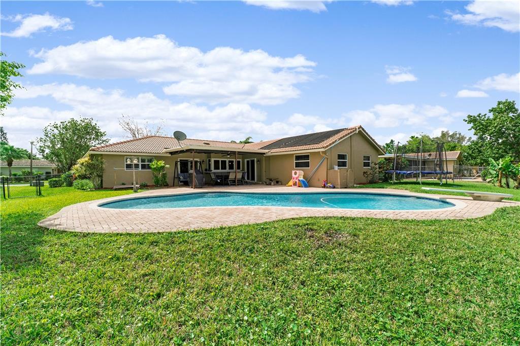 ***NO HOA*** HURRICANE IMPACT WINDOWS/DOORS THROUGHOUT! This perfect 4 bedroom turn-key waterfront home on a huge oversized lot is fully updated with a newer roof, impact garage door on a fully fenced lot. The pool is a rare 9 feet deep 30,000 gallon heated salt water pool with a diving board. Other updates include: wood kitchen cabinets with pullouts, stone countertops and stainless steel appliances, newer ac, washer/dryer, paver driveway and oversized paver pool deck, interior flooring, exterior and interior paint, updated master bathroom and the cabana bathroom with a jet tub, custom fitted closets in all bedrooms, plantation shutters and much more.