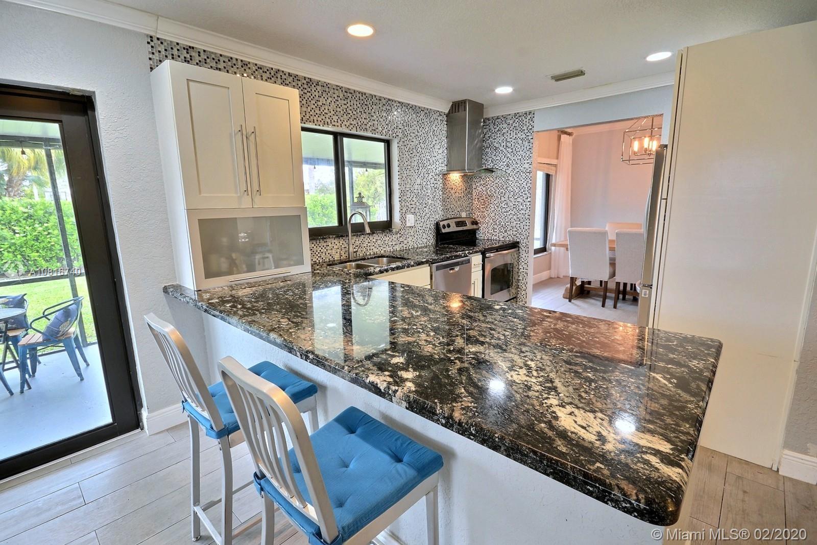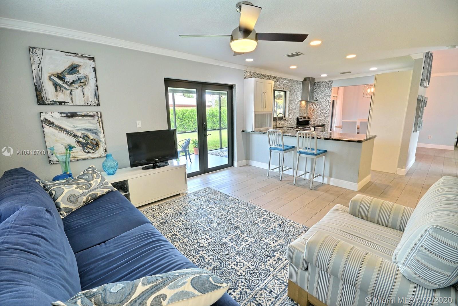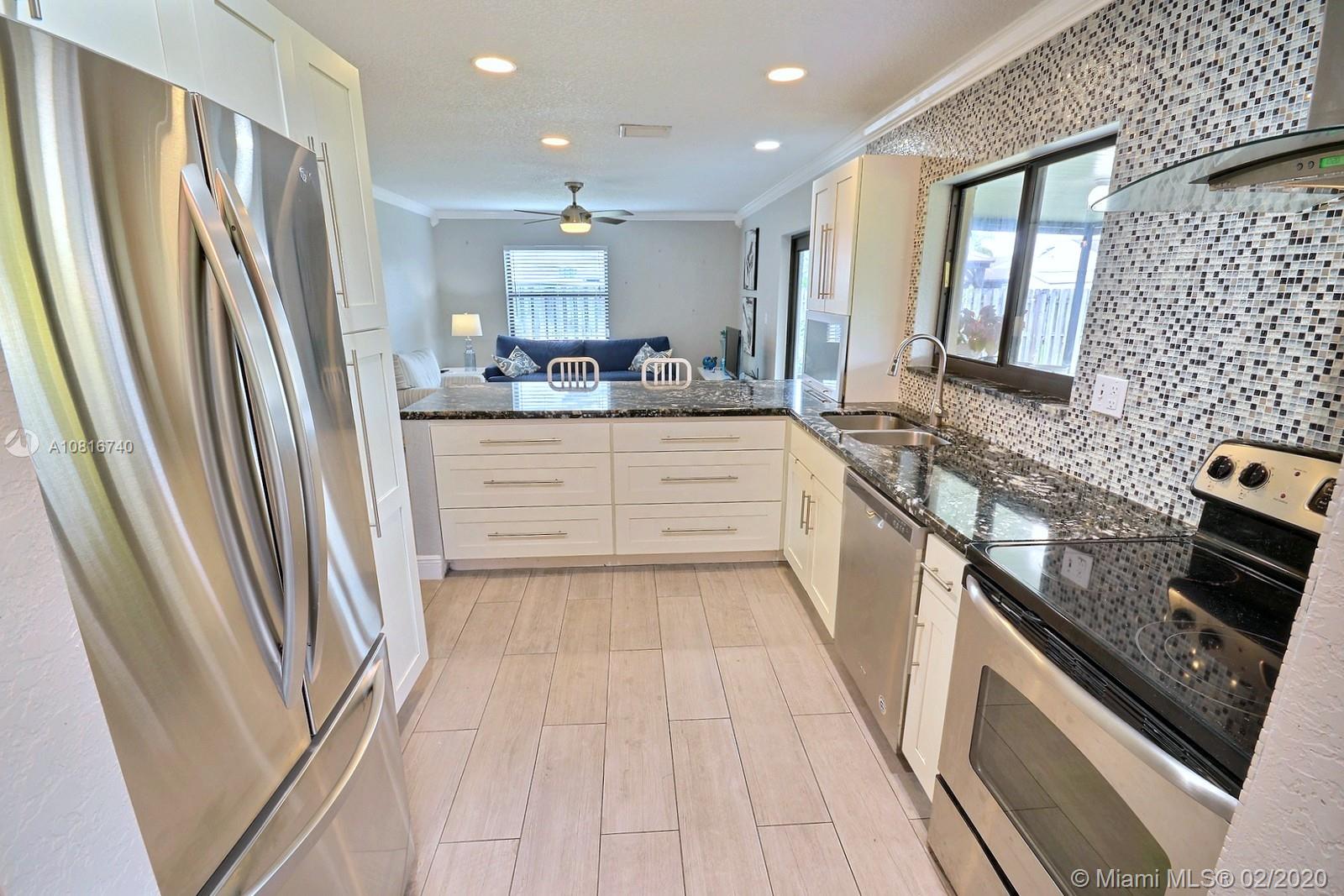 TASTEFULLY REMODELED HOME IN SOUGHT-AFTER FLAMINGO GARDENS. LIGHT AND BRIGHT HOME FEATURES BEAUTIFULLY UPDATED KITCHEN OFFERS MODERN SHAKER STYLE CABINETRY, REFINED GRANITE COUNTERS, GLASS TILE BACKSPLASH, STAINLESS STEEL APPLIANCES AND A VIEW OF THE LUSHLY LANDSCAPED HUGE PRIVATE YARD. TWO REMODELED BATHS COMPLETE WITH MODERN VANITIES AND QUARTZ COUNTERS. GORGEOUS MODERN WOOD TILE THROUGHOUT. GIGANTIC LAUNDRY ROOM. LARGE FENCED IN YARD FEATURES A SPACIOUS COVERED SCREENED-IN PATIO. ALL HURRICANE RATED IMPACT WINDOWS AND DOORS. ENJOY CLOSE PROXIMITY TO PARKS, RECREATION AND TO I-75. NO HOA.