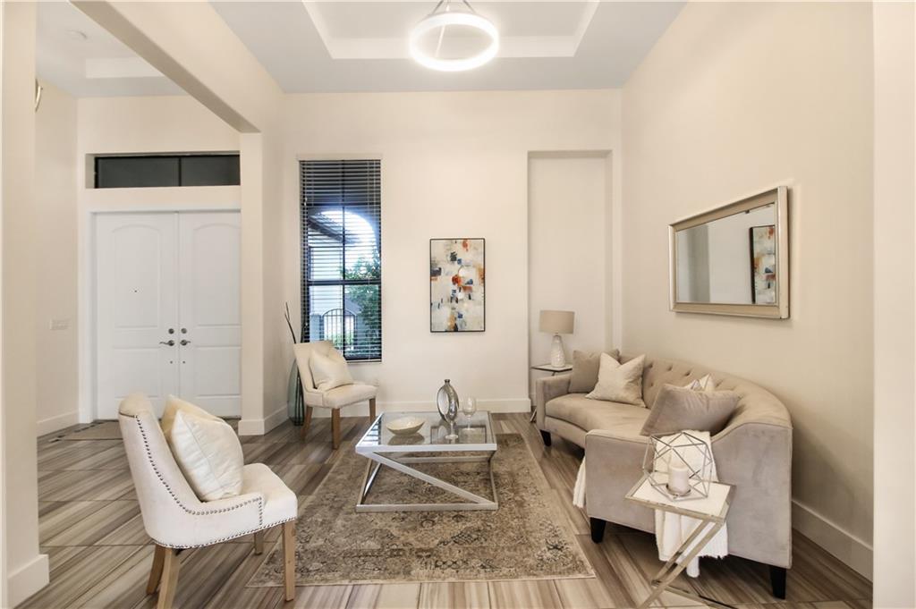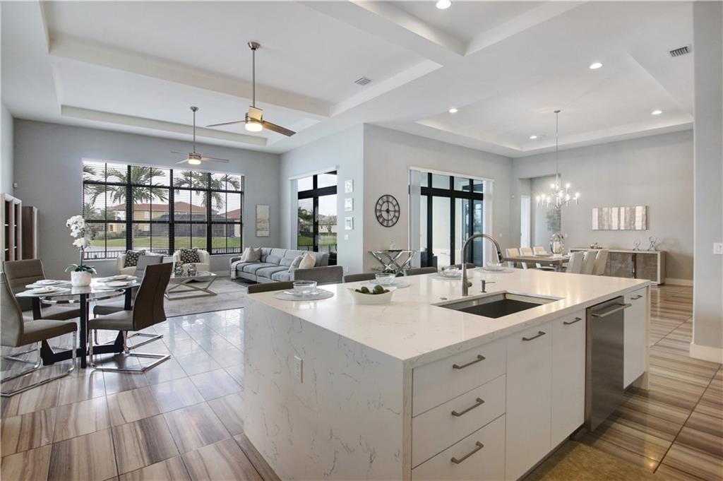 ABSOLUTELY STUNNING!!! RARE FIND - 5 bedroom, triple split floorplan, 3 car garage on a breathtaking waterfront lot! Remarkable Marseille model nestled in the CC Homes section of Miralago. Chef's Kitchen boasts Italian made cabinetry, quartz counter tops with a waterfall edge, and monogram appliances. Beautiful Porcelain flooring throughout main areas and Pergo wood flooring in the bedrooms. Designer bathroom with oversized shower and tub. Backyard offers a premium lake view, 80 feet of water frontage and tons of yard space. The home also features impact windows and doors throughout, custom window treatments, soaring volume ceilings, and spray foam insulation in the attic and garage. Come see it before it's gone!