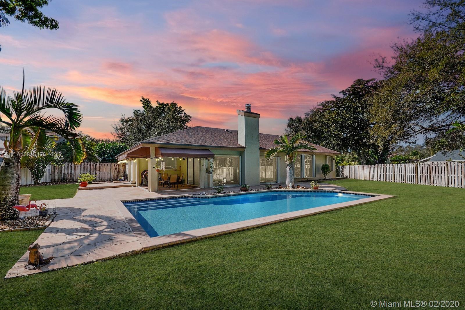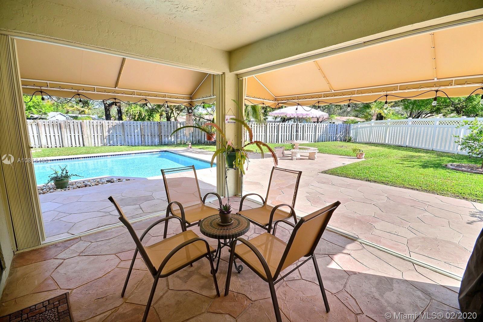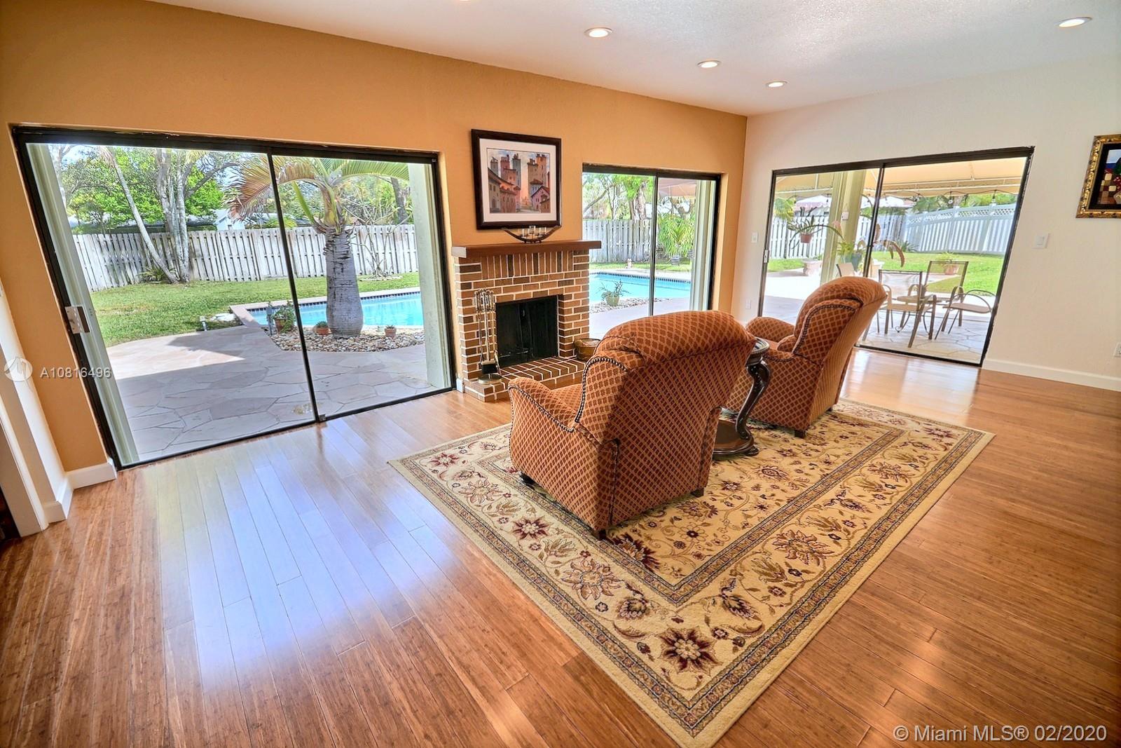 SPECTACULAR ROCK CREEK POOL HOME FEATURES OPEN-CONCEPT LIVING ON HUGE 14,641 SF LOT. SPACIOUS HOME HAS PERMITTED ADDITION PERFECT FOR MOVIE ROOM, DEN/OFFICE. BEAUTIFULLY REMODELED KITCHEN COMPLETE W WOOD CABINETRY, GRANITE COUNTERS, STAINLESS STEEL APPLIANCES, COOKING ISLAND, WINE FRIDGE, ELEGANT HOOD, EAT-IN COUNTER. ROMANTIC FIRE PLACE W GORGEOUS VIEW OF FABULOUS FENCED BACKYARD. ENJOY INDOOR/OUTDOOR LIVING UNDER THE COVERED PATIO W A VIEW OF THE SPARKLING POOL. ACCORDION HURRICANE SHUTTERS; NEW ROOF 2018. ROCK CREEK IS A PET FRIENDLY COMMUNITY WITH 2.75 MILE JOG/WALK PATH, PARKS, LAKES, SPORTS COURTS, TOT PLAYGROUNDS ON TREE LINED STREETS. POOL & TENNIS CENTER OFFERS 8 TENNIS COURTS, POOL, LIT B-BALL COURTS, FITNESS ROOM FOR A SMALL FEE. COOPER CITY'S SPECTACULAR SCHOOL SYSTEM TO BOOT.