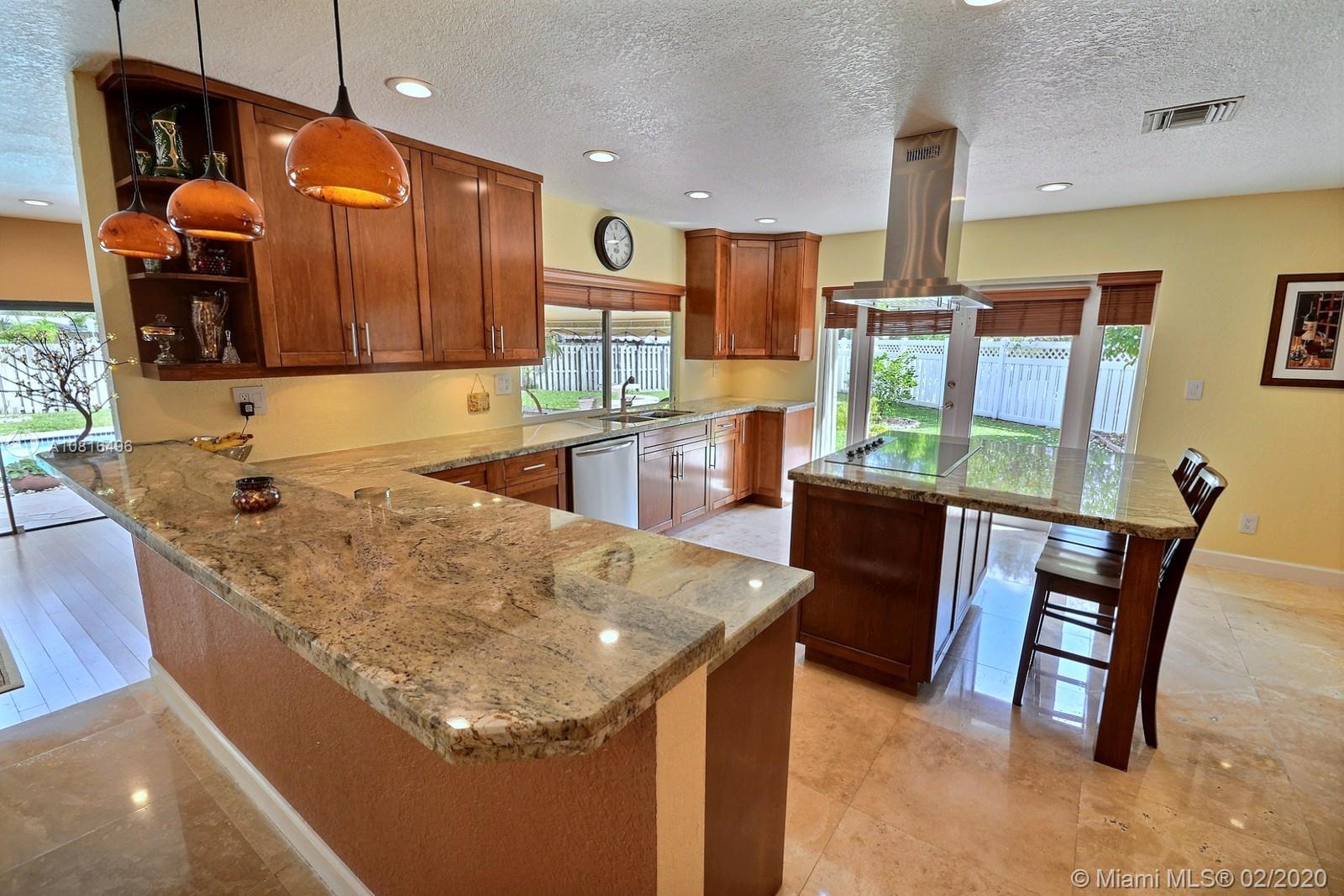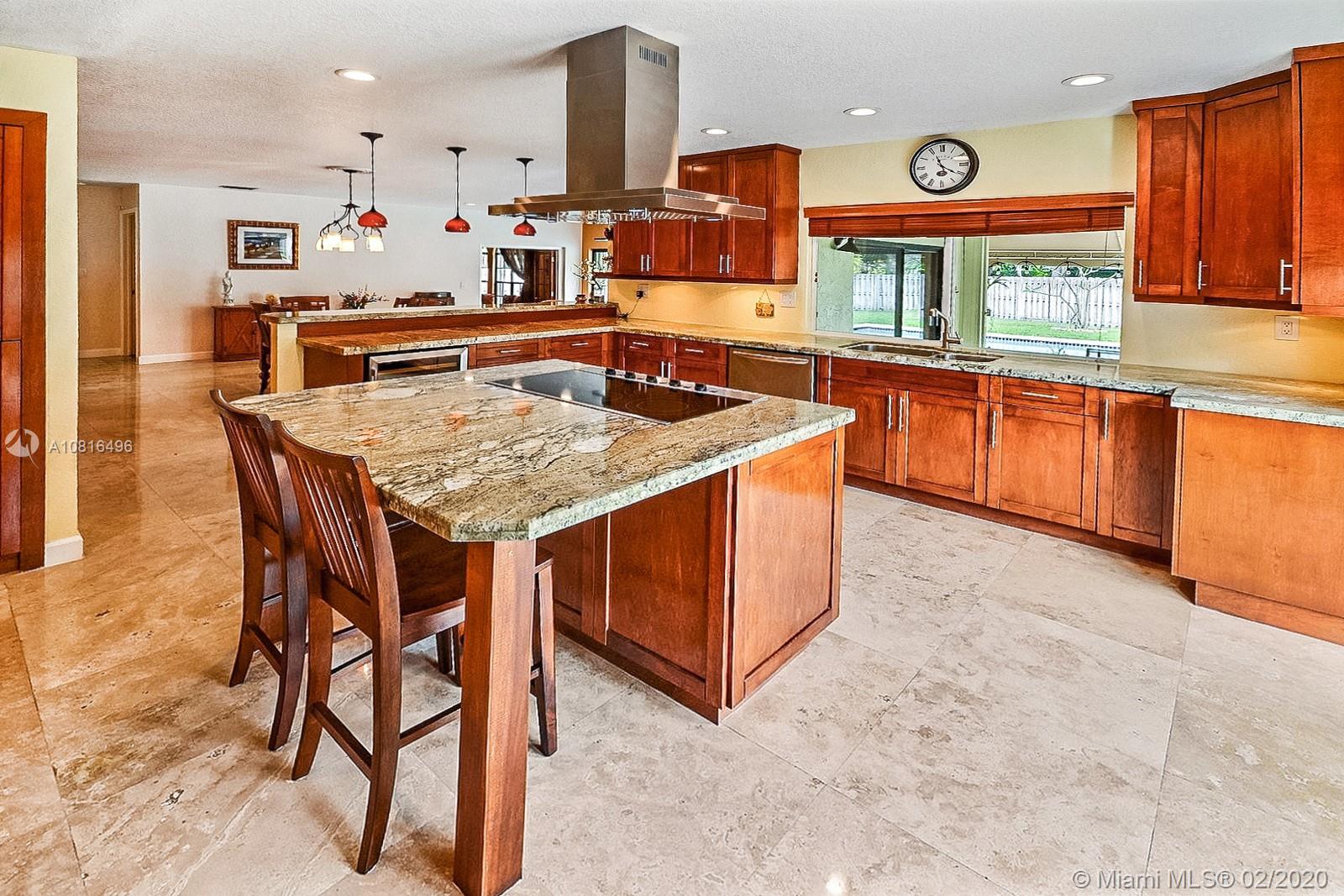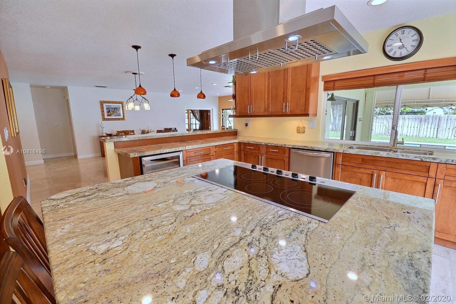 SPECTACULAR ROCK CREEK POOL HOME FEATURES OPEN-CONCEPT LIVING ON HUGE 14,641 SF LOT. SPACIOUS HOME HAS PERMITTED ADDITION PERFECT FOR MOVIE ROOM, DEN/OFFICE. BEAUTIFULLY REMODELED KITCHEN COMPLETE W WOOD CABINETRY, GRANITE COUNTERS, STAINLESS STEEL APPLIANCES, COOKING ISLAND, WINE FRIDGE, ELEGANT HOOD, EAT-IN COUNTER. ROMANTIC FIRE PLACE W GORGEOUS VIEW OF FABULOUS FENCED BACKYARD. ENJOY INDOOR/OUTDOOR LIVING UNDER THE COVERED PATIO W A VIEW OF THE SPARKLING POOL. ACCORDION HURRICANE SHUTTERS; NEW ROOF 2018. ROCK CREEK IS A PET FRIENDLY COMMUNITY WITH 2.75 MILE JOG/WALK PATH, PARKS, LAKES, SPORTS COURTS, TOT PLAYGROUNDS ON TREE LINED STREETS. POOL & TENNIS CENTER OFFERS 8 TENNIS COURTS, POOL, LIT B-BALL COURTS, FITNESS ROOM FOR A SMALL FEE. COOPER CITY'S SPECTACULAR SCHOOL SYSTEM TO BOOT.