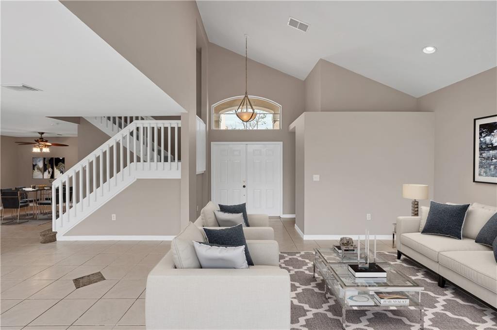 Impressive 3BR/2.5BA canal front home located in the gated community of The Island at Spring Valley. Recent updates include all new interior & exterior paint, a new sprinkler system, all new vinyl flooring upstairs and brand new stainless steel appliances. The spacious floor plan features vaulted ceilings & tile flooring throughout the main living areas, formal living & dining spaces, a separate family room and a beautifully designed eat-in kitchen with granite counter tops, backslash and breakfast bar. Enjoy peaceful canal views from the large open patio that overlooks the private, fenced in backyard with room for a pool! A must see home in a great community! All Information recorded in the MLS is intended to be accurate but cannot be guaranteed, buyer advised to verify. Sold As-Is.