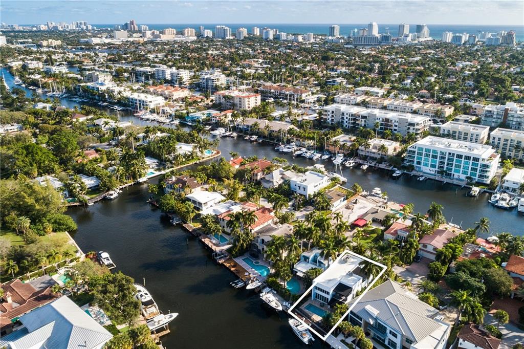 Grace, efficiency, and refinement come together on a deep, wide canal with no fixed bridges to the ocean. Soaring ceilings create bright and open spaces with a clean and modern look. Electric front gates, electric shades, a remodeled Mia Cucina kitchen with marble countertops and top of the line appliances make life joyous. An elevator connects the four bedrooms of which two are master suites, a private office and a large den with the second story offering two outdoor spaces with fabulous views from separate terraces. The boatlift can accomidate up to 20,000 lbs. The walk to famous Las Olas Blvd is barely long enough to decide which of your favorite restaurants to visit. Love the beach? Take a Scooter for a breezy ride or enjoy a short trek to the white sands of Lauderdale beach.