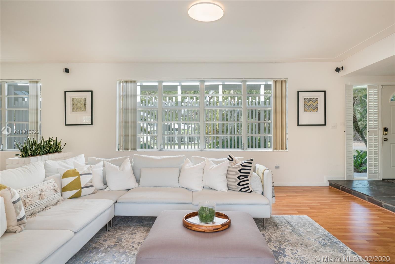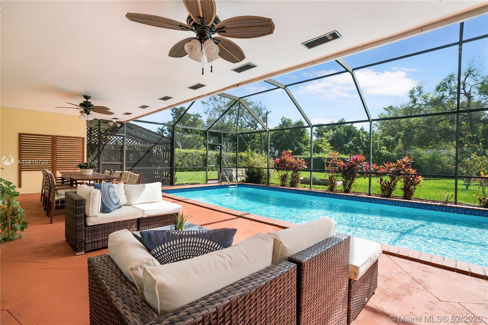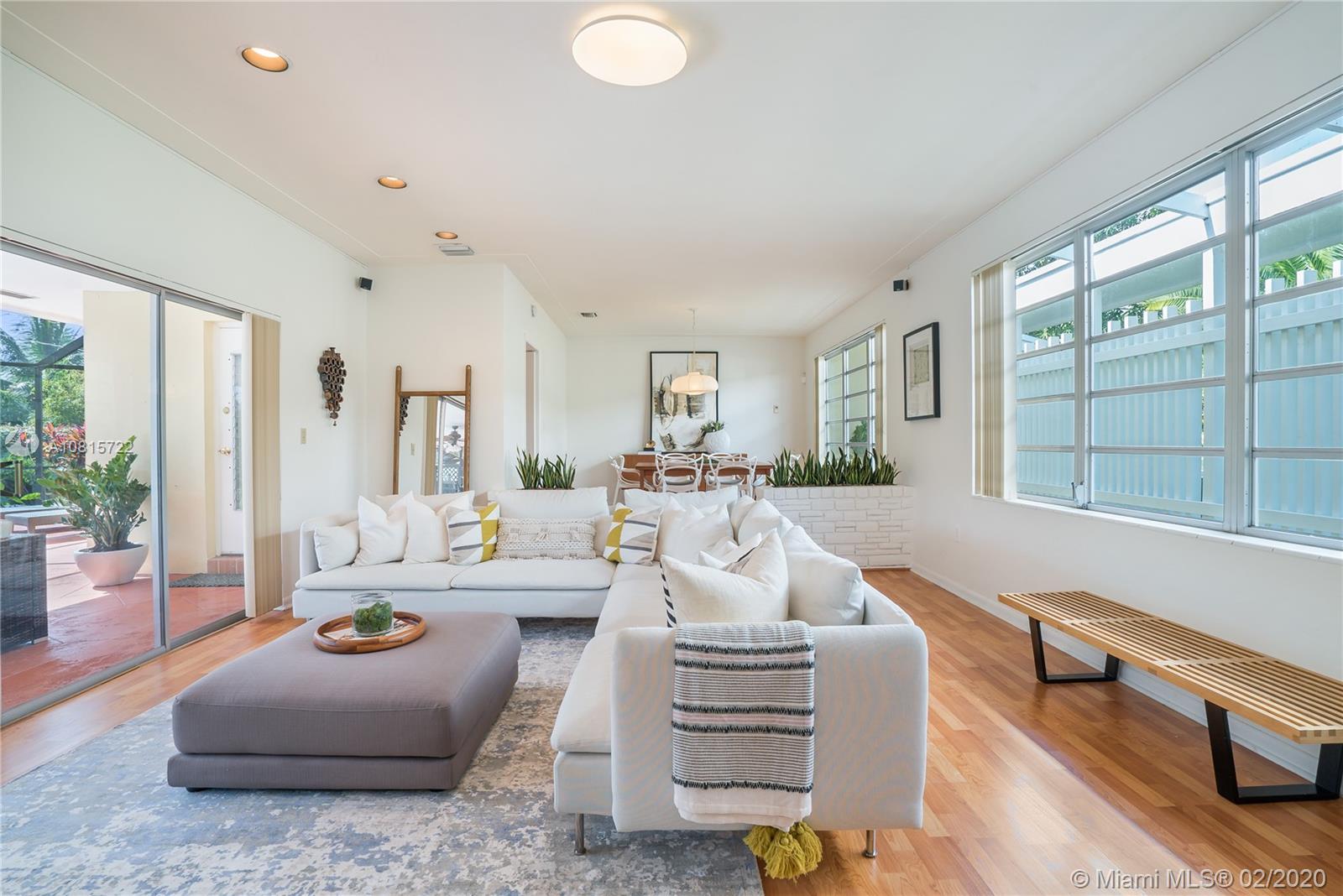 Charming 3/2 pool home with spacious 2-car garage. It is located on a quiet street yet close to a bus stop, schools, shops, restaurants and several parks. The living and the kitchen/family rooms open to a covered outside area and screened in pool deck for great entertainment flow. This house has many updates but waiting for new owner to put personal touch on master bathroom. Living areas have laminate floors, new tile in kitchen and terrazzo floors in bedroom wing (some damage from carpet removal).