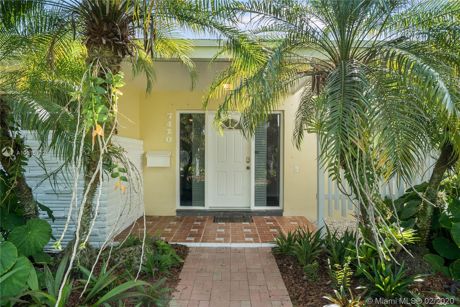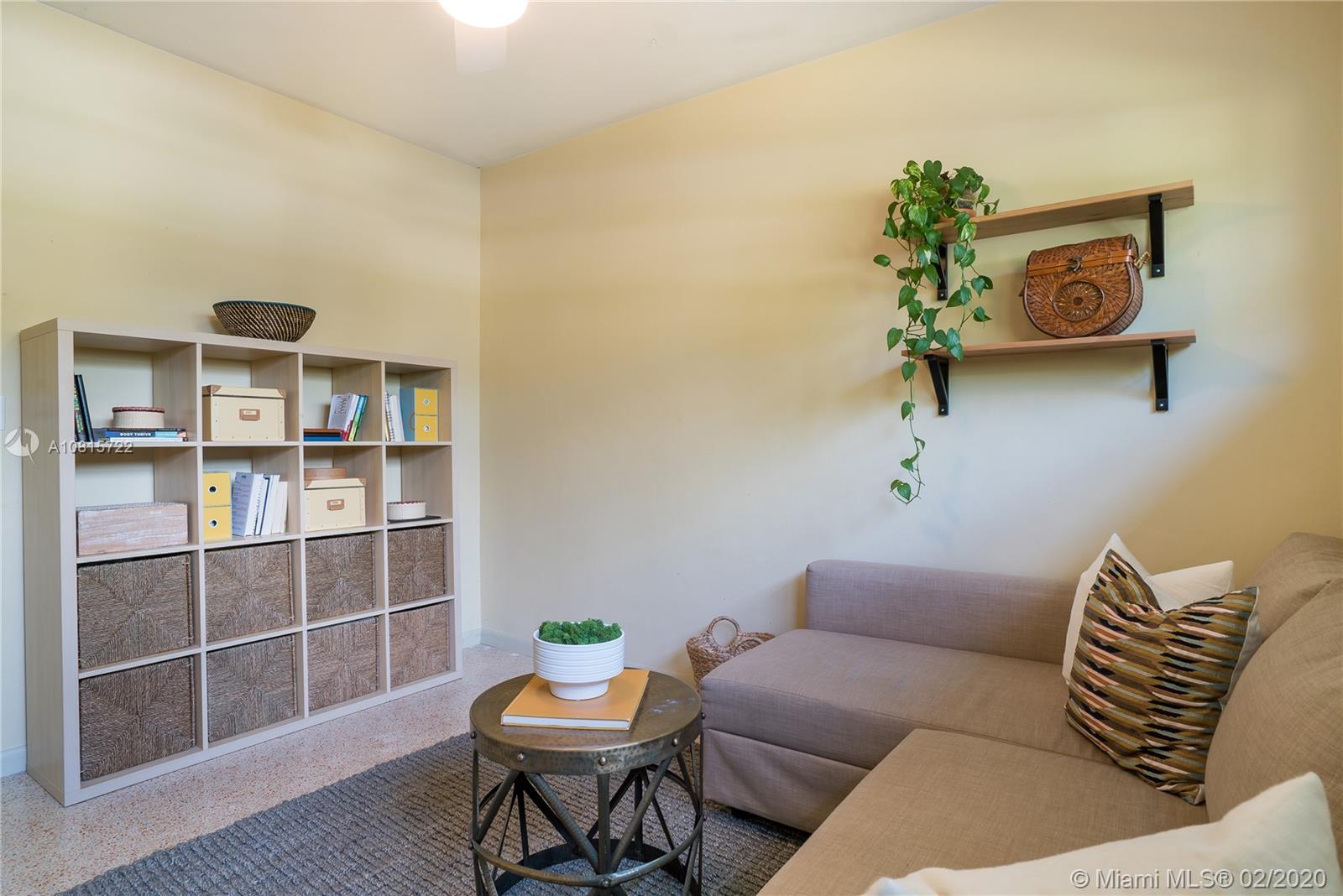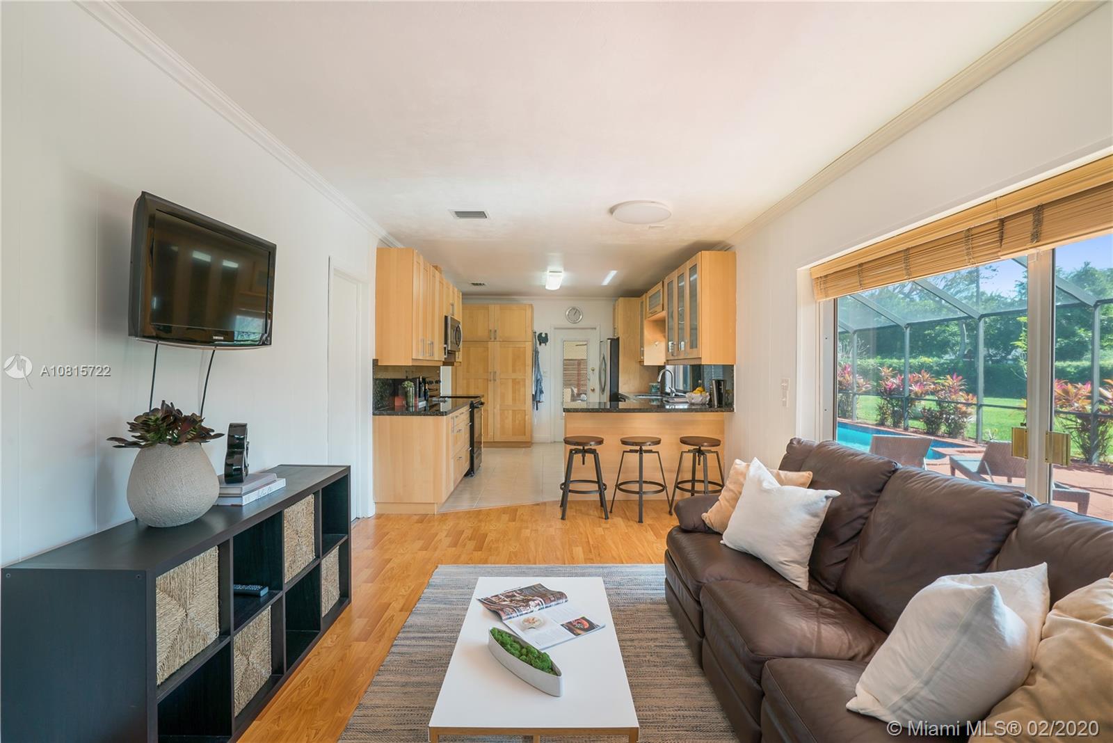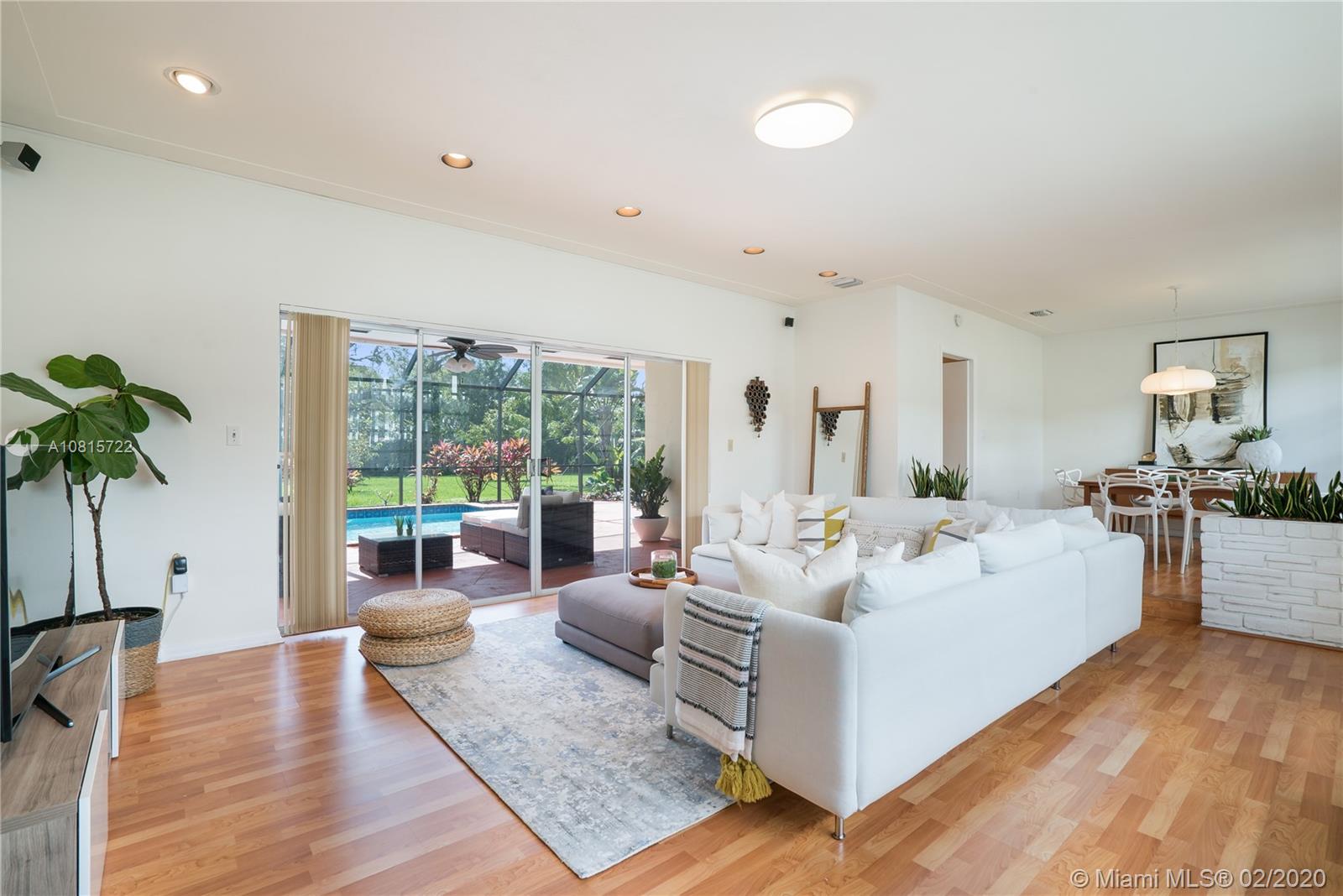 Charming 3/2 pool home with spacious 2-car garage. It is located on a quiet street yet close to a bus stop, schools, shops, restaurants and several parks. The living and the kitchen/family rooms open to a covered outside area and screened in pool deck for great entertainment flow. This house has many updates but waiting for new owner to put personal touch on master bathroom. Living areas have laminate floors, new tile in kitchen and terrazzo floors in bedroom wing (some damage from carpet removal).