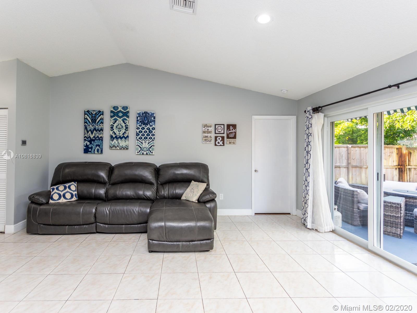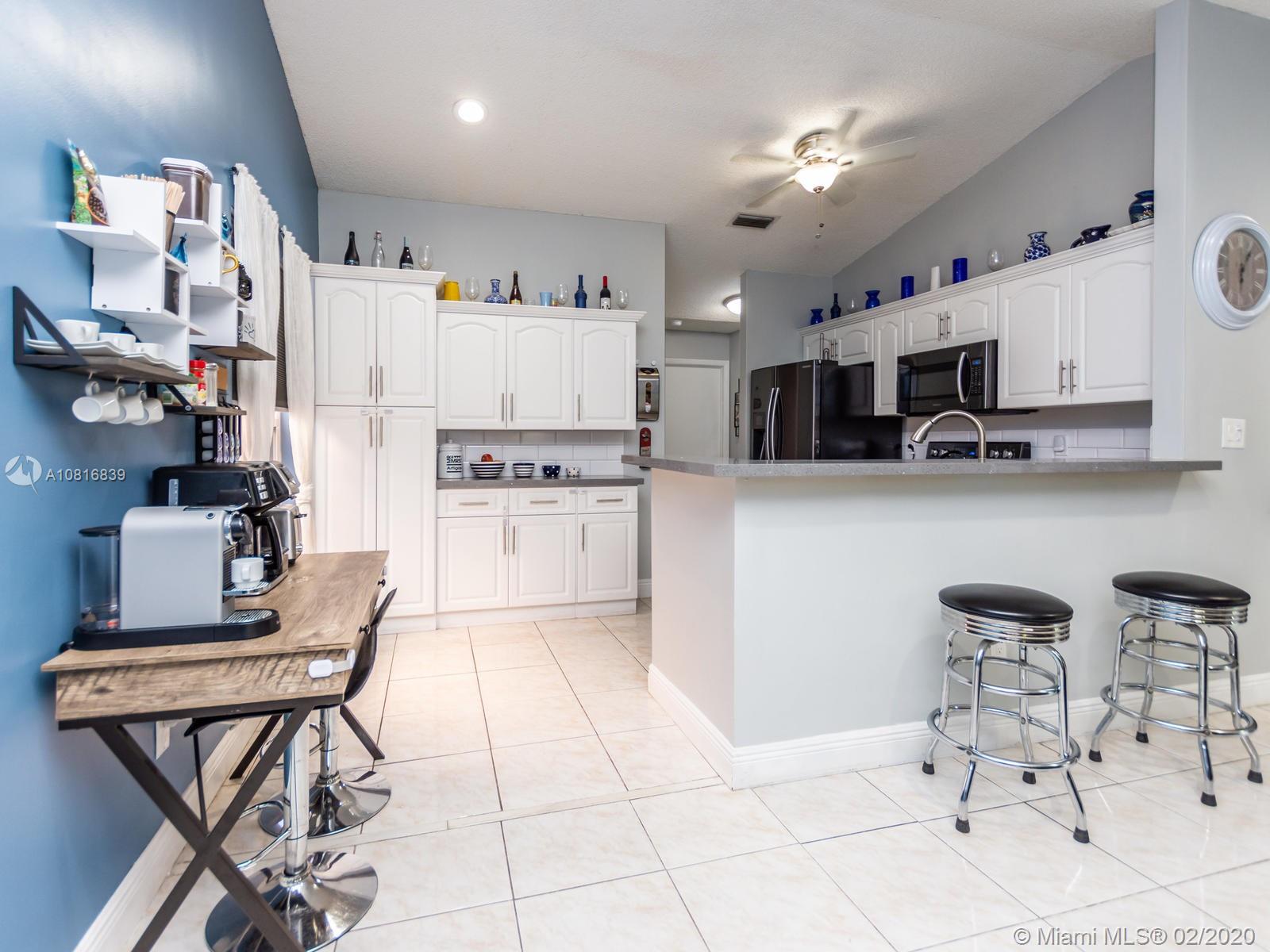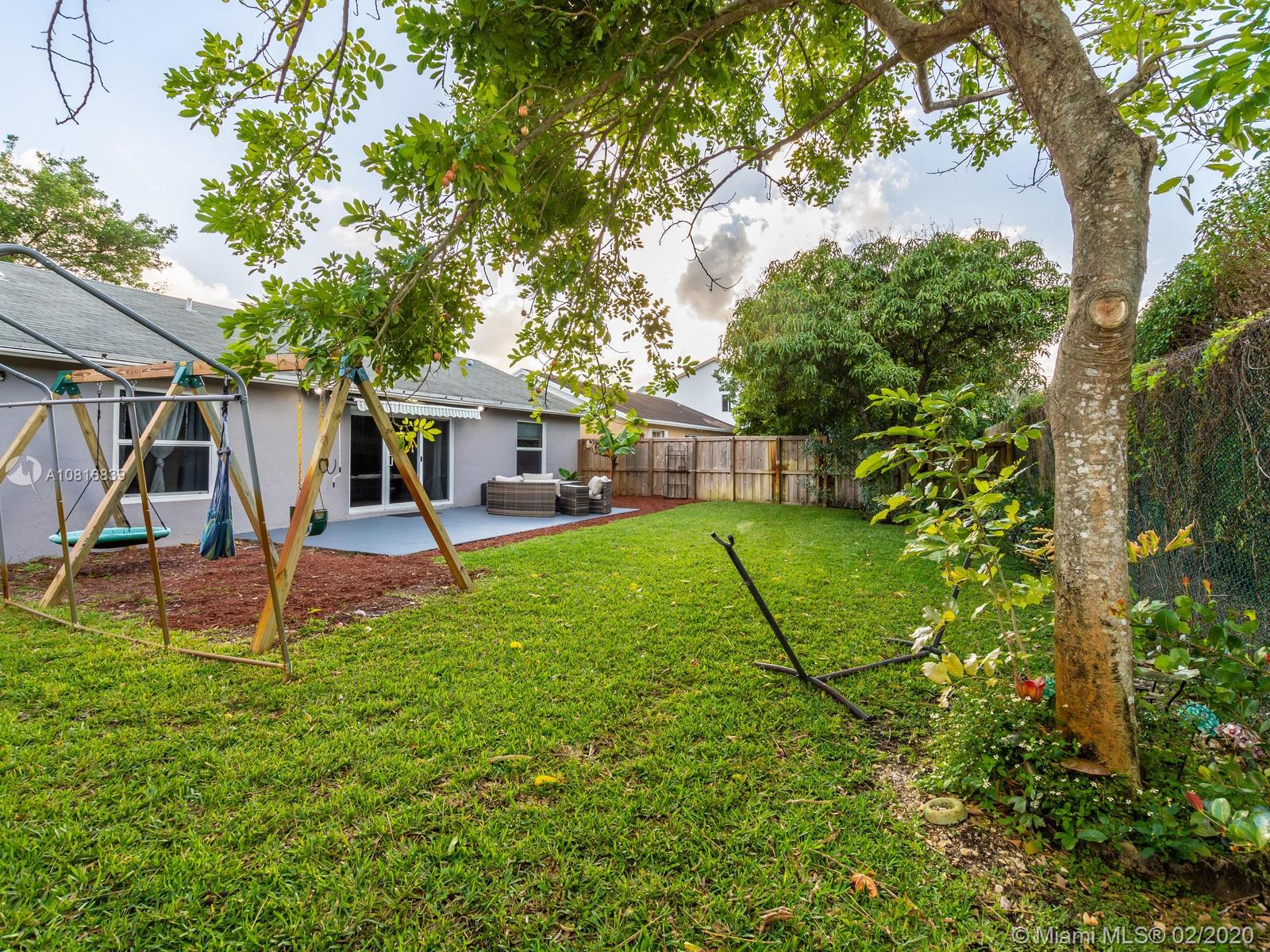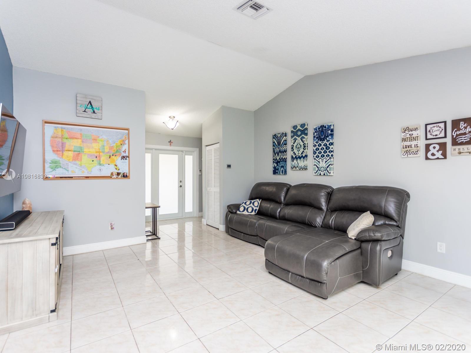3/2 in a quiet community, with many upgrades! Remodeled kitchen with beautiful quartz countertops and new stainless steel appliances, hurricane impact windows and doors, new A/C with Honeywell SMART Thermostat, large laundry room with new washer and dryer, bathroom sinks and cabinets updated, and converted garage with A/C that could be used as an office, gym, workshop, or game room. Tankless water heater and attic is insulated. Outside there is 10 ft retractable awning, new fence, and wooden swing set that will stay with the home. New sprinkler system and well pump, as well as fruit trees; aachee, mango, and banana, and pineapple. Room for a pool!