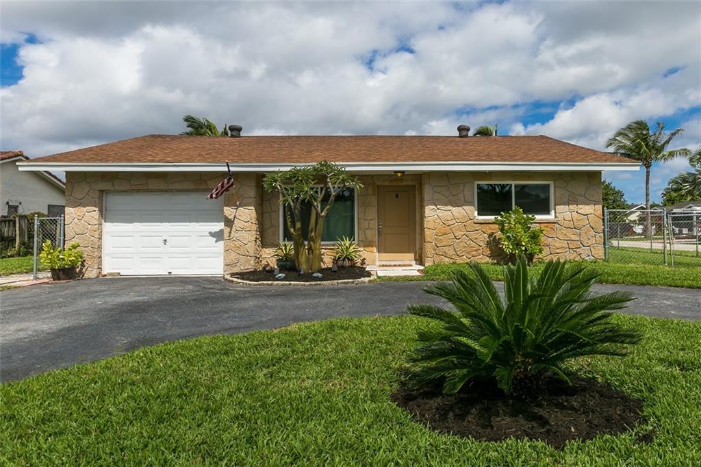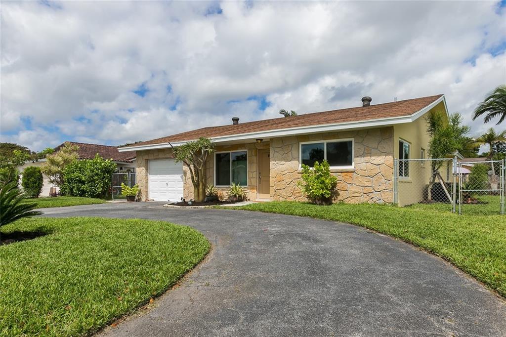 Wonderful single family 3/2 with garage on a large corner lot in Palm-Aire Village West. Just minutes from the beach and ...No HOA! Step in the door and feel at home! Nice size living area flows to the dining room and open updated kitchen. Or dine alfresco on the screened patio and enjoy extra living space, and the fenced back yard with room to romp--or for a pool. 3 bedrooms to the right of the home with the master in the back. Circular driveway for lots of parking room. Hurricane Impact windows and front door. 2 year old AC, updated electric panel. All ages welcome!