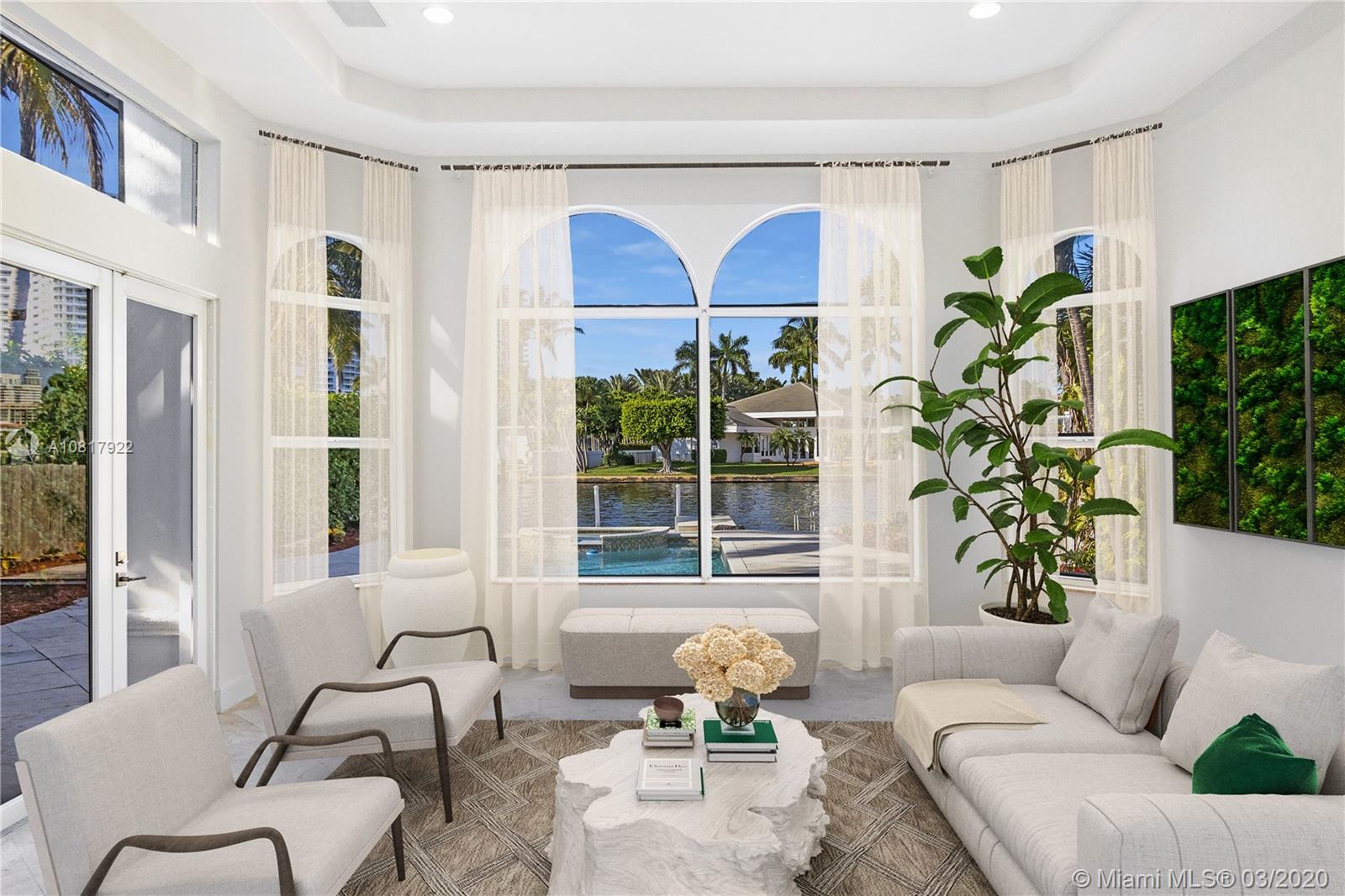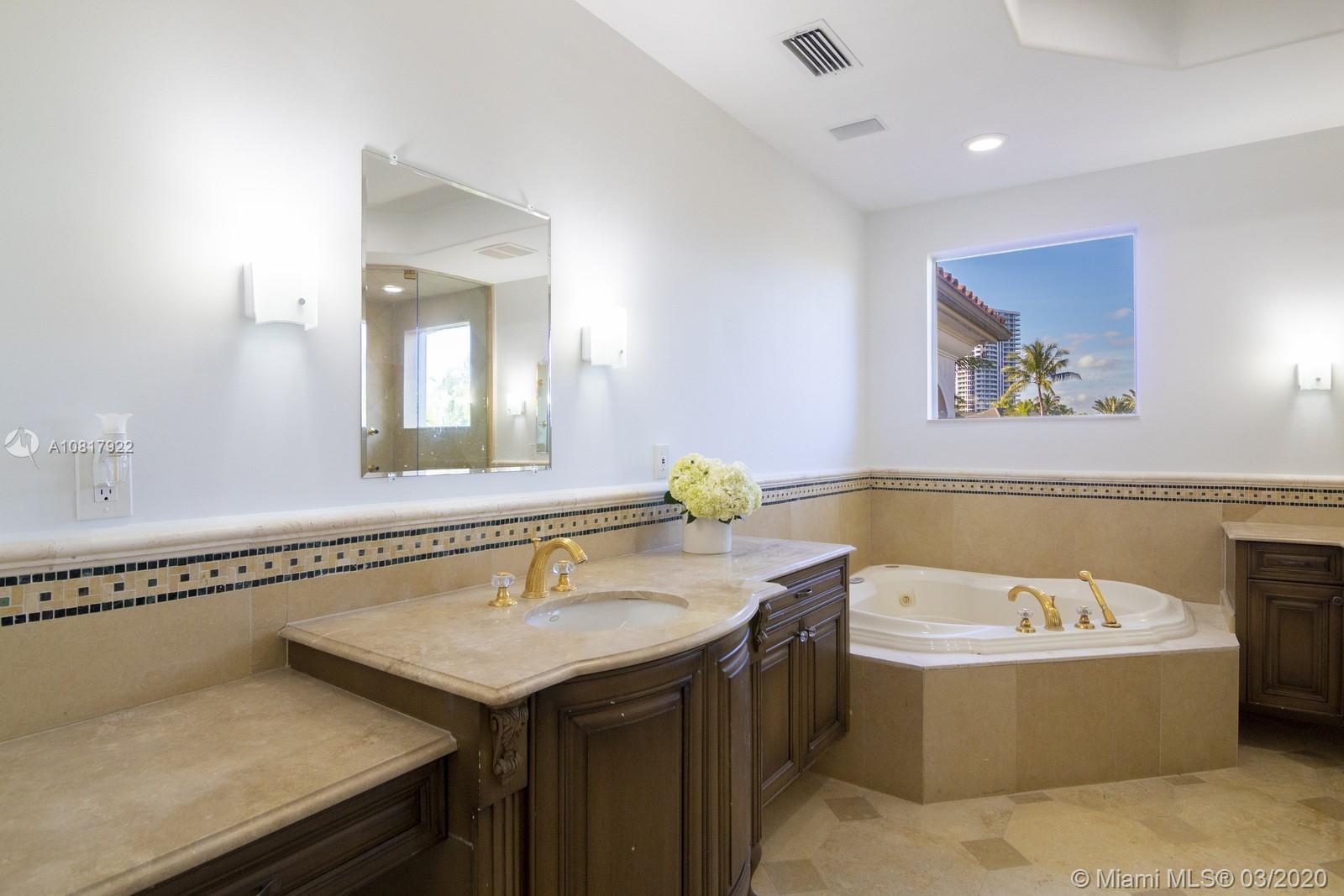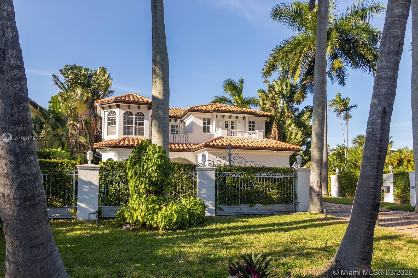 Luxury Mediterranean gated estate with Hollywood style pool and hot tub in the prestigious town of Golden Beach is ready for its new owners. The waterfront home feels airy with its high ceilings and spacious floorplan including five-bedrooms plus an office. With two-stories, the balconies offer attractive views of the Intracoastal and the tropical manicured park across the street. Located on a quiet street off North Parkway. Exclusive gated community w/ private beach for residents & their guests. Has it all- tennis, basketball & volleyball courts, playground, beach pavilion, jogging paths, dog parks, city hall & private police force. No association fee!