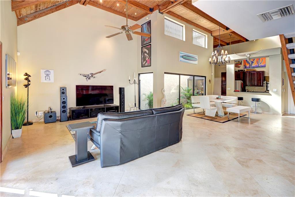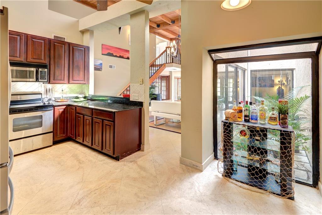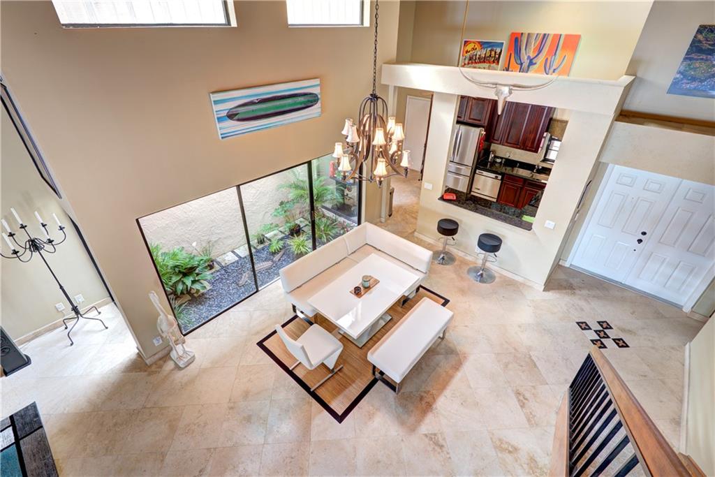 Light, bright, open and spacious....come see this one of a kind 3 bedroom, 2 bathroom, 1 car garage home. This home features a newer kitchen with stainless steel appliances. Tall ceilings with open beams. Private master bedroom/bathroom located upstairs with a lot of organized closet space. Beautifully finished master bathroom. Off the master bedroom enjoy a balcony over looking the peaceful lake. Open living space downstairs. Covered outdoor entertaining area. Washer and dryer in the unit. Accordian shutters.