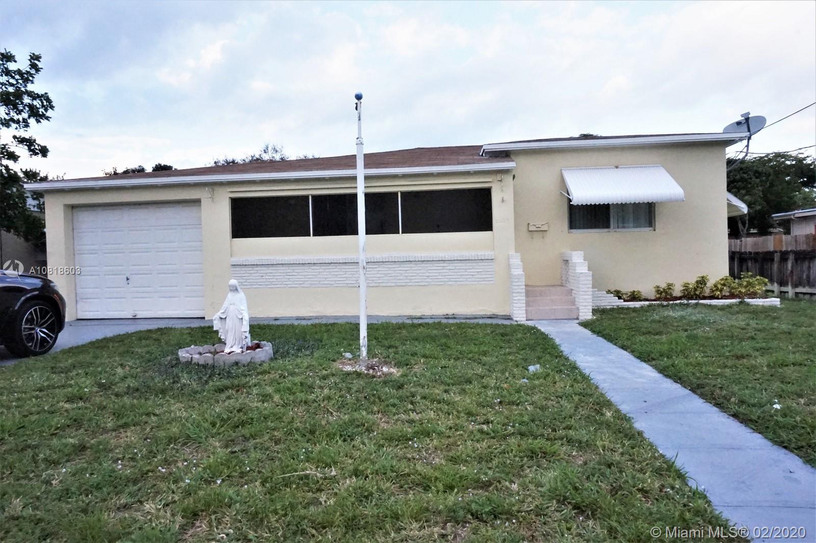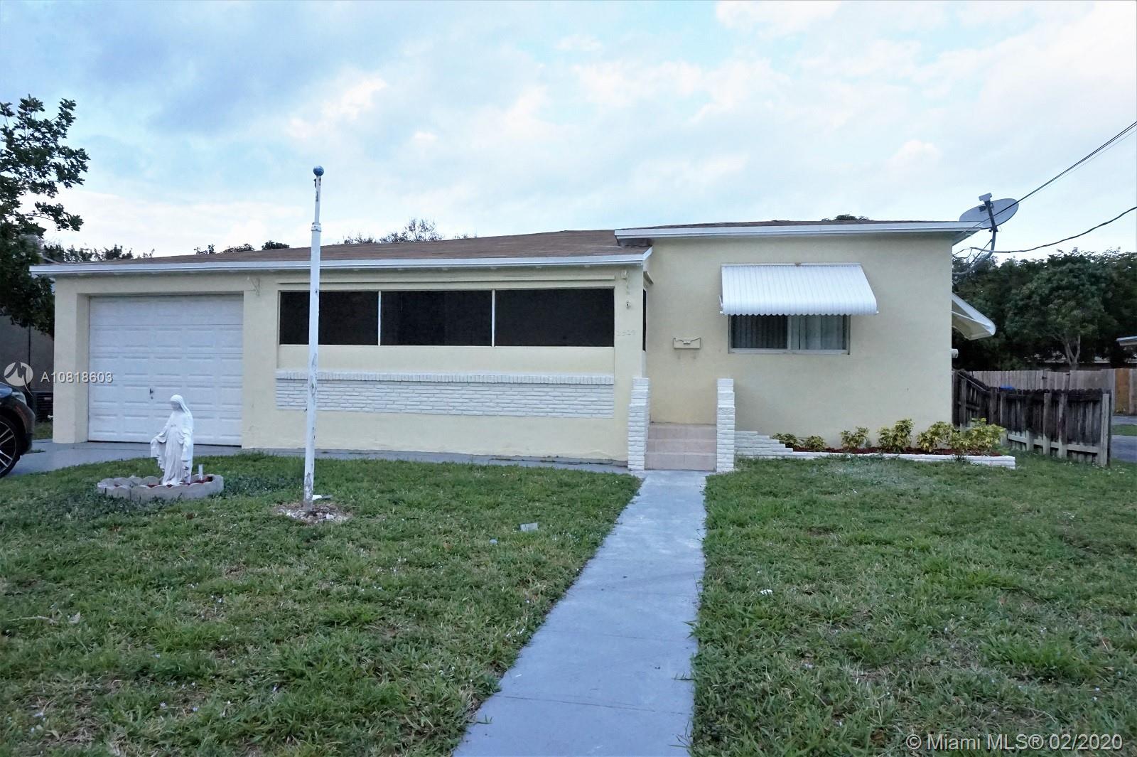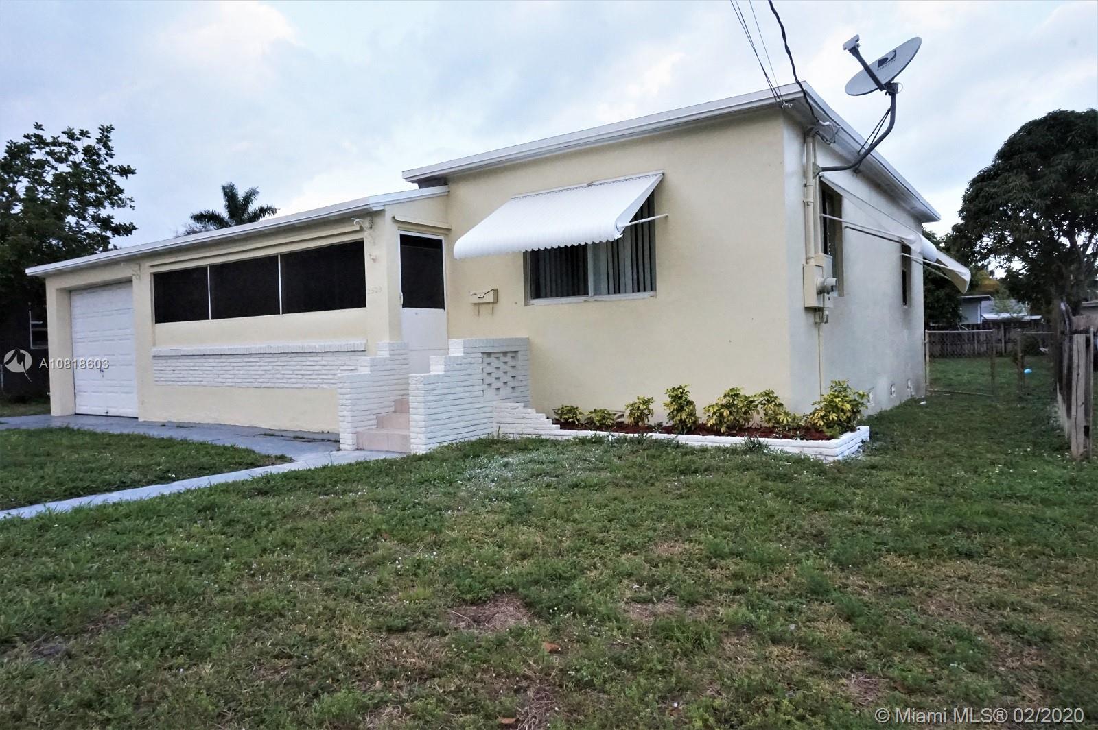 BEAUTIFULLY UPGRADED 2 BED 1 BATH 1 GARAGE WITH A HUGE FLORIDA ROOM. NEW SHINGLES ROOF, KITCHEN WITH WOOD CABINETS AND GRANITE COUNTER TOP WITH SS APPLIANCES. UPGRADED BATHROOM. SEPERATE LAUDRY AND STORAGE ROOM. HUGE BACKYARD. LOT OF SPACE TO BUILT YOUR POOL OR ADD ADDITIONAL UNITS TO EARN MORE INCOME. CLOSE TO CITY CENTRE AND DOWN TOWN HOLLYWOOD, BEACHES AND I95, ETC.