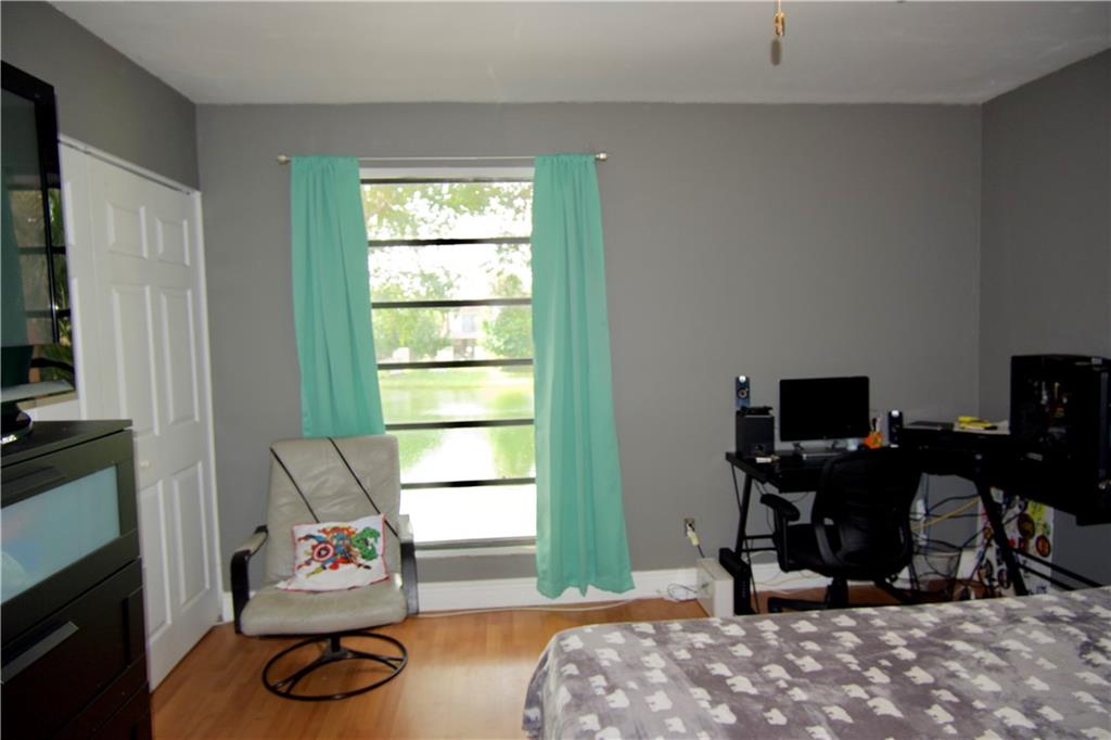 LOVELY LAKE FRONT UNIT WITH GORGEOUS VIEW OF THE LAKE*** Updated kitchen with stainless steel appliances, updated bathrooms, laundry room on second floor with washer and dryer. Two Large master suites with en-suite bathrooms. Walk in closet in one room and large wall to wall closet second master bedroom. Beautiful view of the lake from from the first floor, and the master bedroom. Screened in porch with plenty of trees that provide shade. High impact windows on first floor. Unit is walking distance from the community pool.