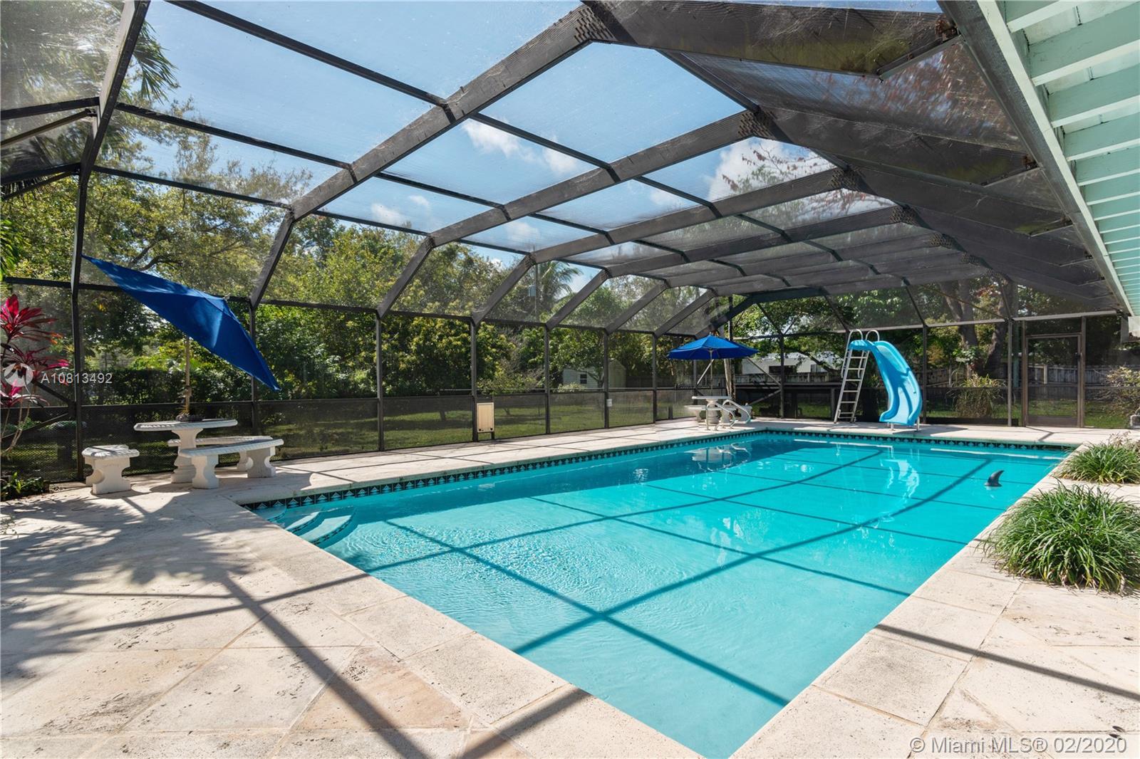 Fabulous pool home situated on a beautiful HUGE lush acre lot (39,000 sq ft) on quiet , friendly, low traffic street amongst newly constructed high-end homes. Home offers: high impact windows & doors including garage. New roof (50k) with high UV reflective tiles/ insulation. Modern chef's kitchen with custom pull out cabinets, lighting, top of line appliances and artist rendered back splash. Gas stove/oven and BBQ with underground gas line. Completely updated electrical (2011). 220v Tesla charge port. Beautiful back yard with fantastic trees , landscaping , fencing, great sprinkler system and fruit trees (mango, avocado, lychee, mamey, citrus ) . Large 8 ft 40x20 pool, resurfaced with diamond brite. Additional space that can be used for office/den /gym or bedroom. Easy to show!