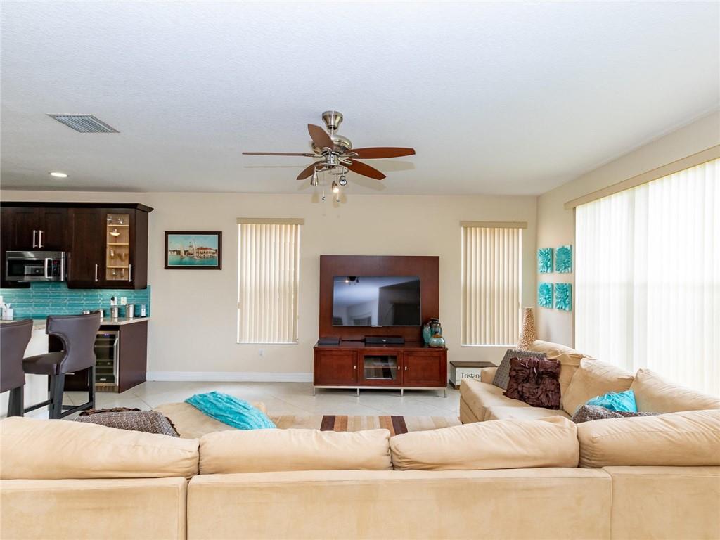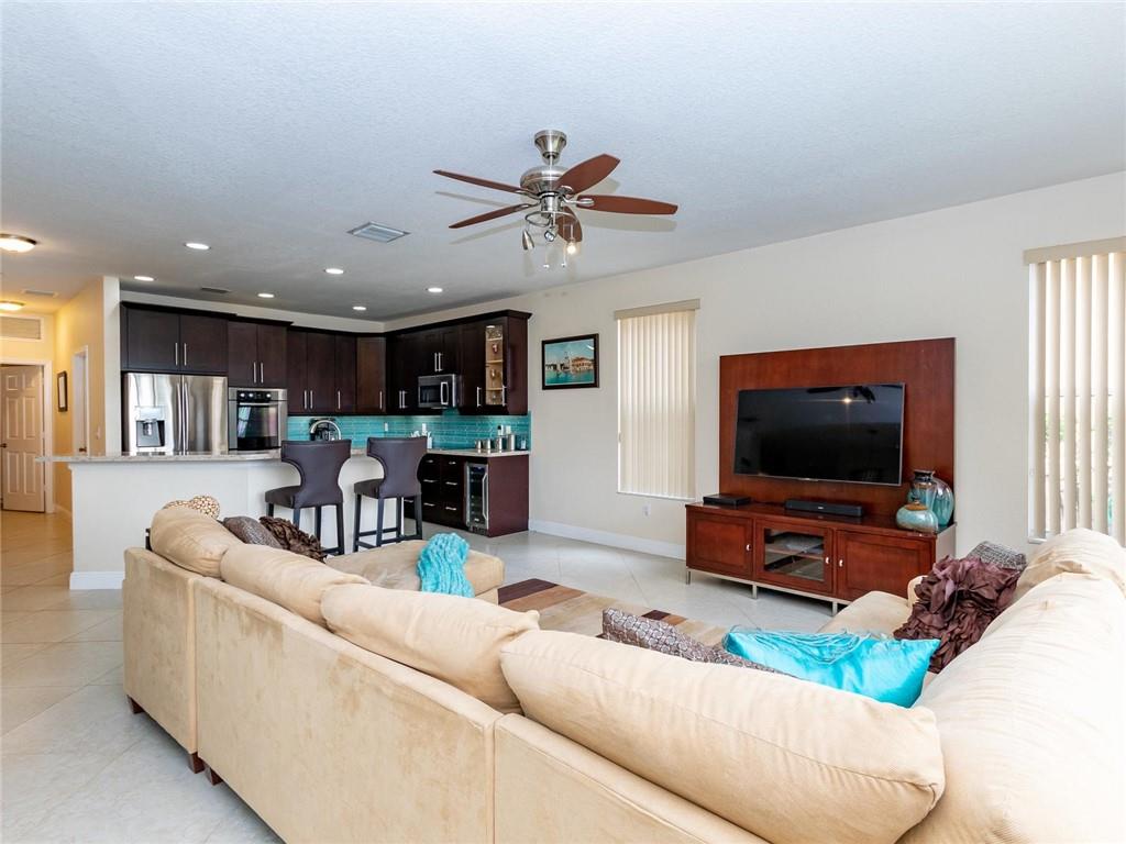 This remodeled 2 story in a 24 hr guard gated community features a great open floor plan, 6 full bedrooms, 4 baths & 3 car garage. Over $100k in upgrades. Largest model in Silver Falls. Formal dining & living rm leading to new open kitchen with quartz countertops, walk in pantry & high end appliances. Spacious family room. French doors open to new private screened in porch/patio overlooking canal. 24x24 diagonal tile. 1 full bedroom/1 new bath on the 1st floor. Oversized master bedroom suite with sitting area, fully renovated bathroom with his & hers vanities, 2 custom walk in closets & dressing room. Laundry rm downstairs. 2 Rheem 16 seer A/Cs 2014. Plenty of room for a pool & swing set. Maintenance fees include cable, recreation, pool, dog walking trails. Great family neighborhood.