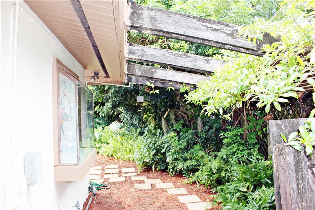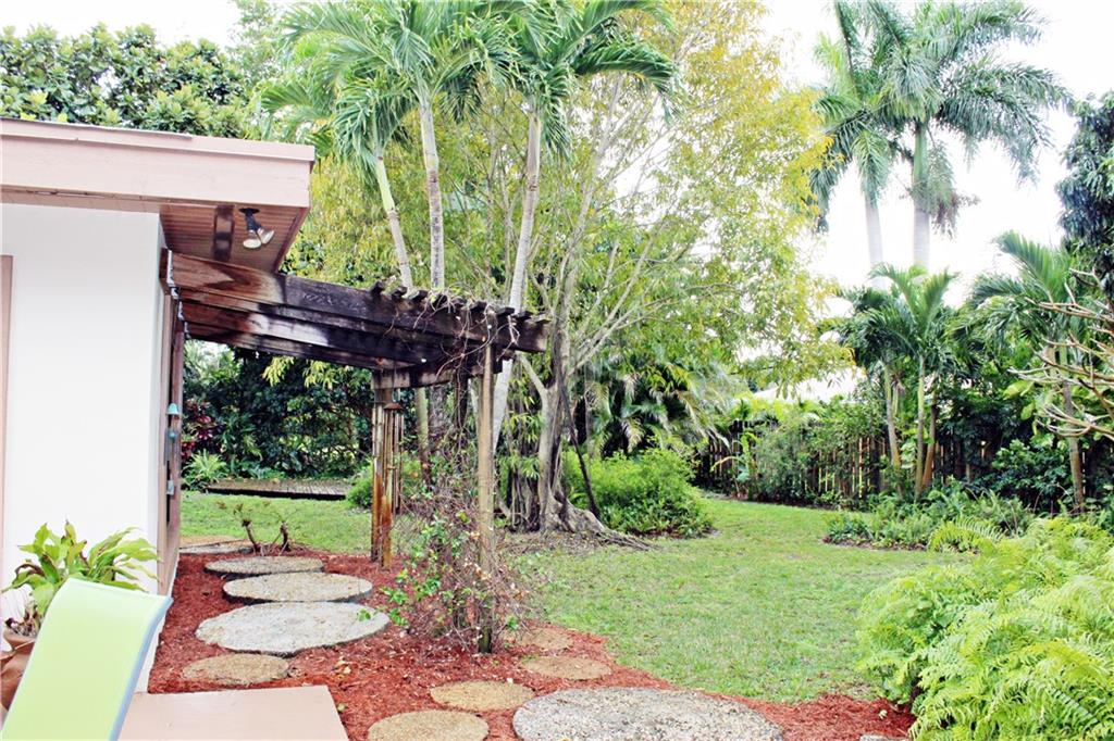 Nice home, 3 bedroom 2 bathroom, in high-demand neighborhood of Plantation Gardens. NO HOA! One of the largest lots in the neighborhood. New flat roof over patio. Freshly painted, manicured landscaping. Proudly presenting this elegant home of a South Floridan Artist. Huge open floor plan with dedicated over sized laundry room and storage. Stunningly spacious with family room (Could be 4th bedroom). A must see unique property with a private backyard oasis paradise. Relax on one of the 3 patio decks. There are multiple areas for entertaining Look out the extended home garden windows onto over a third of an acre of tropical bliss. Large 2 car garage. House could use minor updating. Ready for new owner to make it their dream home!