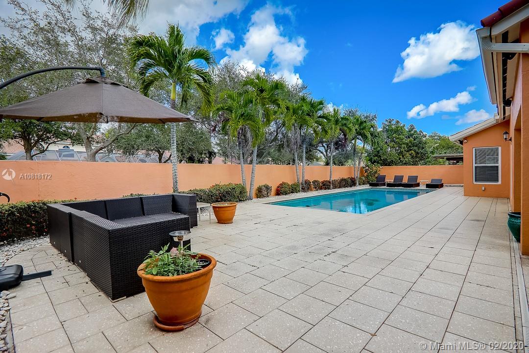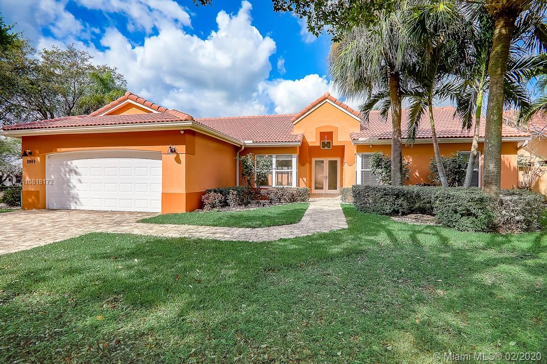 Impeccable turnkey property on large corner lot located on a cul de sac in the guard gated community of Lakes on the Green. Countless high end upgrades. Hurricane impact doors and windows for convenience, piece of mind, and significant savings on homeowners insurance. Remodeled kitchen with SS appliances. Remodeled bathrooms. Home is smartwired for wall mounted tvs in bedrooms. Carrier AC system. Finished garage with storage. Tank-less water heater. New roof in 2012. Fully landscaped with sprinkler system. Video security system. ADT system also installed. Paver driveway installed in 2012 with side entrance to oversize heated, salt system pool with fountains, underwater colored lighting, and surrounded by crushed Sea Shell Cool Deck tile.
