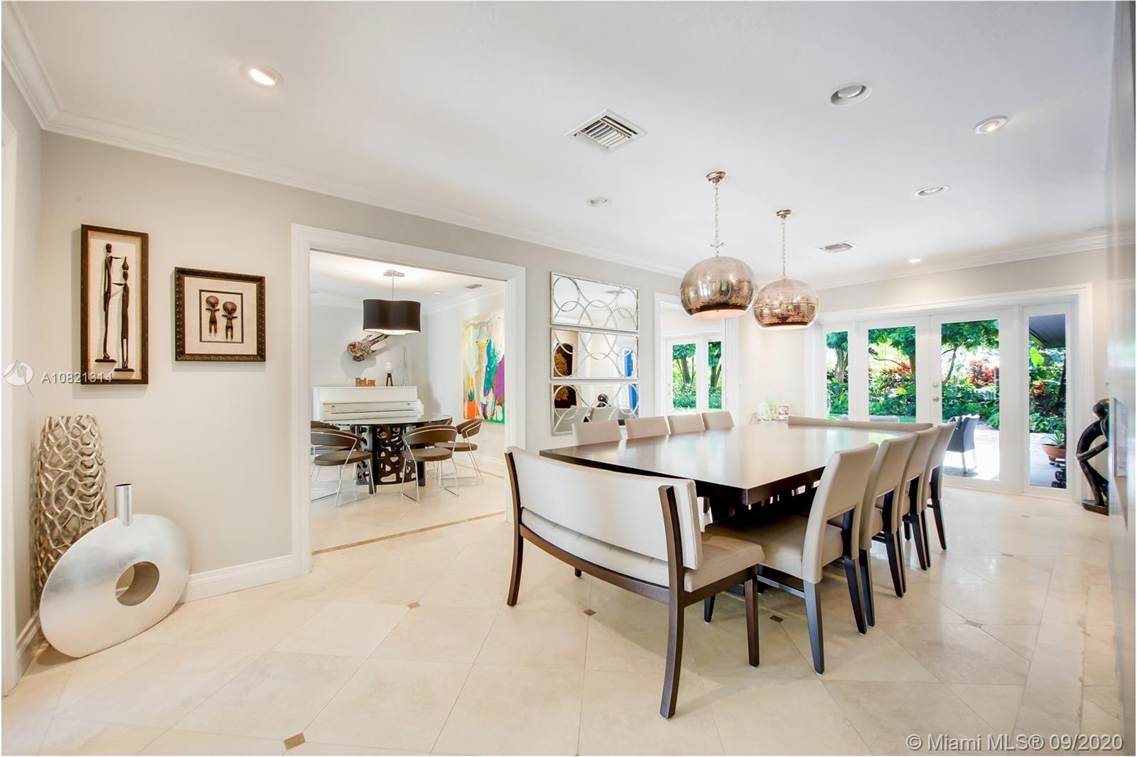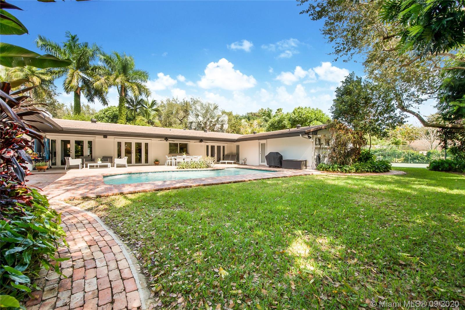 North Pinecrest updated inviting Estate, one level split plan w/5 Bedrooms, 4 full baths 2 half baths. This home is perfect for your large family & entertaining. Updated with impact windows & doors, modern finishes in bathrooms and throughout. Natural light provided by the many doors surrounding the sparkling pool. Landscaping & exterior lighting are impressive and glorious day or night. Estate is finished with a north/south tennis court for everyone's enjoyment. Beautiful professionally landscaped lot.