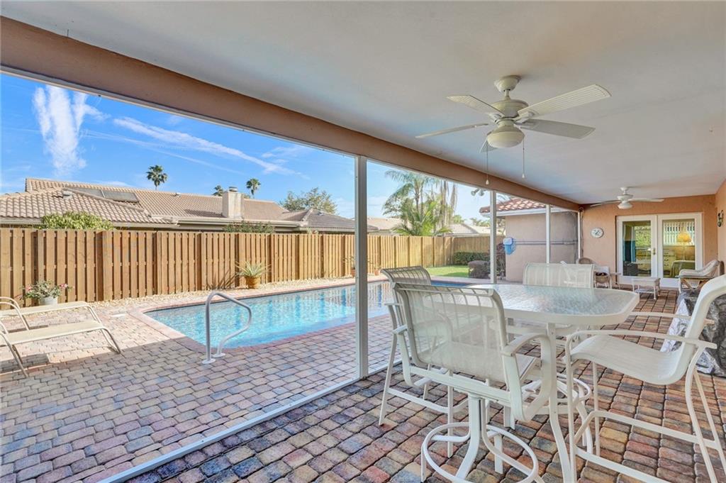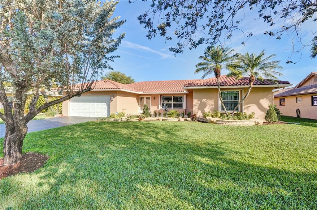 Exceptional value, and casual Coral Springs living at its finest! A beautiful pool view greets you upon entering this immaculately maintained and spacious four bedrooms, two baths home. The open floorplan, screened in patio, and private pool areas are exceptionally well designed for entertaining. The great room and very large kitchen features pool views, designer porcelain tile, a center island, granite counter tops, beautiful white cabinetry, and updated lighting. The spacious master bedroom suite includes updated bathroom cabinetry, a walk in closet, and a beautiful pool view. Other recent improvements include fresh paint inside and out, high-impact windows, doors, and garage door, a Diamond Brite pool finish, renovated guest bathroom, and exquisite landscaping. Come enjoy!