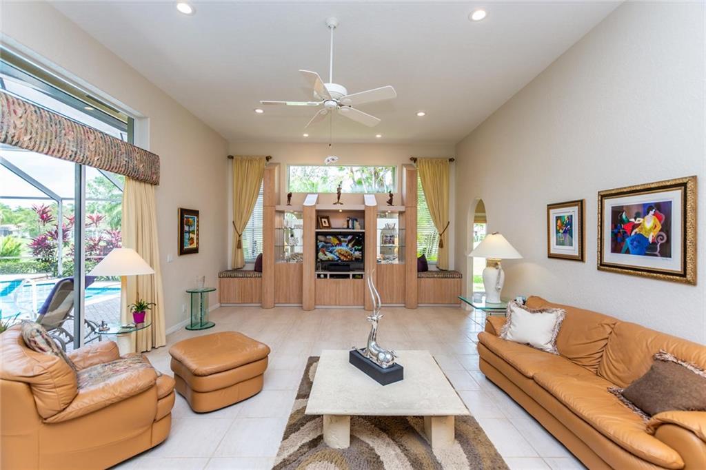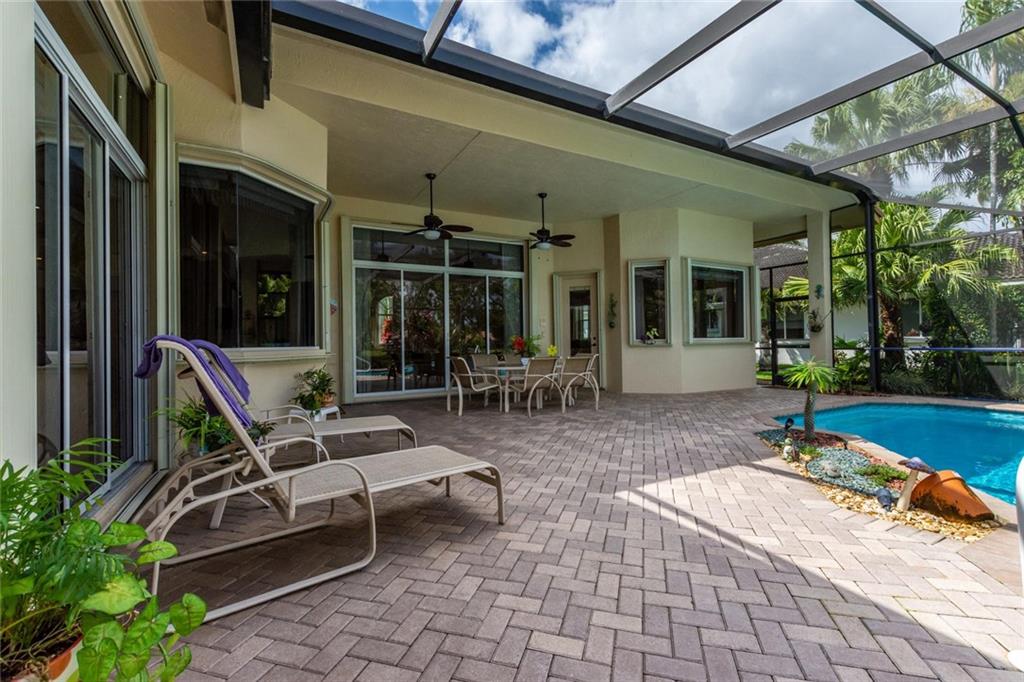 GOLF COURSE BEAUTY!! 4 BEDROOMS+OFFICE/3 FULL BATHS OPEN, SPACIOUS LIVING AREAS ALL OVERLOOKING THE AMAZING SCREENED-IN POOL/PATIO AND GOLF! NEW ROOF, 2 NEWER A/C UNITS, ACCORDION SHUTTERS,HIGH VOLUME CEILINGS, TRIPLE SPLIT FLOOR PLAN WITH NEUTRAL FLOORING THROUGHOUT. CUSTOM KITCHEN, 42" CABINETS, PULLOUTS, GRANITE COUNTERS & BACKSPLASH, CENTER WORK ISLAND & LARGE SNACK COUNTER. MASTER FEATURES A LARGE SITTING AREA, 2 CUSTOM WALK-IN CLOSETS, MARBLE FLOORS IN BATH WITH SEPARATE SHOWER & TUB. ORIGINAL OWNER HAS MAINTAINED IMPECCABLY. CENTRAL VAC, FINISHED GARAGE WITH EXTRA STORAGE, POOL RECENTLY RESURFACED, PAVER DRIVE/WALKWAY/PATIO.