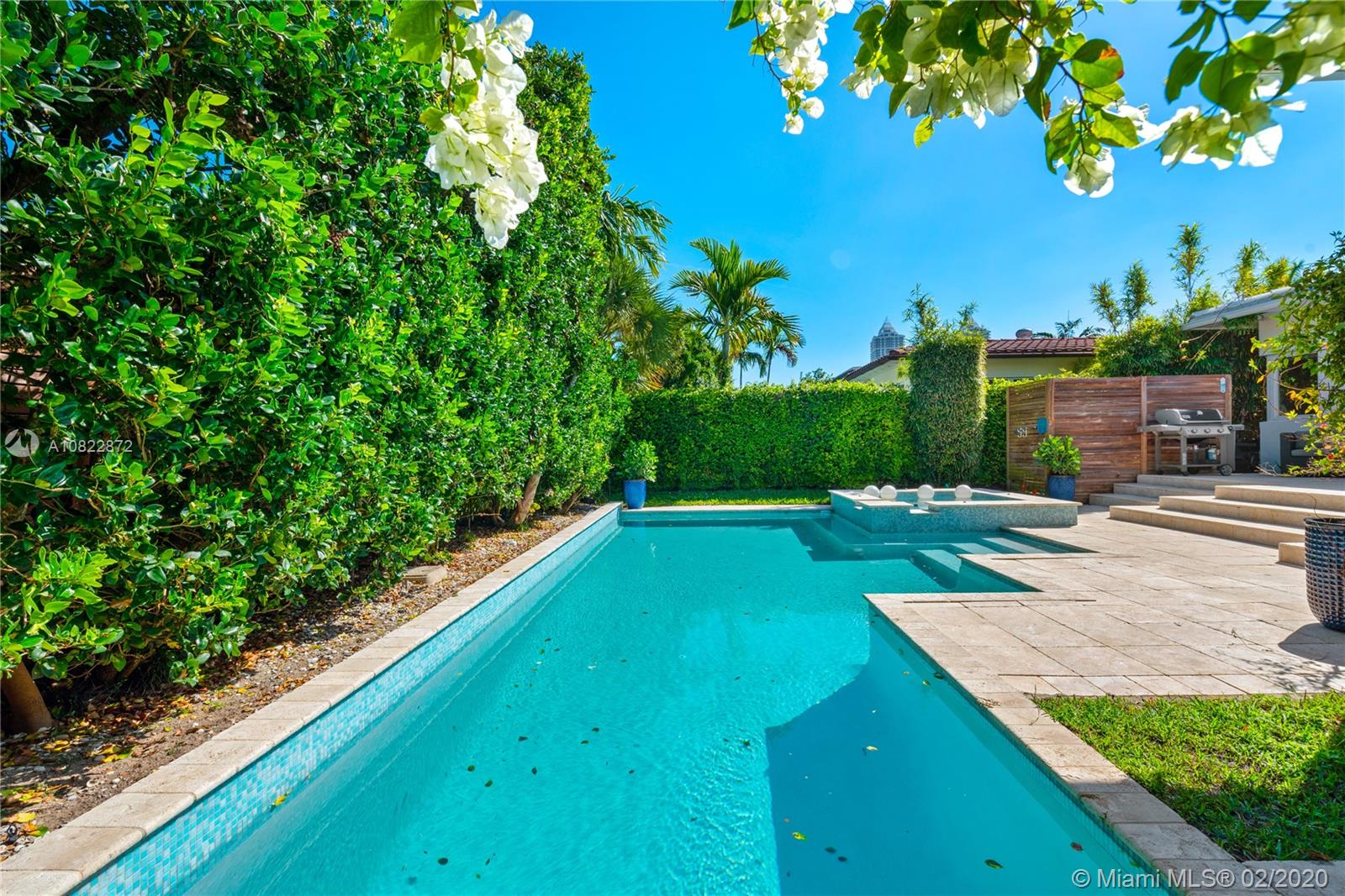 Art Deco Chic Family Residence in coveted Lakeview neighborhood. Flooded w/ natural light & lush tropical landscaping, relish a swim in your heated lap pool & built-in spa, or private outdoor dining on your terrace w/ electric sun canopy. All bedrooms w/ en-suite bathrooms, impact windows & doors, remodeled kitchen w/ granite countertops, gas & stainless-steel appliances. Open-concept living & dining, terrazzo flooring, & elevated ceilings. 2 rooms feature hardwood flooring & the third bedroom remodeled w/ contemporary bathroom, porcelain flooring, & custom shades. Quiet Mid-Beach location great for kids & pets, close to beaches, LGCC, JCC, Fisher Park, hip dining & shopping! Easy commute to highways, MIA, downtown,& great schools! Matterport @ my.matterport.com/show/?m=Xm1v81CBbnF&mls=1