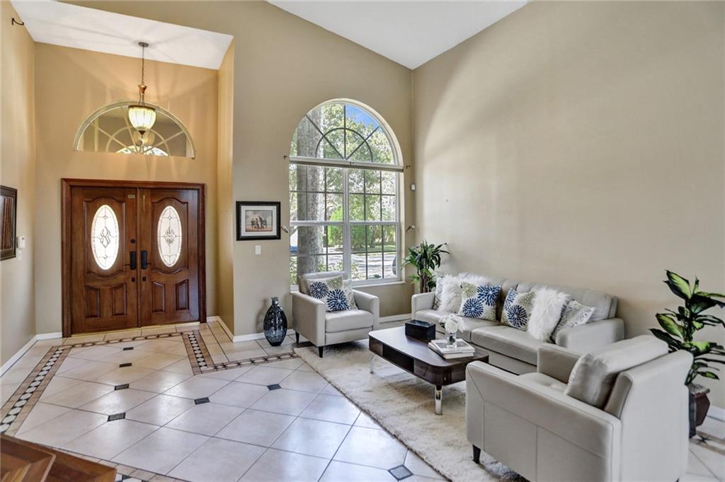 Incredible opportunity to purchase this 4 bedroom 3 bath home with a pool and hurricane impact glass windows. You'll love this beautiful gourmet kitchen with upgraded cabinets & stainless appliances that opens to a large family room. Spacious Master ensuite with huge walk-in closet (custom cabinets), marble bathroom with frame-less shower & french doors leading to a screened balcony overlooking a fully fenced backyard with a luxurious salt water heated pool/spa. *AC 2015*. Professional landscaping with over $50,000 in Palm trees including Royal Palms. You'll find volume ceilings and spacious rooms plus hardwood floors upstairs. All 4 bedrooms + loft upstairs. Chapel Trail has 3 parks, tot lot, soccer/football fields, playground, & tennis courts. Near shopping, dining and A" rated schools.