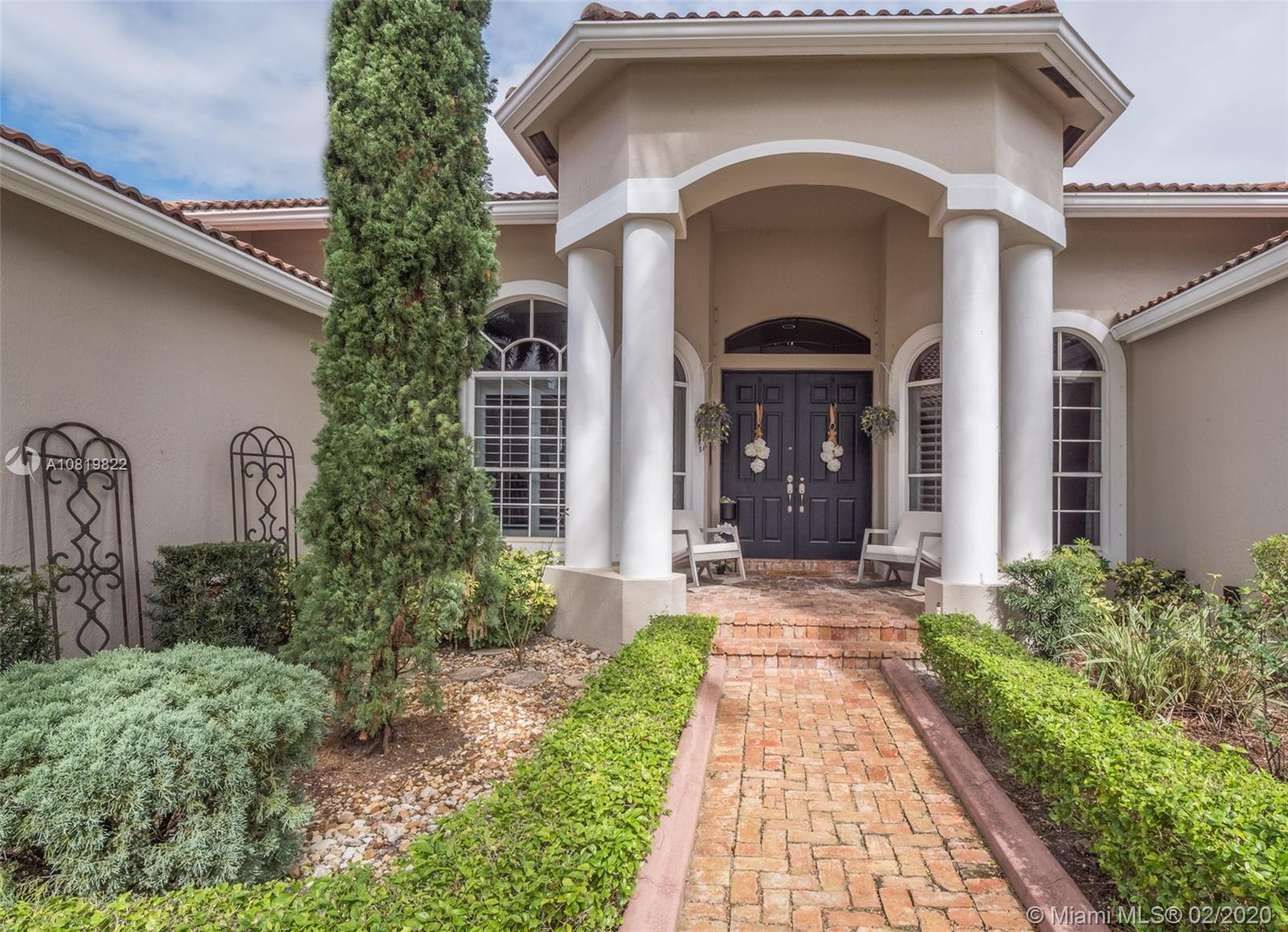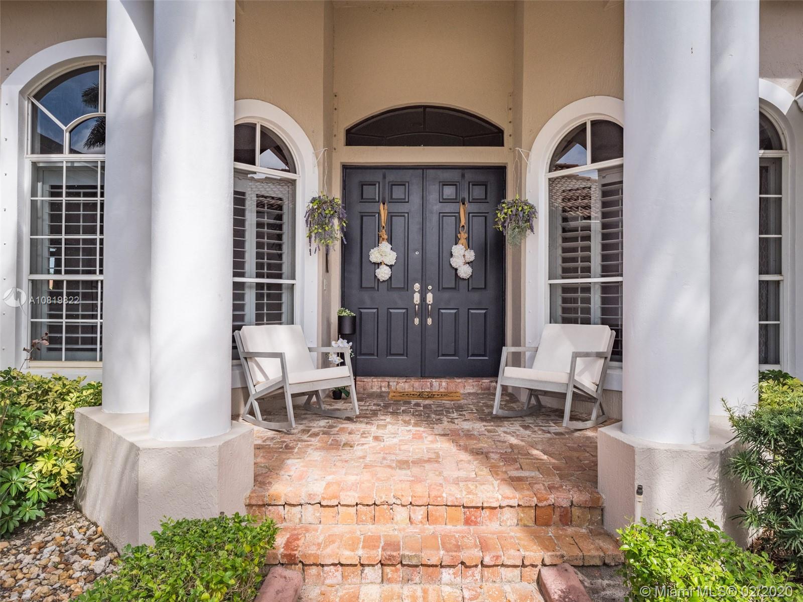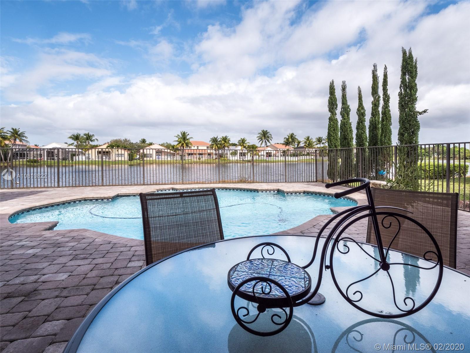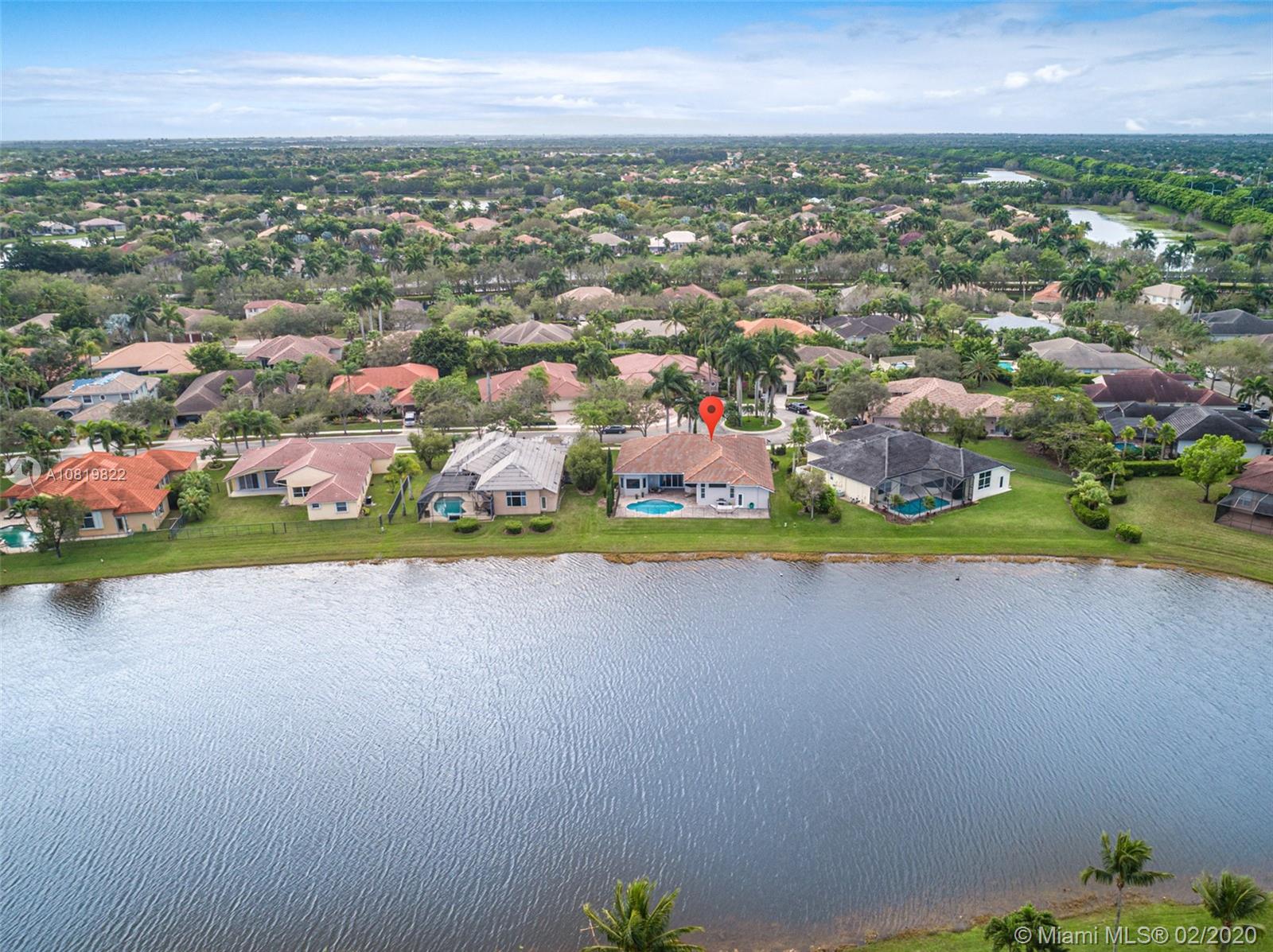 Check out our new 3D tour. Tucked on a quiet cul de sac street this custom built home features chicago brick driveway and walkway. This four bedroom plus office one story shows light and bright. Enjoy long lake views from expansive paver patio, remodeled pool with large overhang fully fenced yard. Neutral porcelain tile in living areas with soaring ceilings. Freshly painted interior. Enjoy contemporary white kitchen, granite countertops, center island and Stainless Steel appliances. Grand master bedroom with windows on water and pool. Master bath with roman tub, dual sinks and shower. Extensive crown molding. plantation shutters. Cabana bath and so much more.