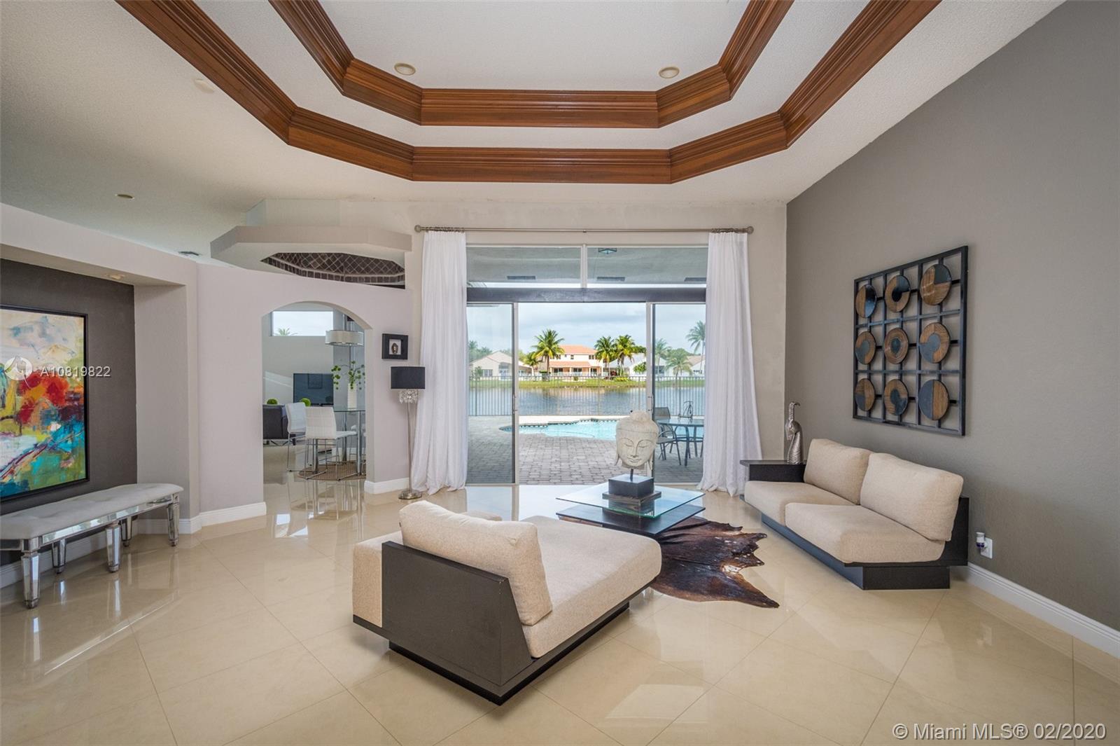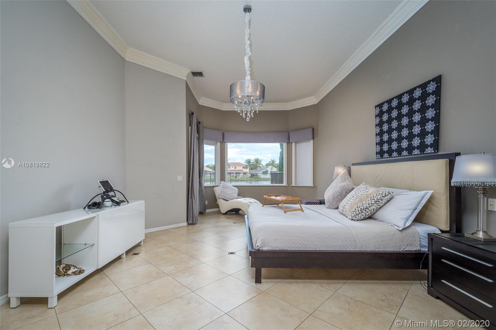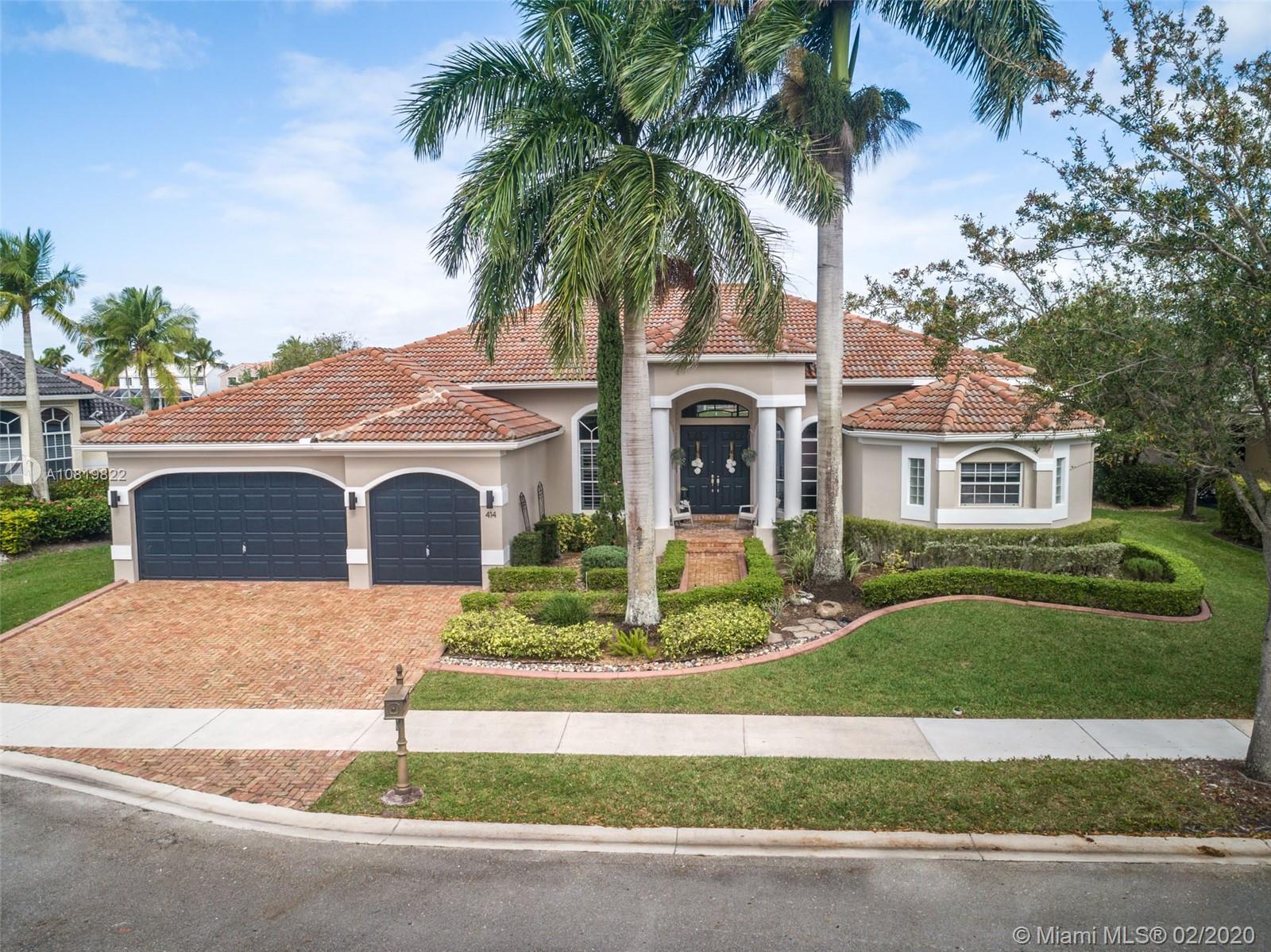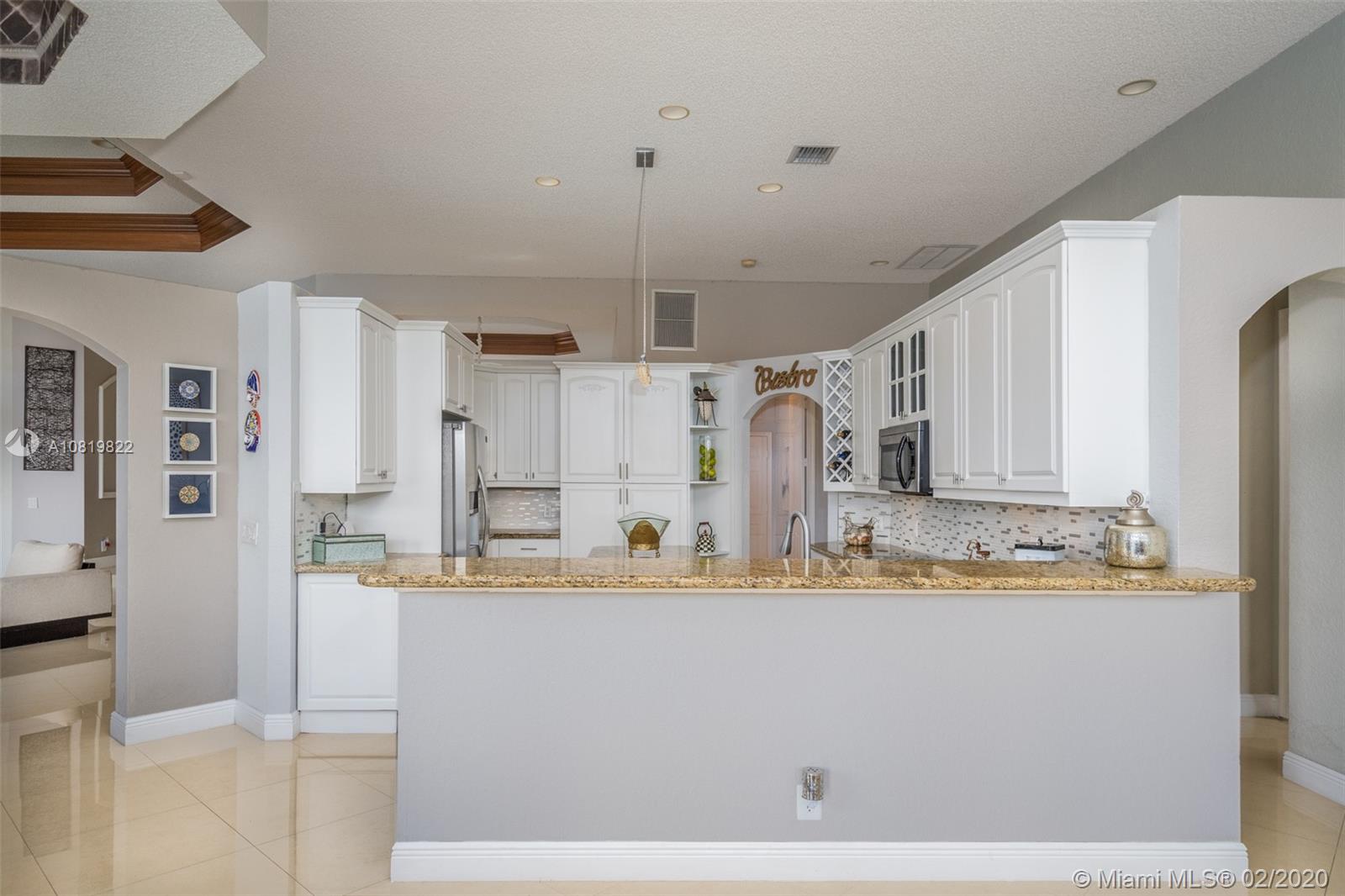 Check out our new 3D tour. Tucked on a quiet cul de sac street this custom built home features chicago brick driveway and walkway. This four bedroom plus office one story shows light and bright. Enjoy long lake views from expansive paver patio, remodeled pool with large overhang fully fenced yard. Neutral porcelain tile in living areas with soaring ceilings. Freshly painted interior. Enjoy contemporary white kitchen, granite countertops, center island and Stainless Steel appliances. Grand master bedroom with windows on water and pool. Master bath with roman tub, dual sinks and shower. Extensive crown molding. plantation shutters. Cabana bath and so much more.