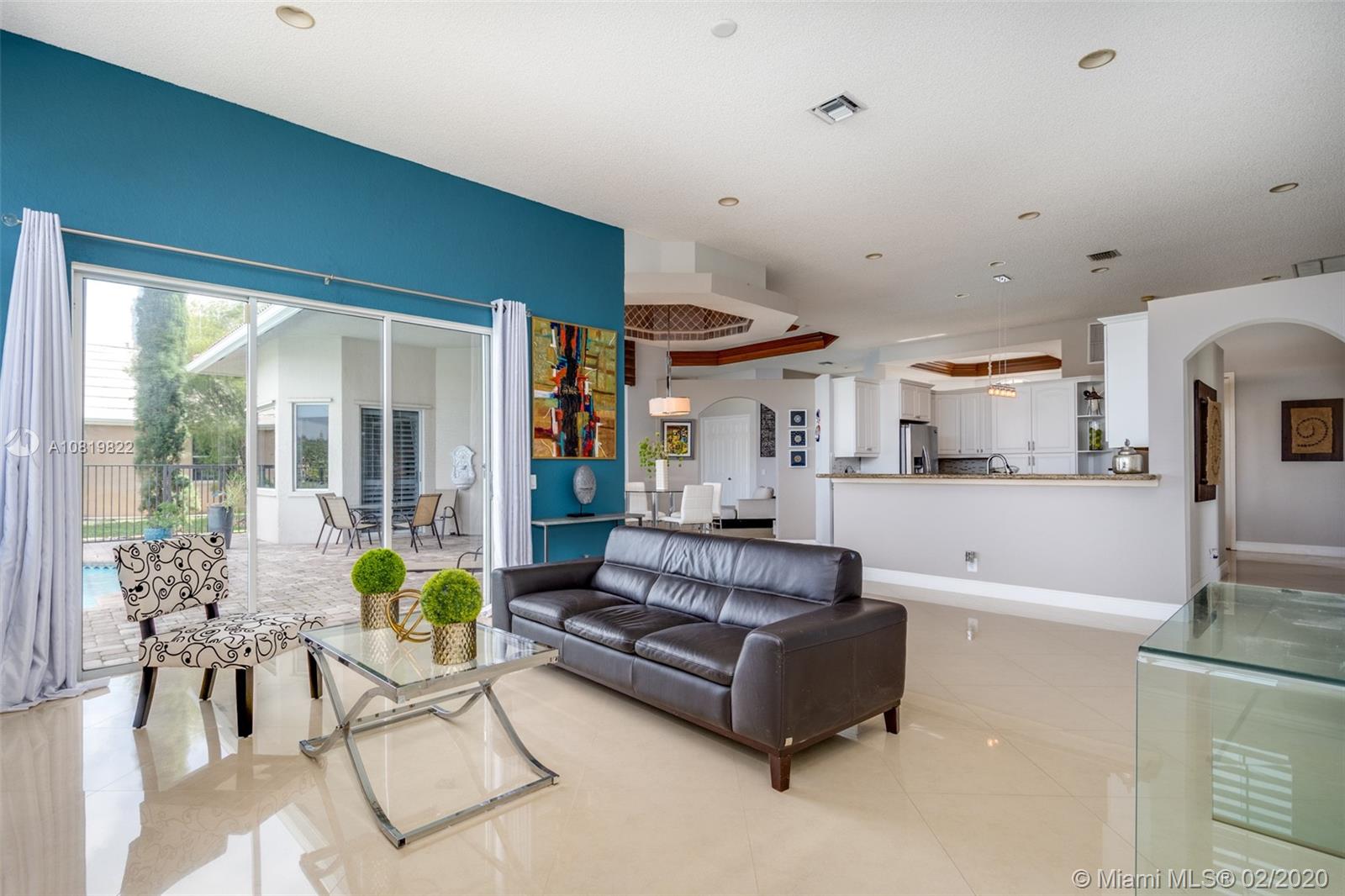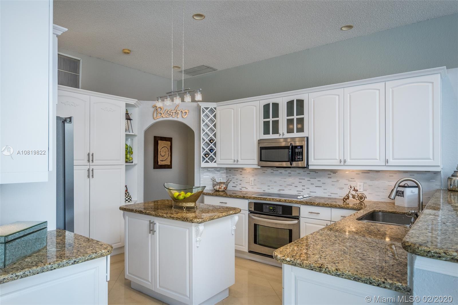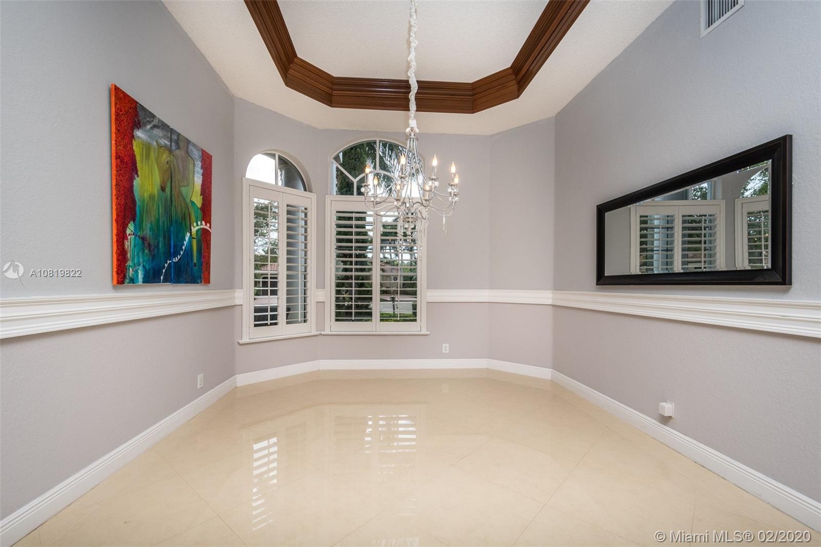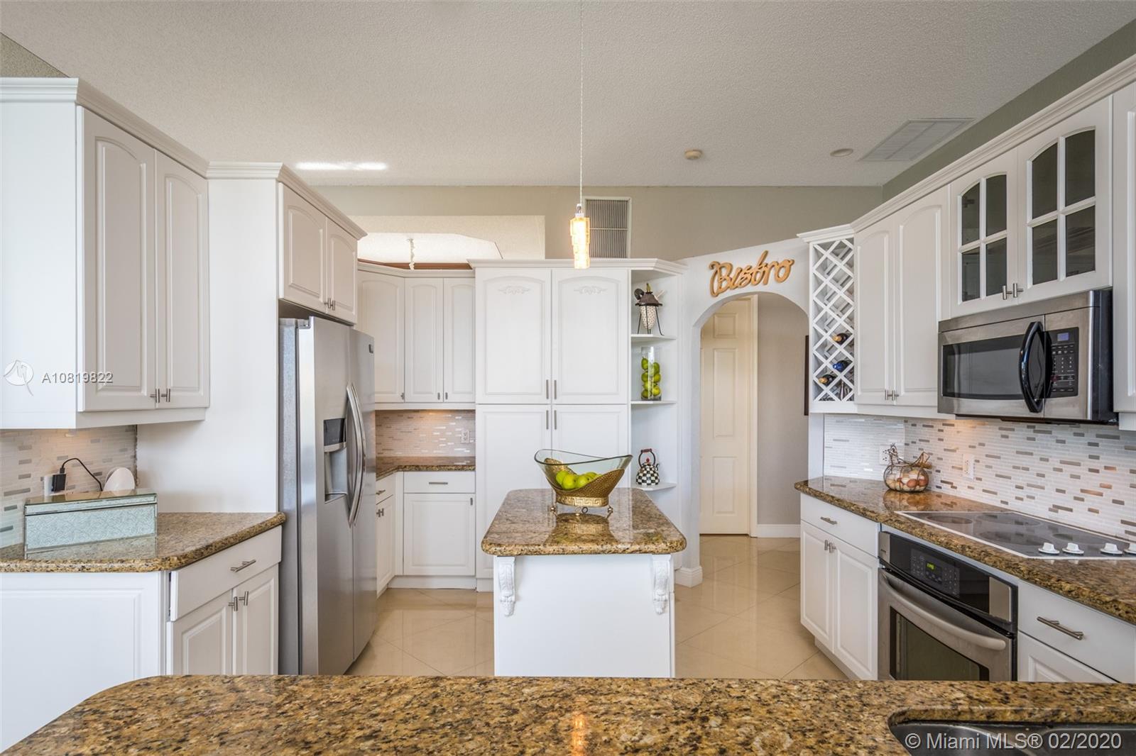 Check out our new 3D tour. Tucked on a quiet cul de sac street this custom built home features chicago brick driveway and walkway. This four bedroom plus office one story shows light and bright. Enjoy long lake views from expansive paver patio, remodeled pool with large overhang fully fenced yard. Neutral porcelain tile in living areas with soaring ceilings. Freshly painted interior. Enjoy contemporary white kitchen, granite countertops, center island and Stainless Steel appliances. Grand master bedroom with windows on water and pool. Master bath with roman tub, dual sinks and shower. Extensive crown molding. plantation shutters. Cabana bath and so much more.