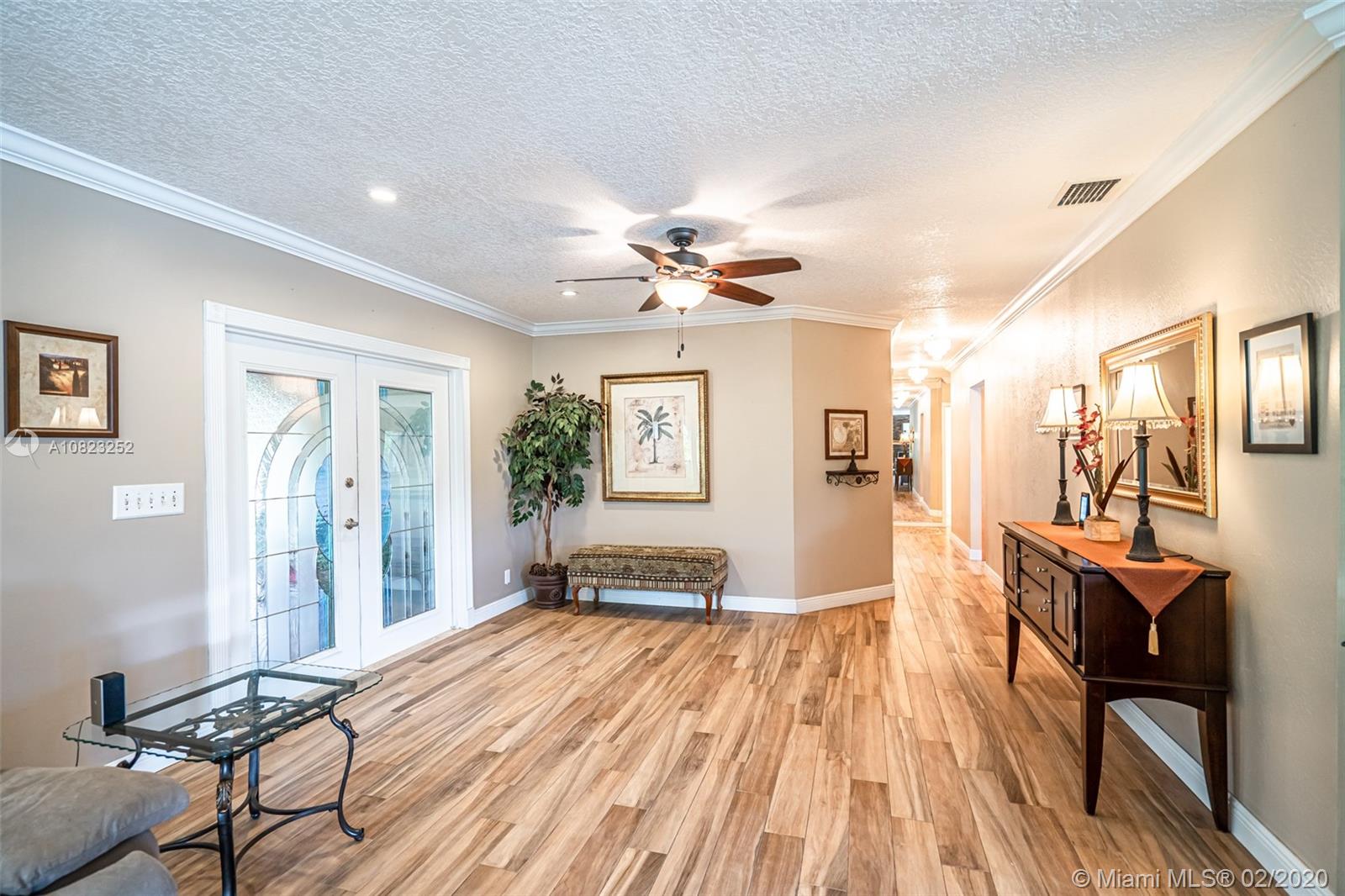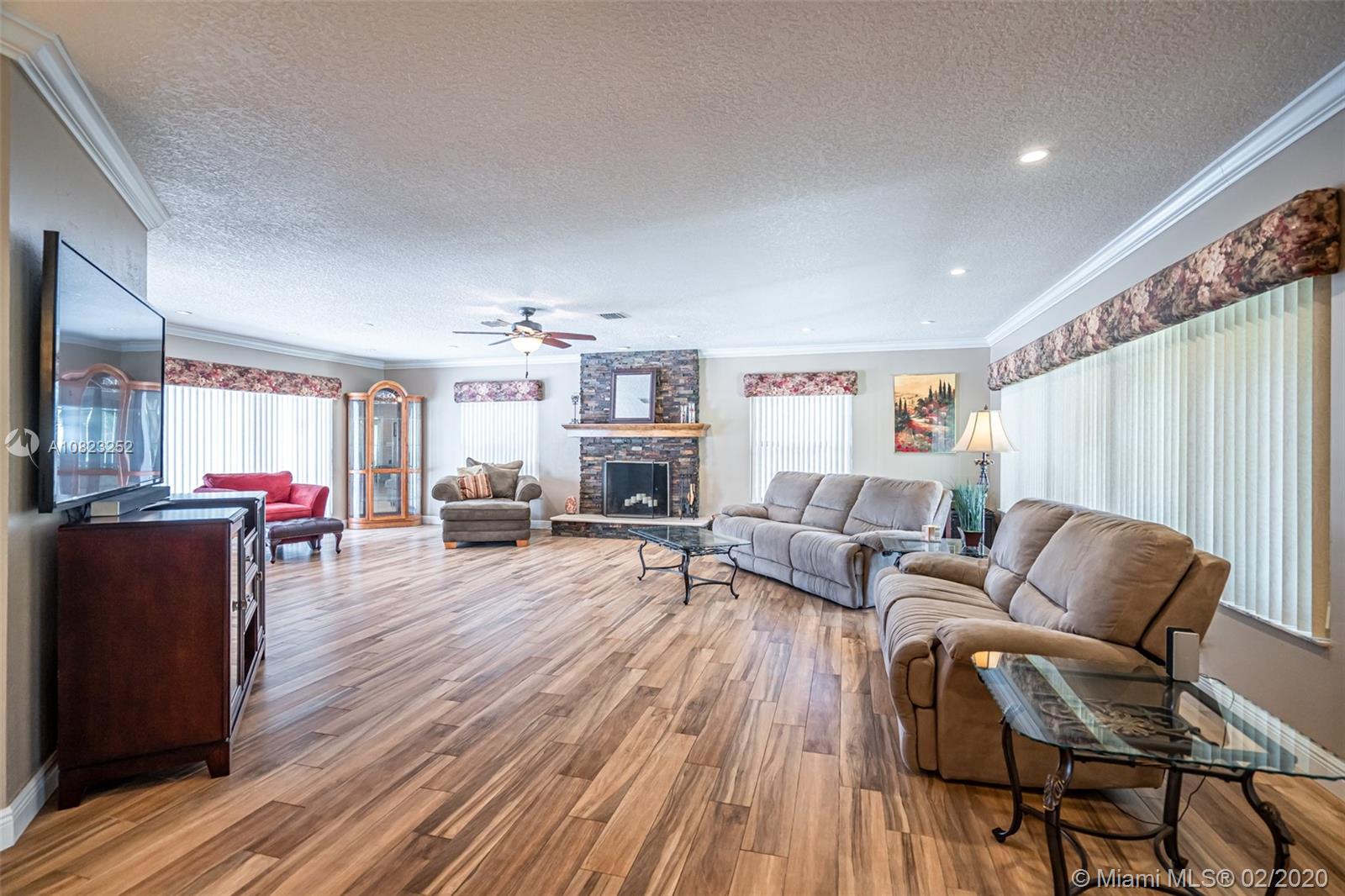 WOW!!! Beautifully upgraded home on huge pie shaped lot. Porcelain wood look tile throughout home, complete impact windows and shutters for ALL doors, gorgeous gourmet kitchen with granite counter tops, top of the line stainless steel appliances, two ovens and much more. Crown molding throughout, nicely upgraded bathrooms,working fireplace, high end security system complete with cameras,Travertine marble pavers on patio and driveway, Tiki hut and even a full-sized Bocce ball court. This is a very rare find so don't wait to come see this amazing home today.