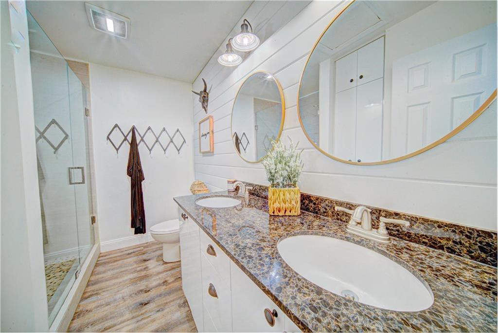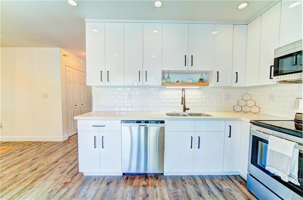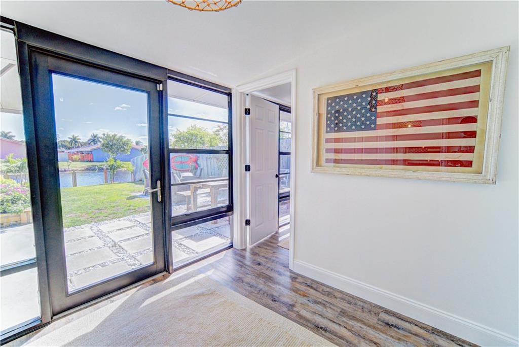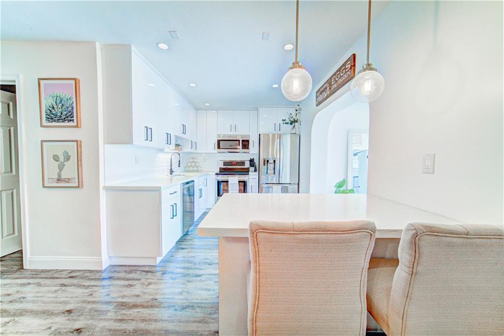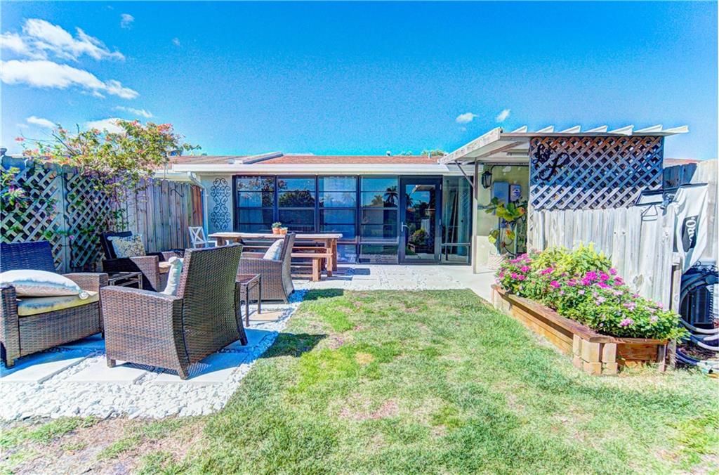 Impeccably upgraded 2 bedroom, 1 bathroom townhouse in the desirable community of Palm Springs North. This home was completely remodeled and features waterproof vinyl flooring and custom light fixtures throughout. The Master suite has a walk-in-closet with built-in shelving and a sliding barn door. Beautiful white kitchen with Quartz counter tops, stainless steel appliances and lots of storage. Dual sinks in the bathroom with glass shower and pebble shower floor. 2nd bedroom also has a built-in closet, newer washer and dryer with the laundry area inside the home. Large fenced-in yard with waterfront views is perfect for entertaining guests and plenty of room for pets to enjoy. This home is truly one of a kind!