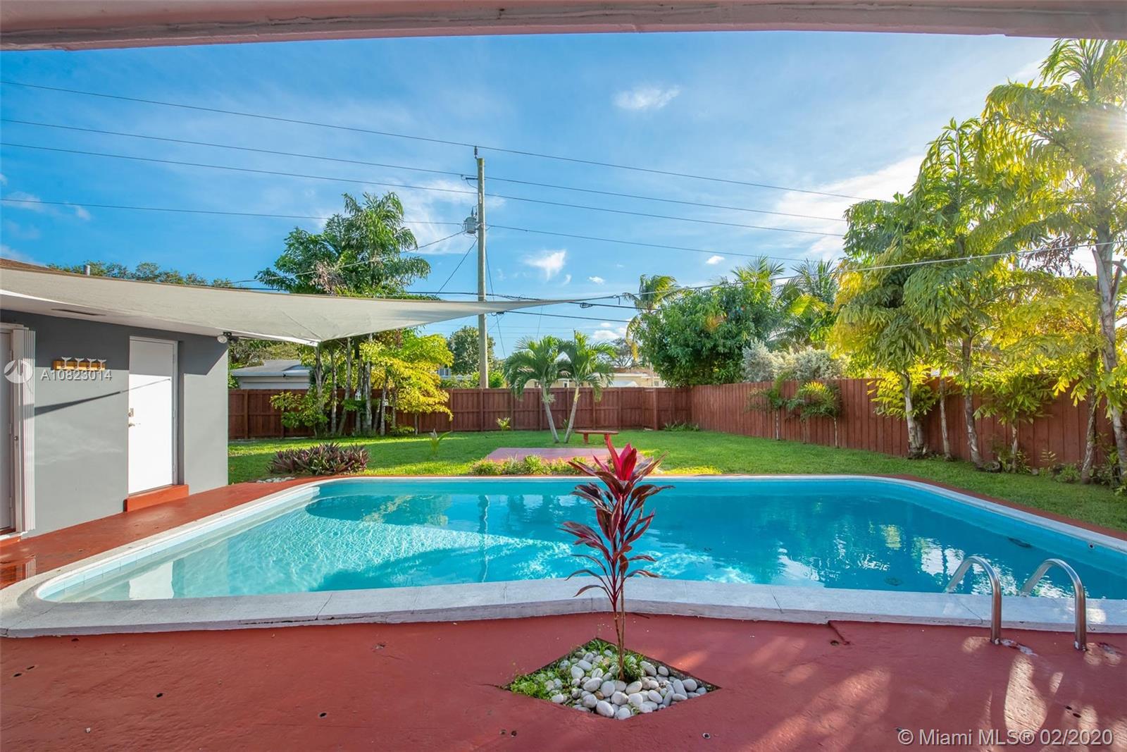 Corner lot with great curb appeal. Bright and open 3BR, 2BTH home, offers a charming front porch and convenient circular driveway. Separate room can be used as a Guest Quarters, Office, Kids Room, or Family Room w/ two separate entrances to outside. Just add a closet to make it a full 4th BR. Large MBR with walk in closet. Big yard with privacy fence. One side of the yard is perfect for your home grown vegetable garden. The other side can accommodate a nice size Boat or RV. This is permissible in this Non-HOA Community. French doors leading to backyard from Living Area & the MBR. Beautiful pool perfect to enjoy all that South Florida weather has to offer. Direct access to Master Bath from pool deck. Just minutes from Hollywood Hills Elementary School, Memorial Hospital & Places of Worship.